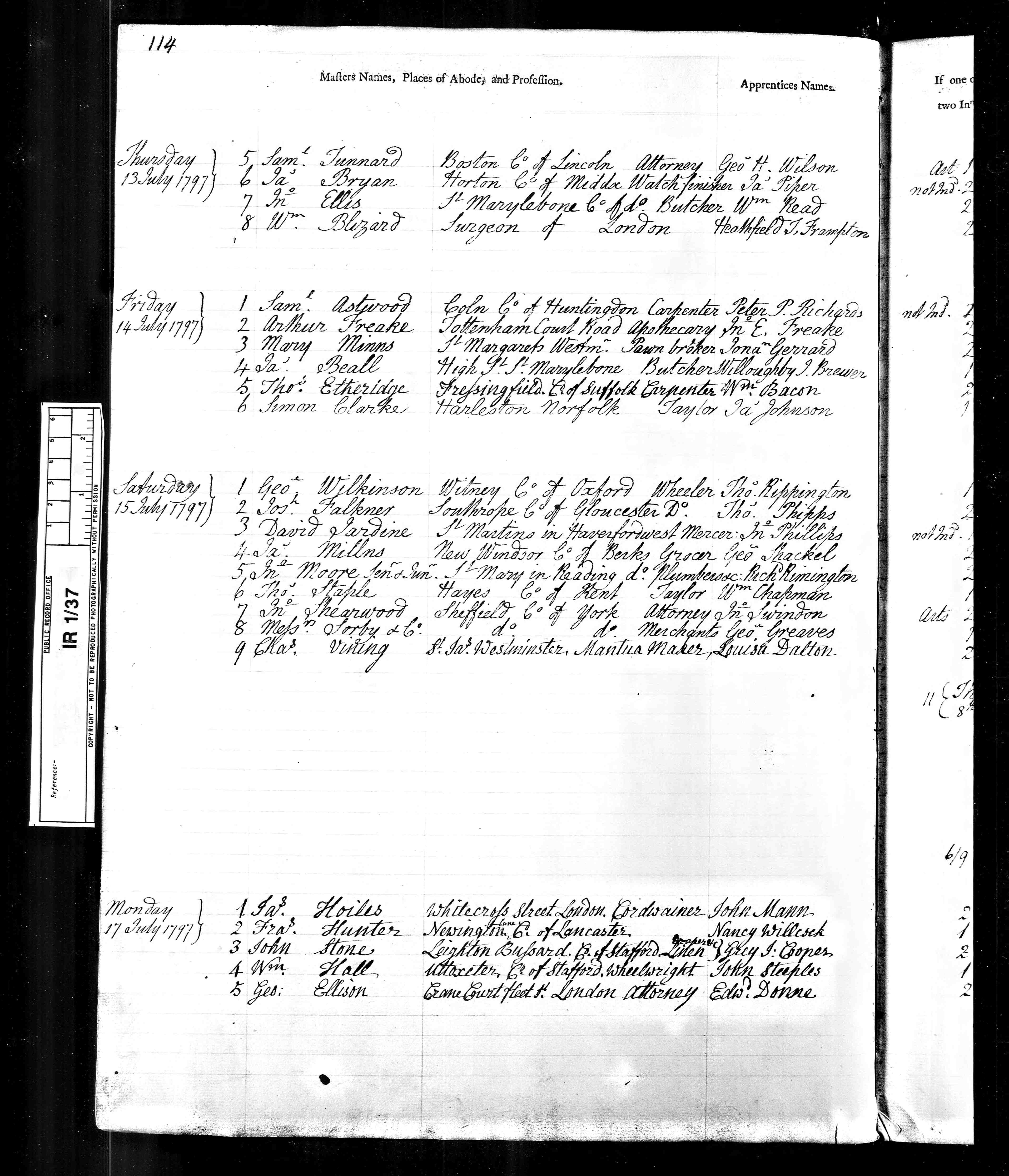 Occupation Apprentice Wheeler @ Witney, Oxfordshire Rippington (Thomas) 1797 Apprentice Record |