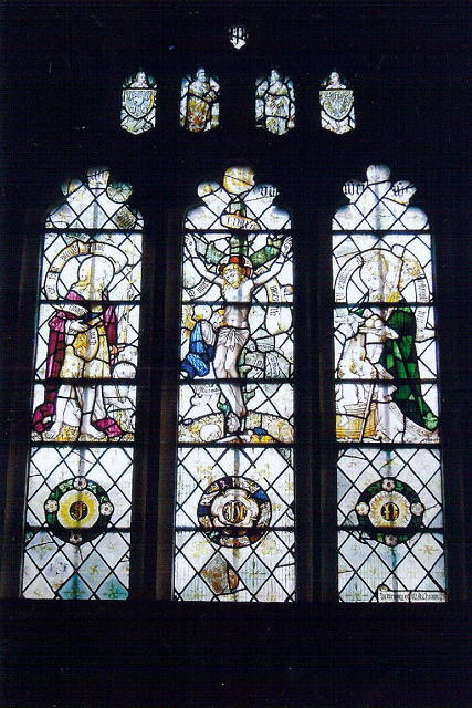 Although the glass used for the main themes in the window is Edwardian some of the peripheral pieces are medieval.