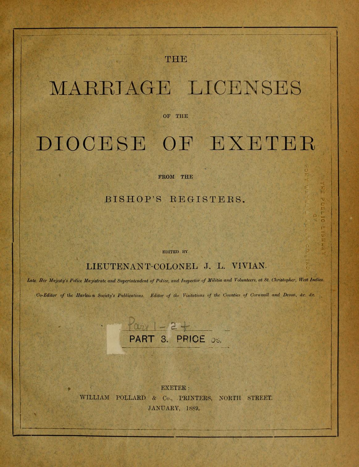Marriage Licenses of the Diocese of Exeter Frontispiece