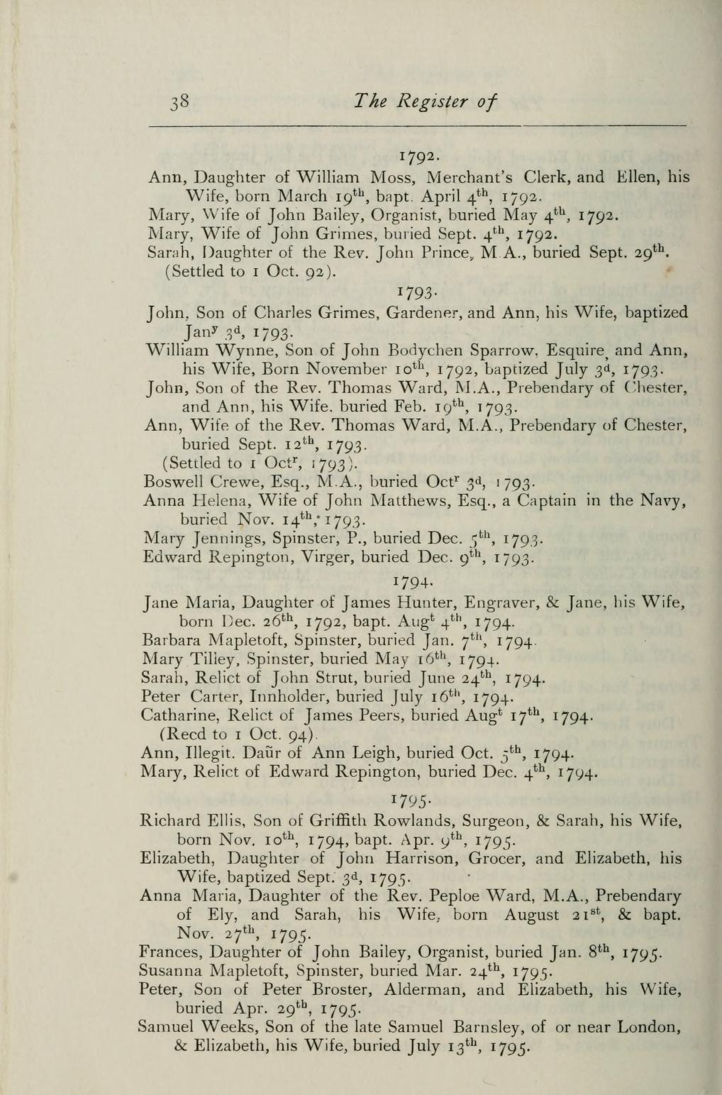 Birth of daughter Elizabeth REPINGTON in Chester, Cheshire |