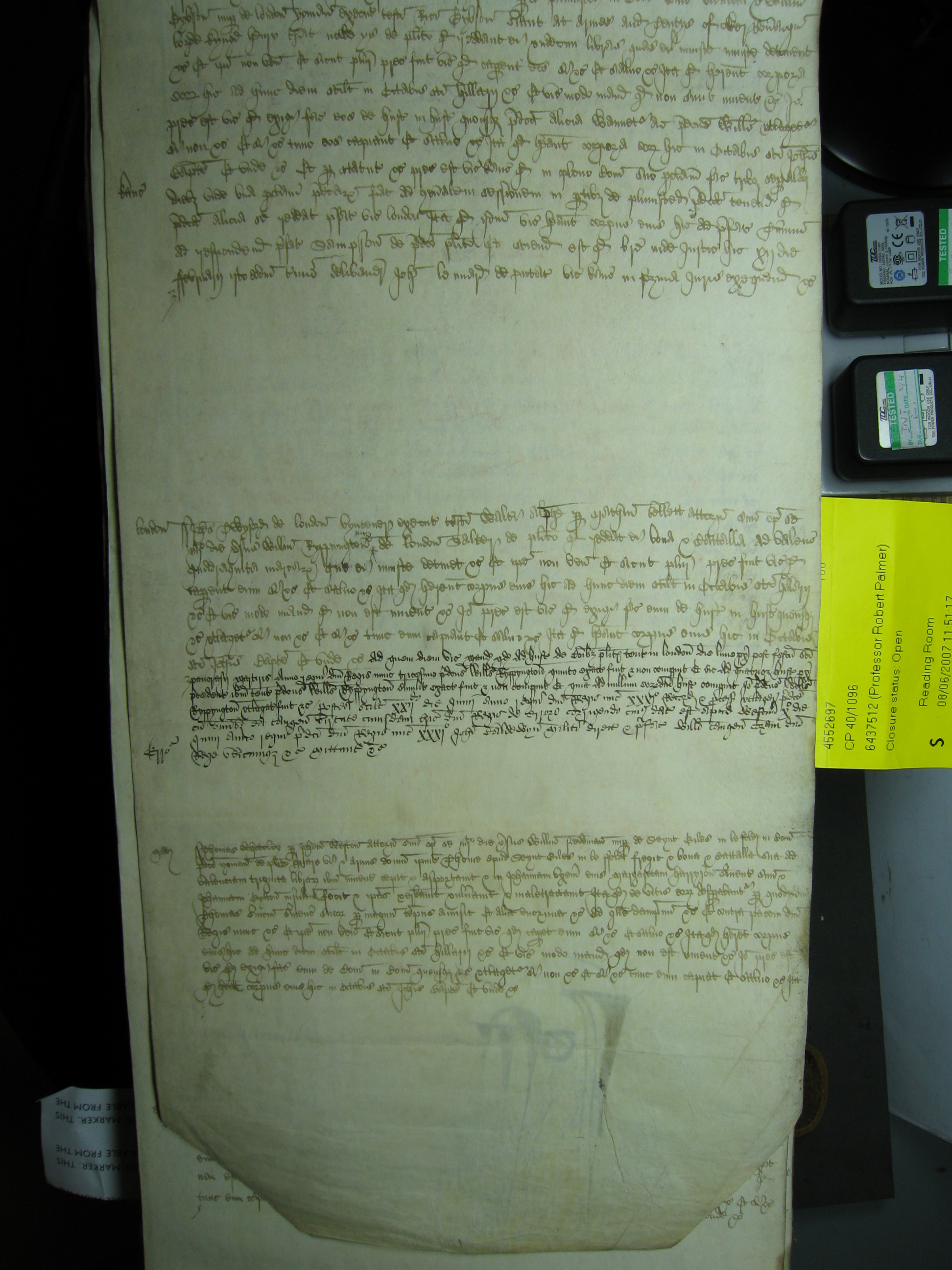 Scope and content: Robert Smyth of Southwark, butcher. v. The bailiffs of Kingston-upon-Thames.: Action by William Rypyngton of London, salter, for price of herrings which proved so rotten that `certain poore folkes to whome your said oratour dyd gyve the sayd herynges dydcast them at hys heed ageyne.' Certiorari.: Surrey.
