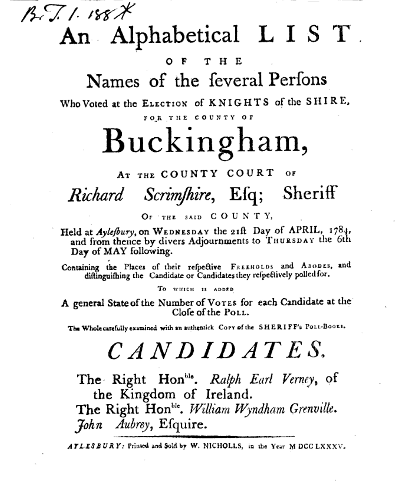 Knights of the Shire of Buckingham 1784 Frontispiece