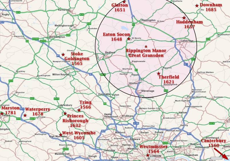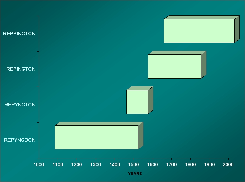modern spellings at almost exactly the same time - Repington in 1557 and Rippington in 1564.