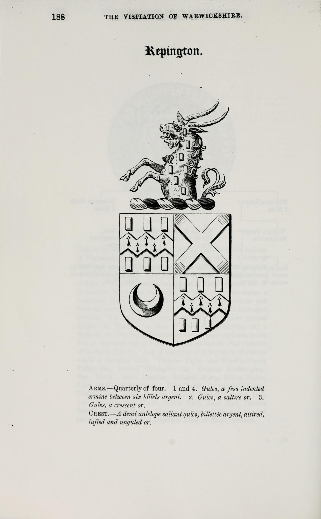 ARMS.—Quarterly of four. 1 and 4. Gules, a fess indented ermine between six billets argent.