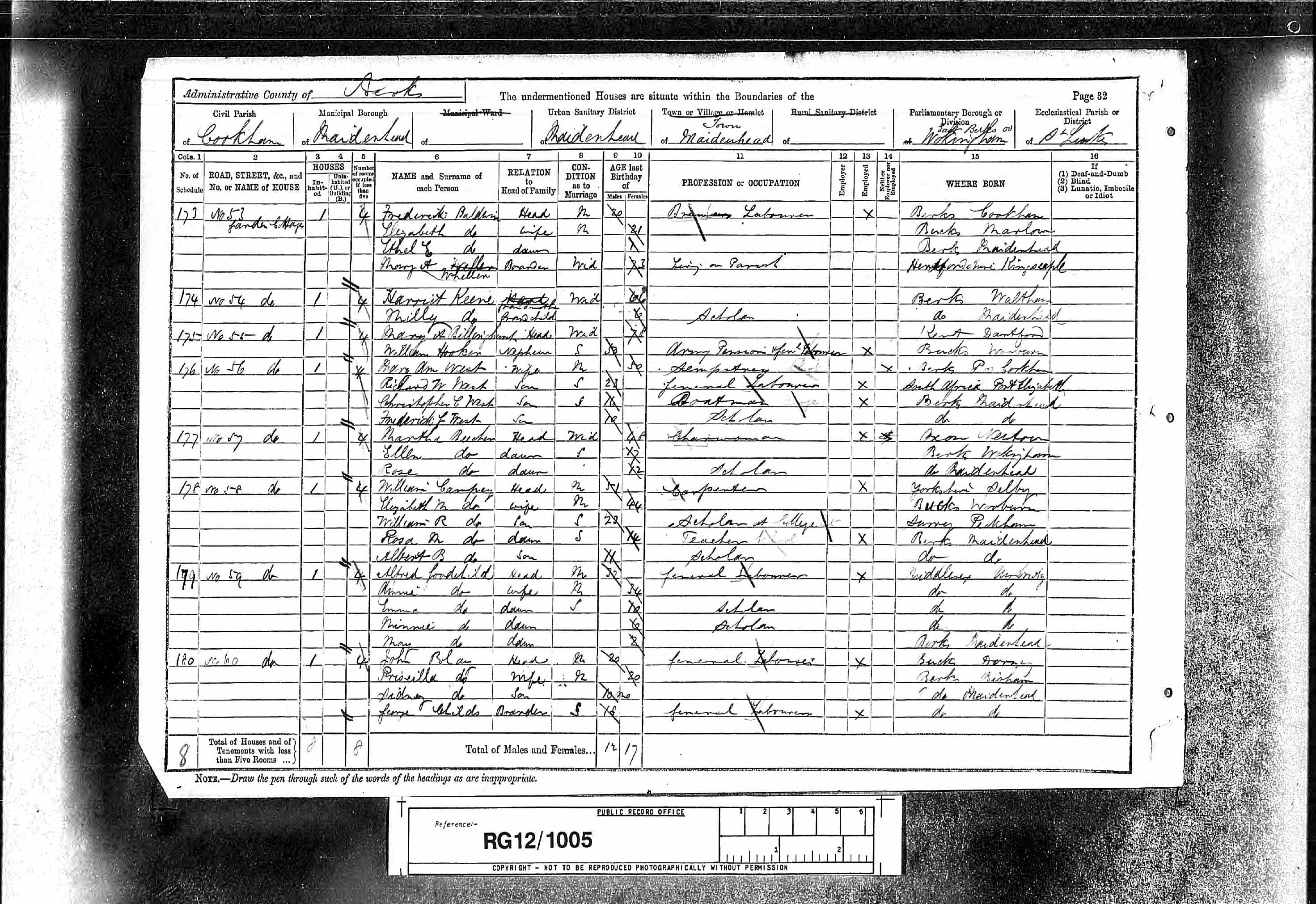 Billinghurst (Mary Ann nee Rippington) 1891 Census