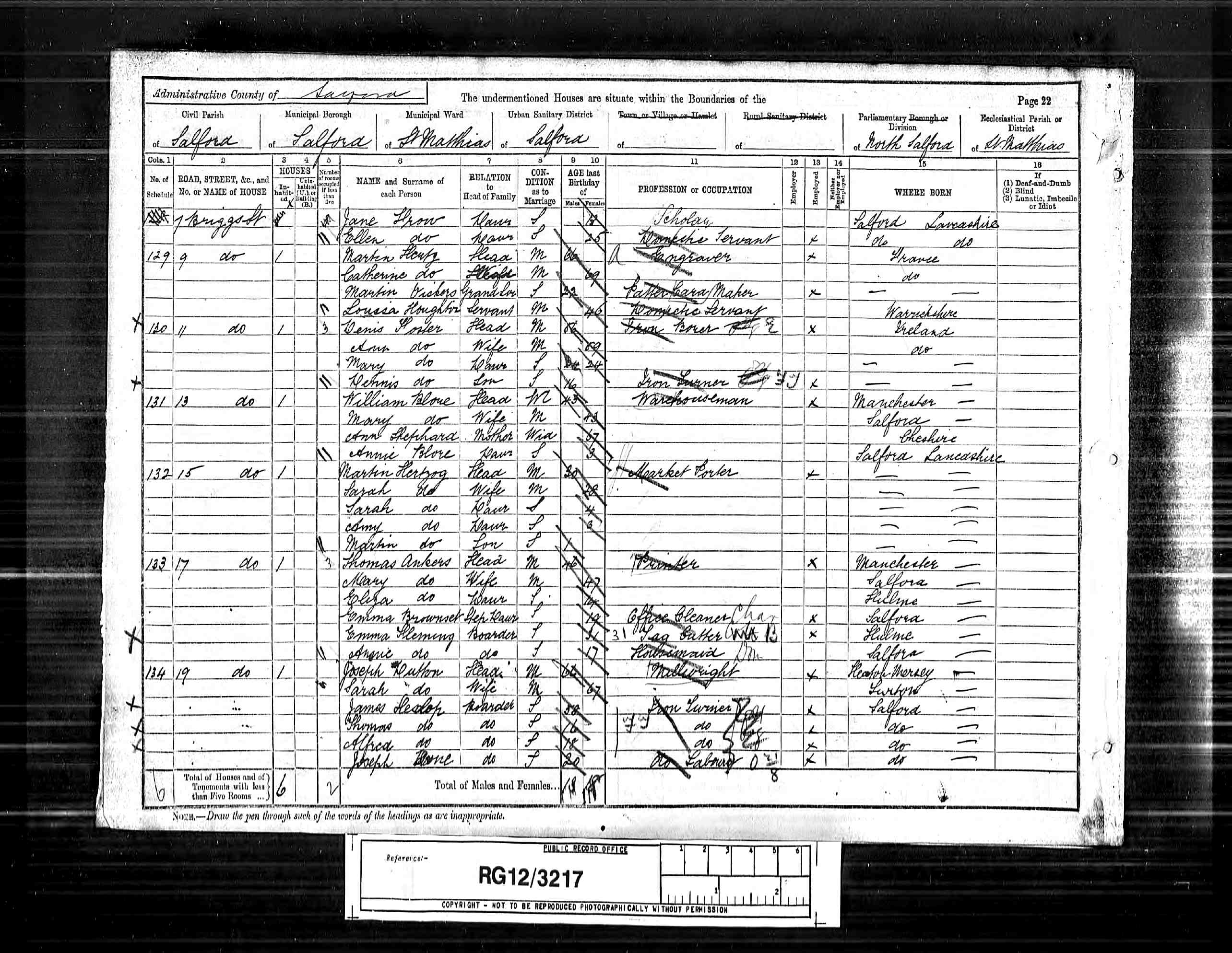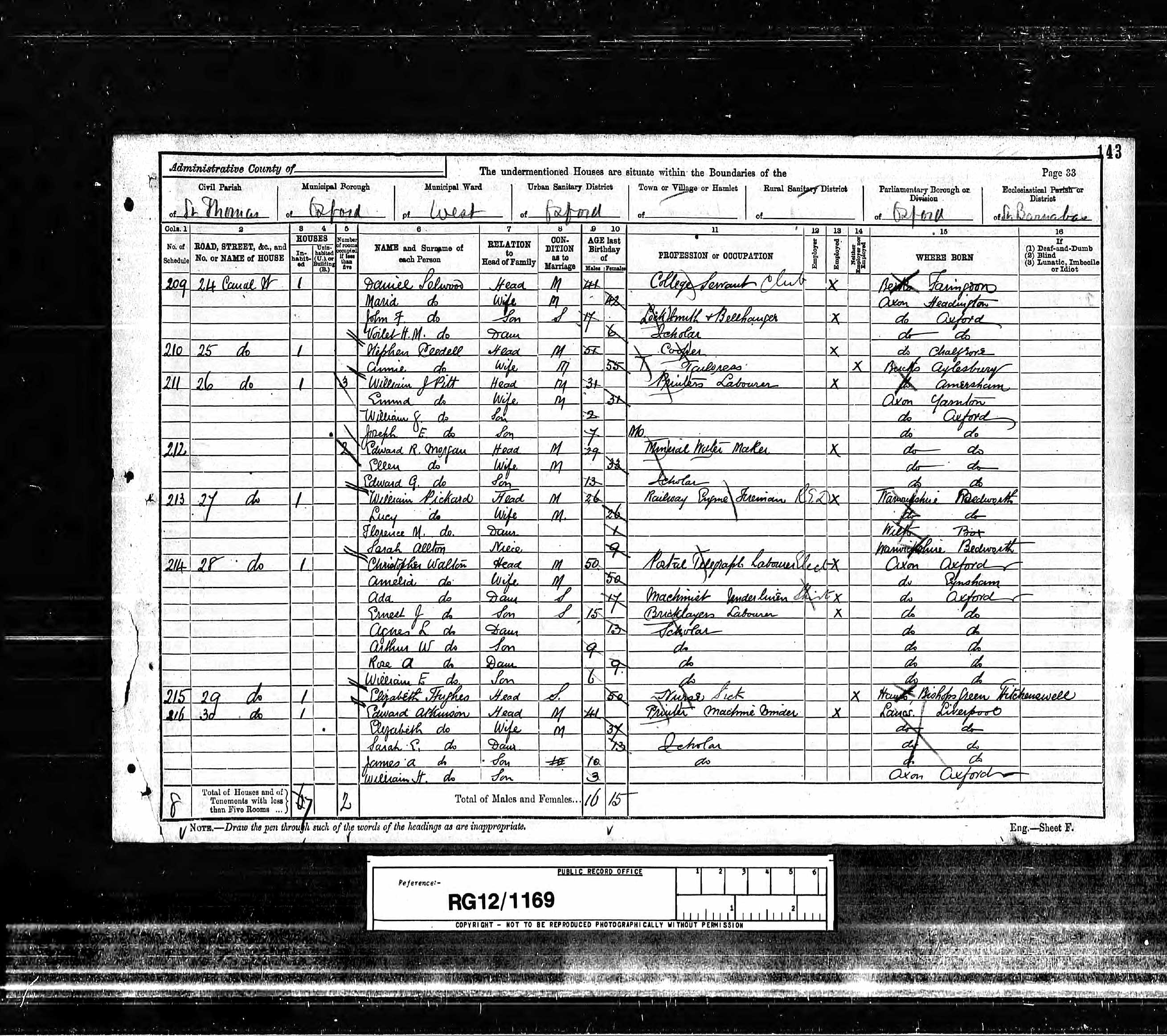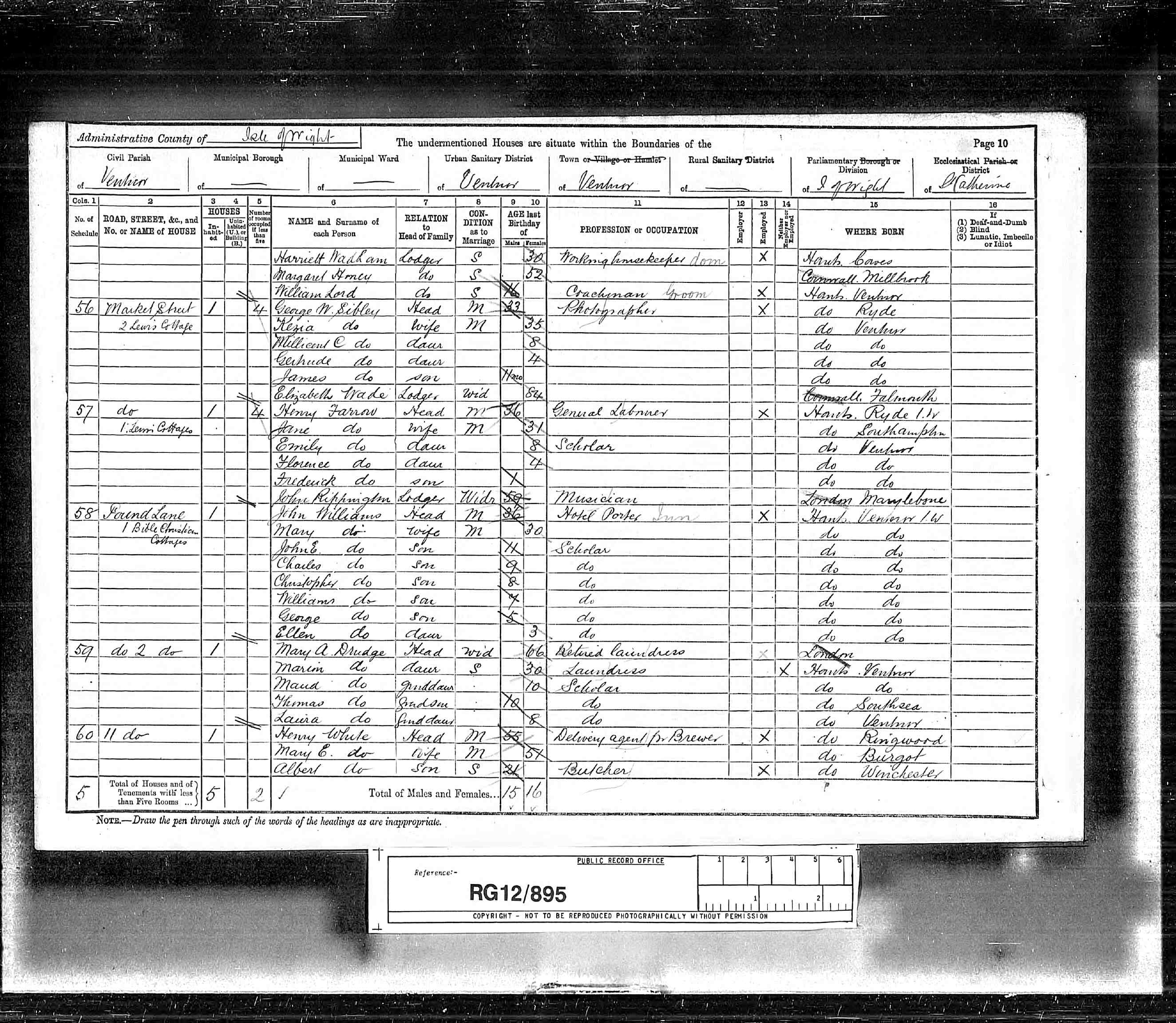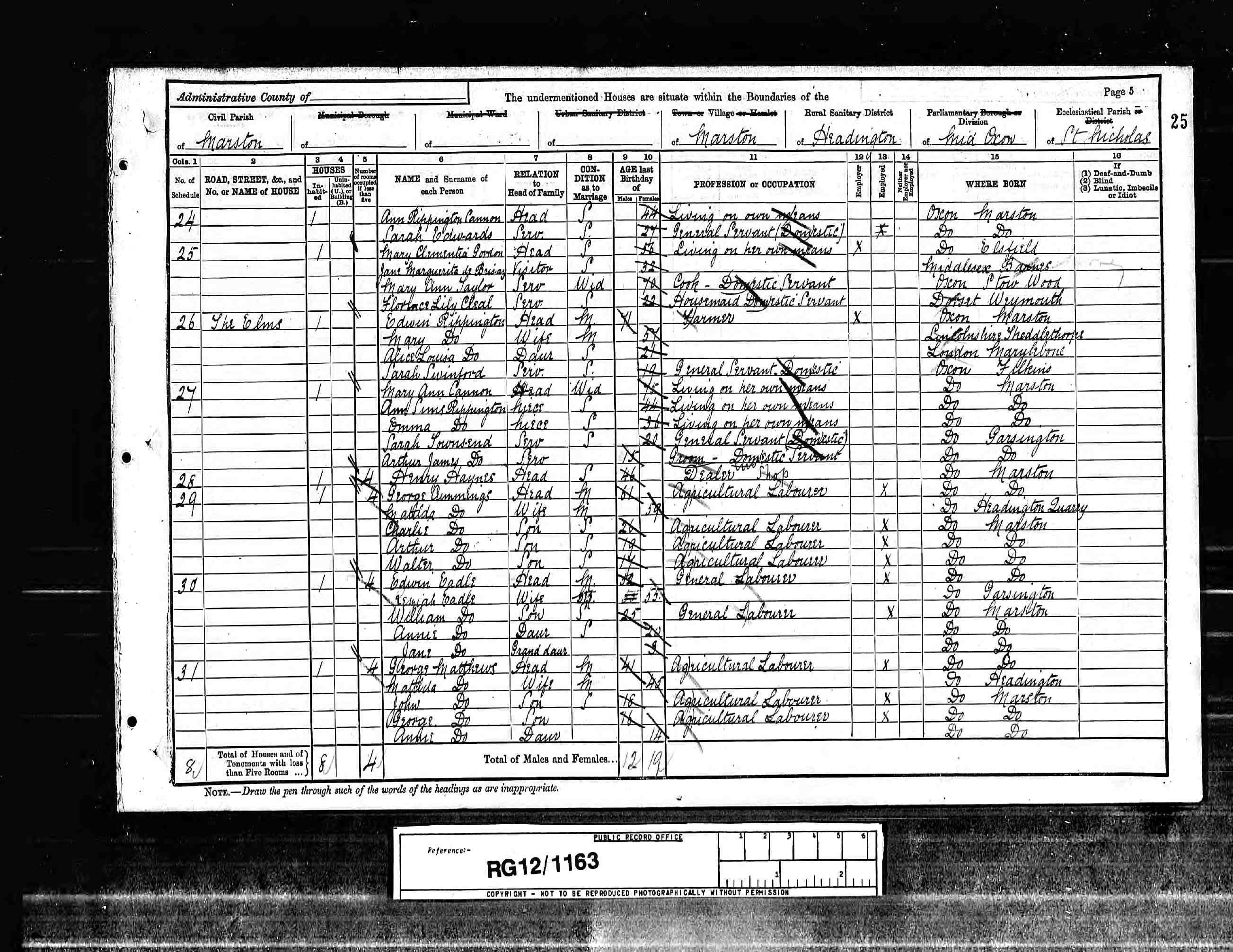 Original data: Census Returns of England and Wales, 1891. Kew, Surrey, England: The National Archives of the UK (TNA): Public Record Office (PRO), 1891.