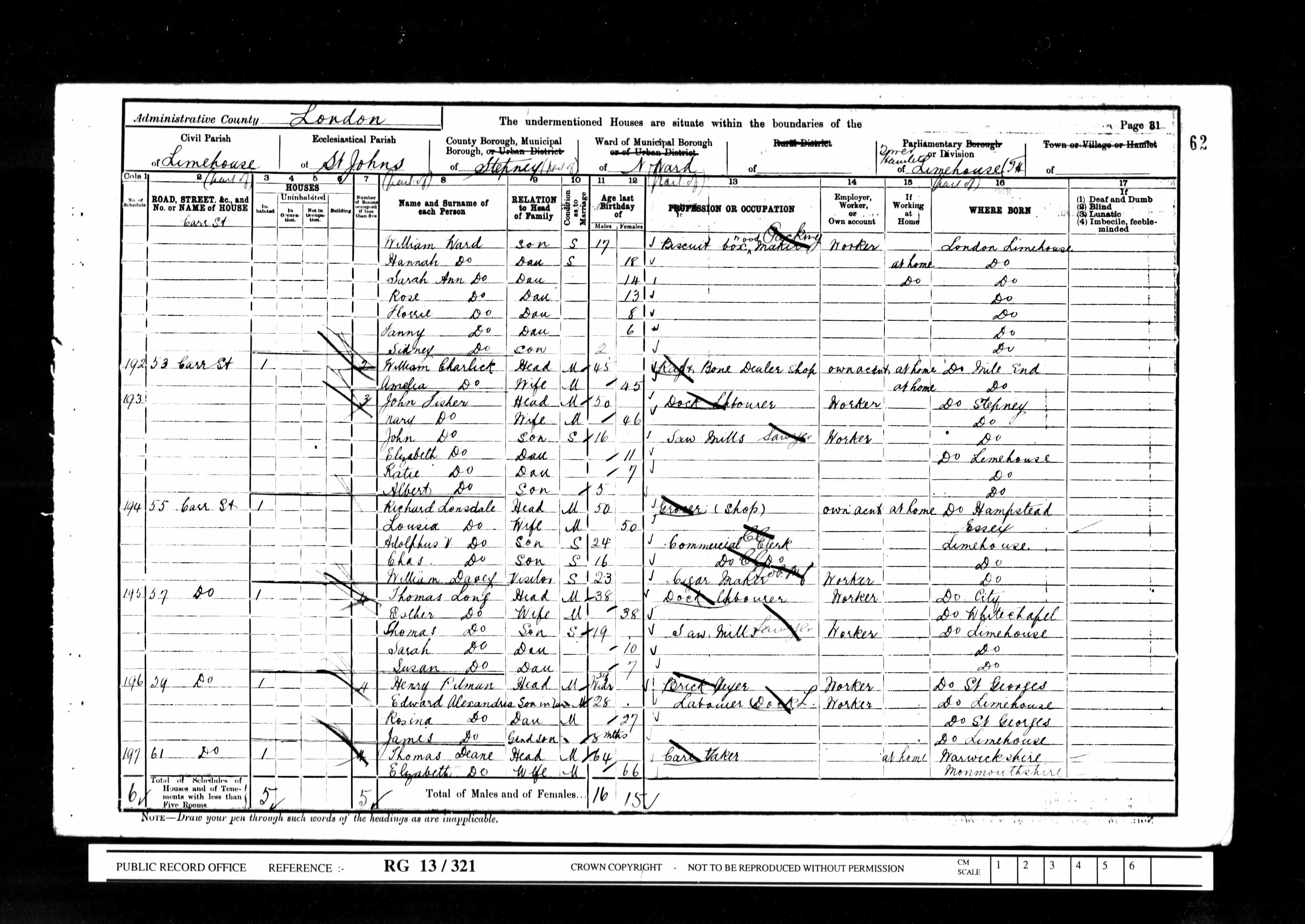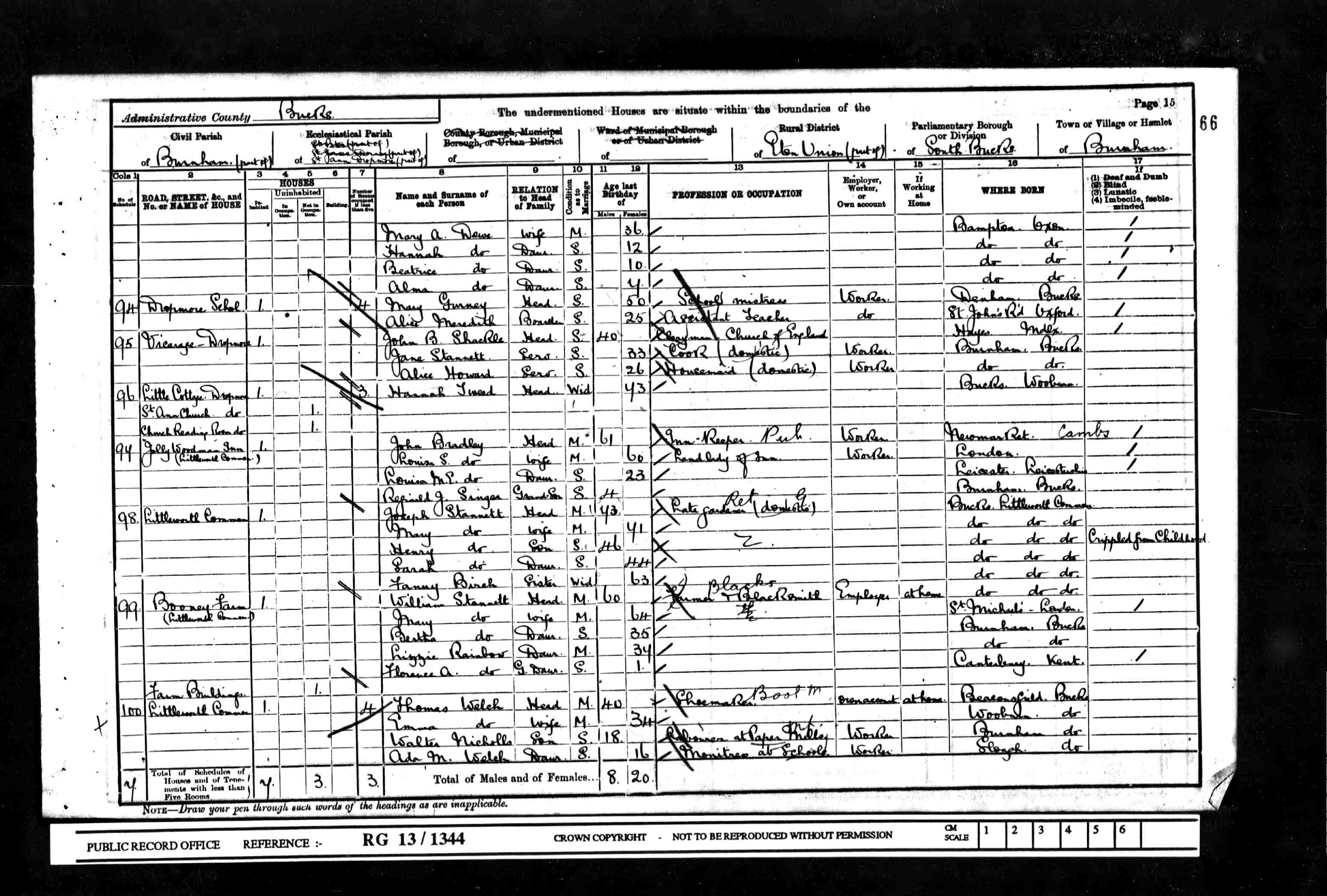 Original data: Census Returns of England and Wales, 1901. Kew, Surrey, England: The National Archives, 1901. Data imaged from the National Archives, London, England.