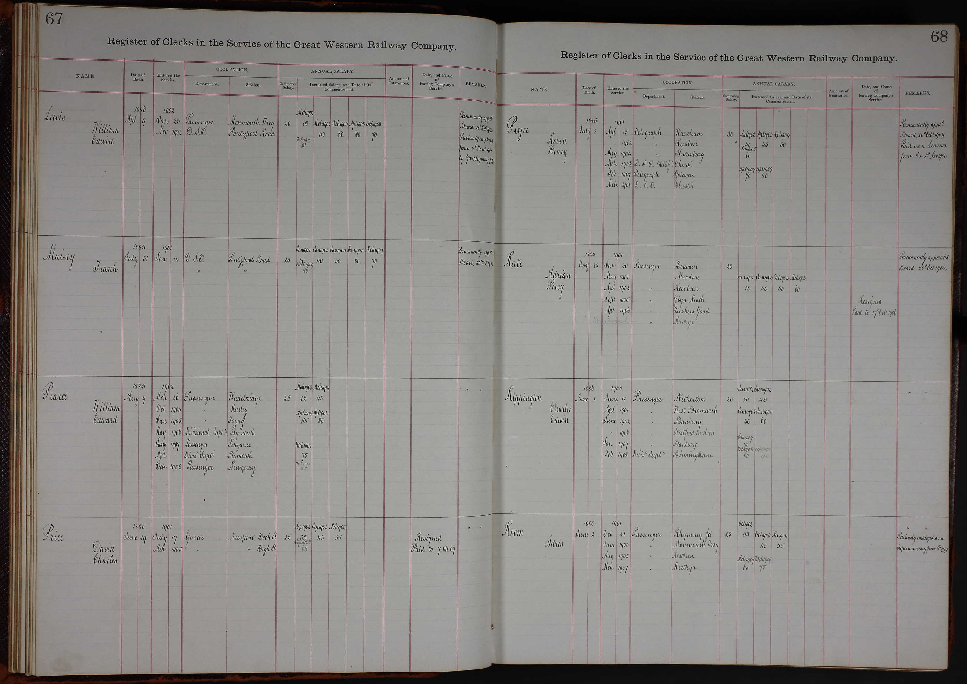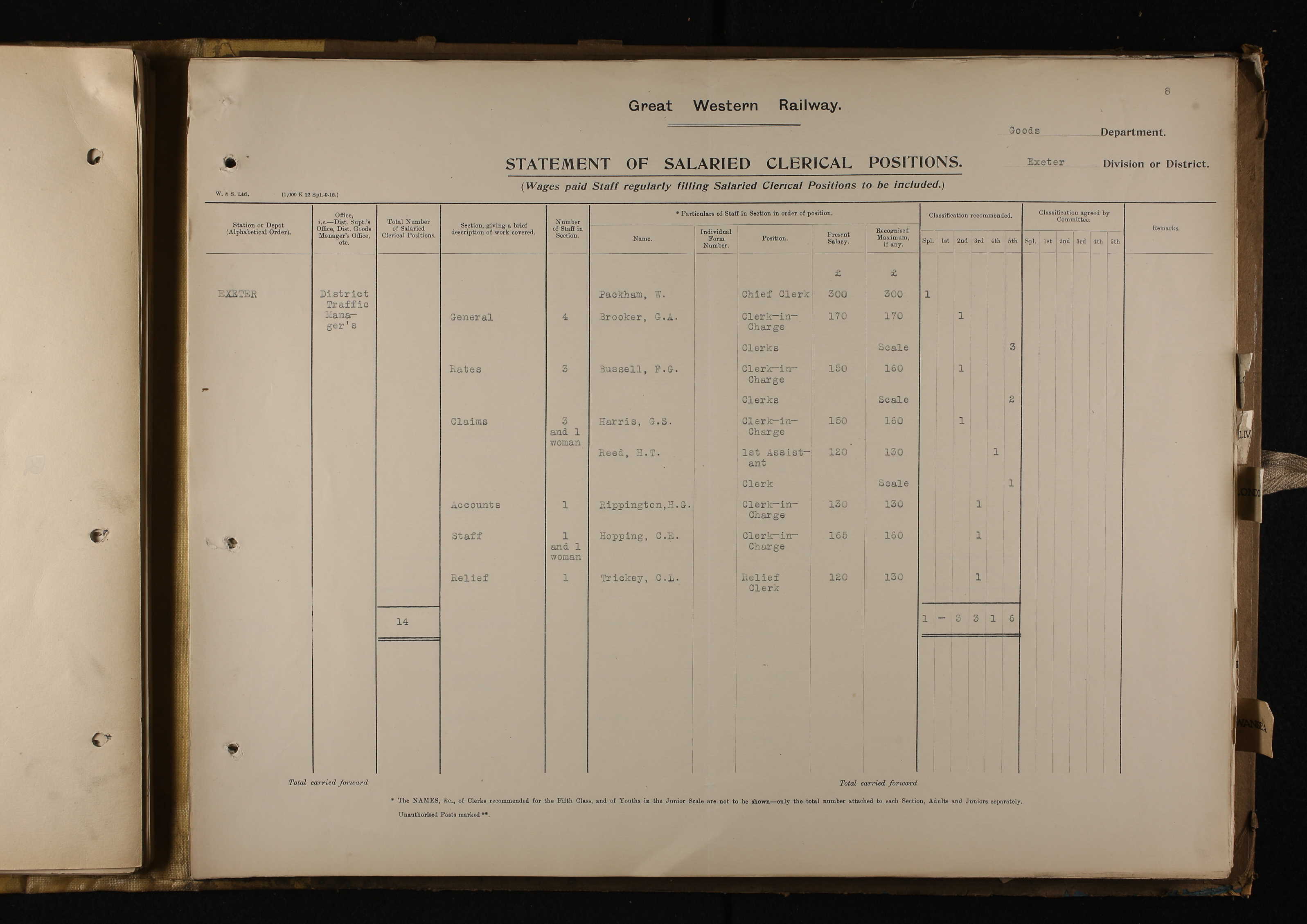 Rippington (Harold George) Great Western Exeter Employment Record