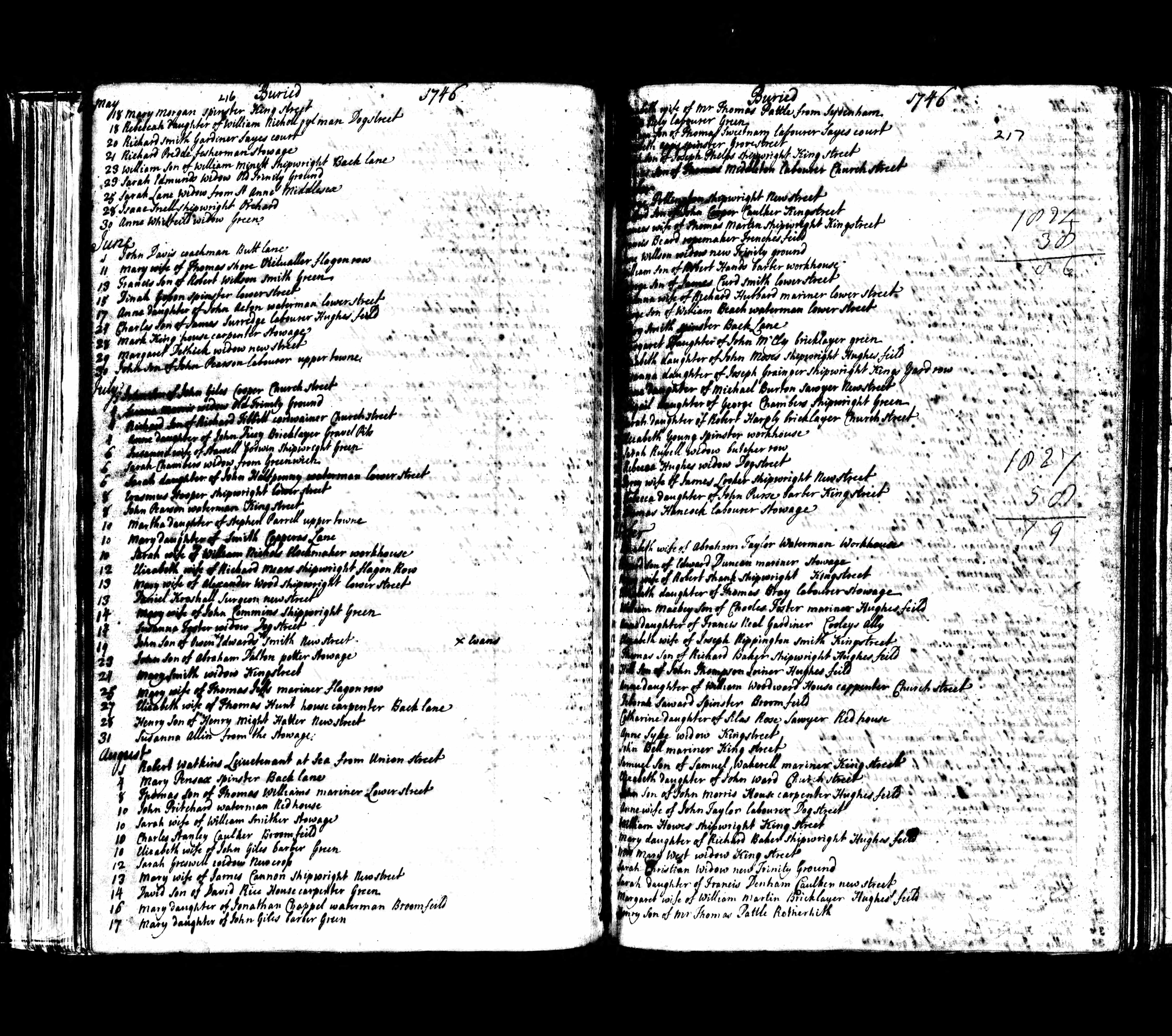Rippington (Elizabeth nee Read) 1768 Burial Record