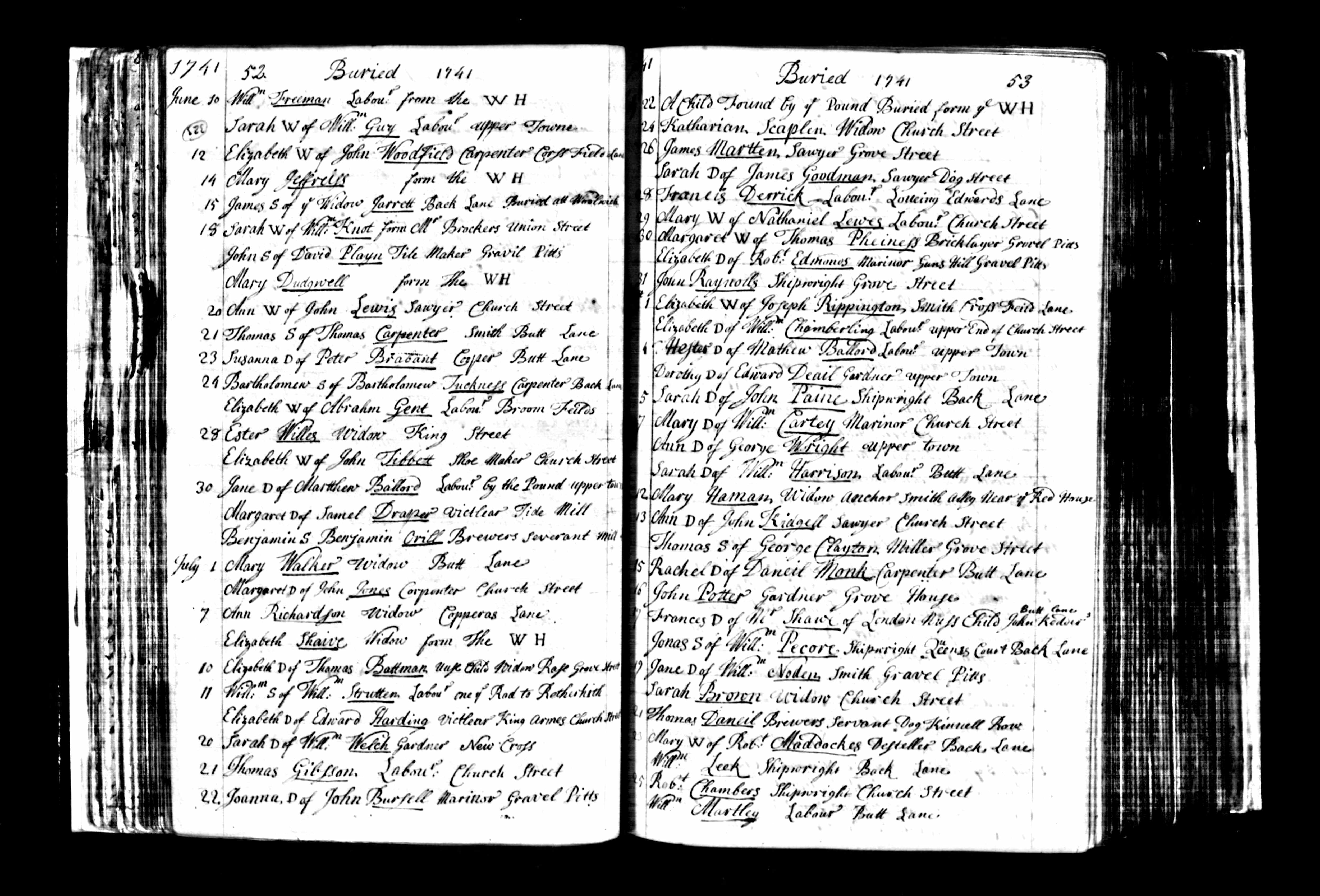 Rippington (Elizabeth nee Page, wife of Joseph) 1741 Burial Record