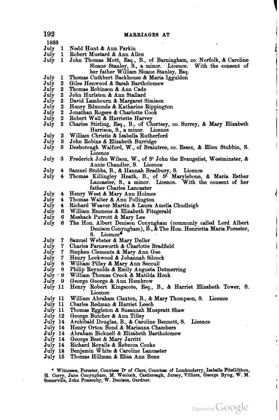 The register book of marriages of St. Georges Church, Hanover Square, Westminster, London p.192