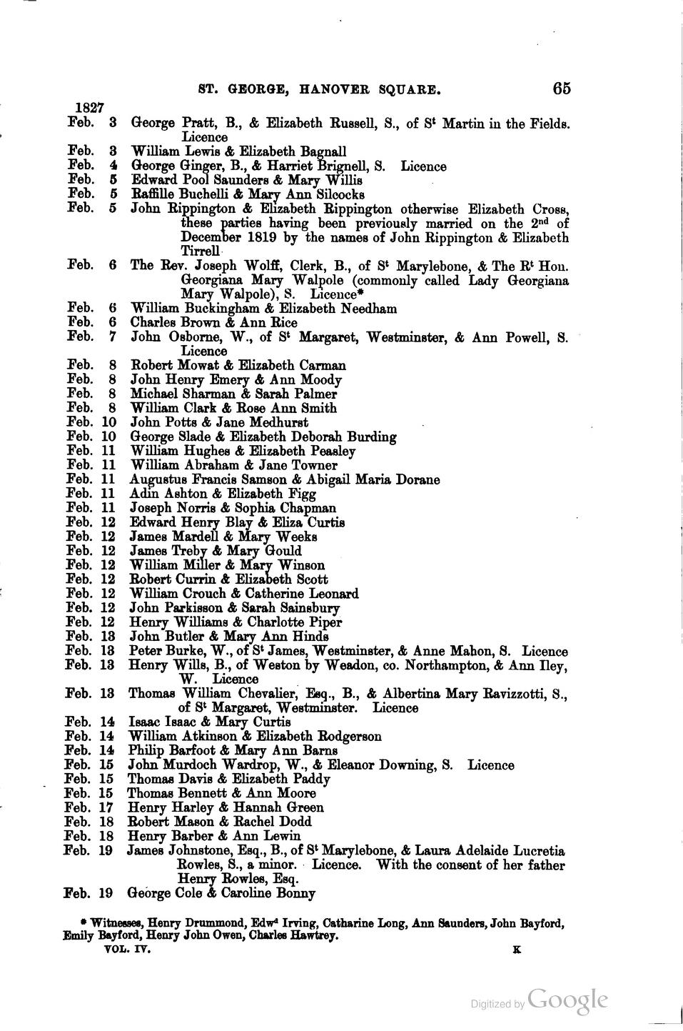 The register book of marriages of St. Georges Church, Hanover Square, Westminster, London p.65