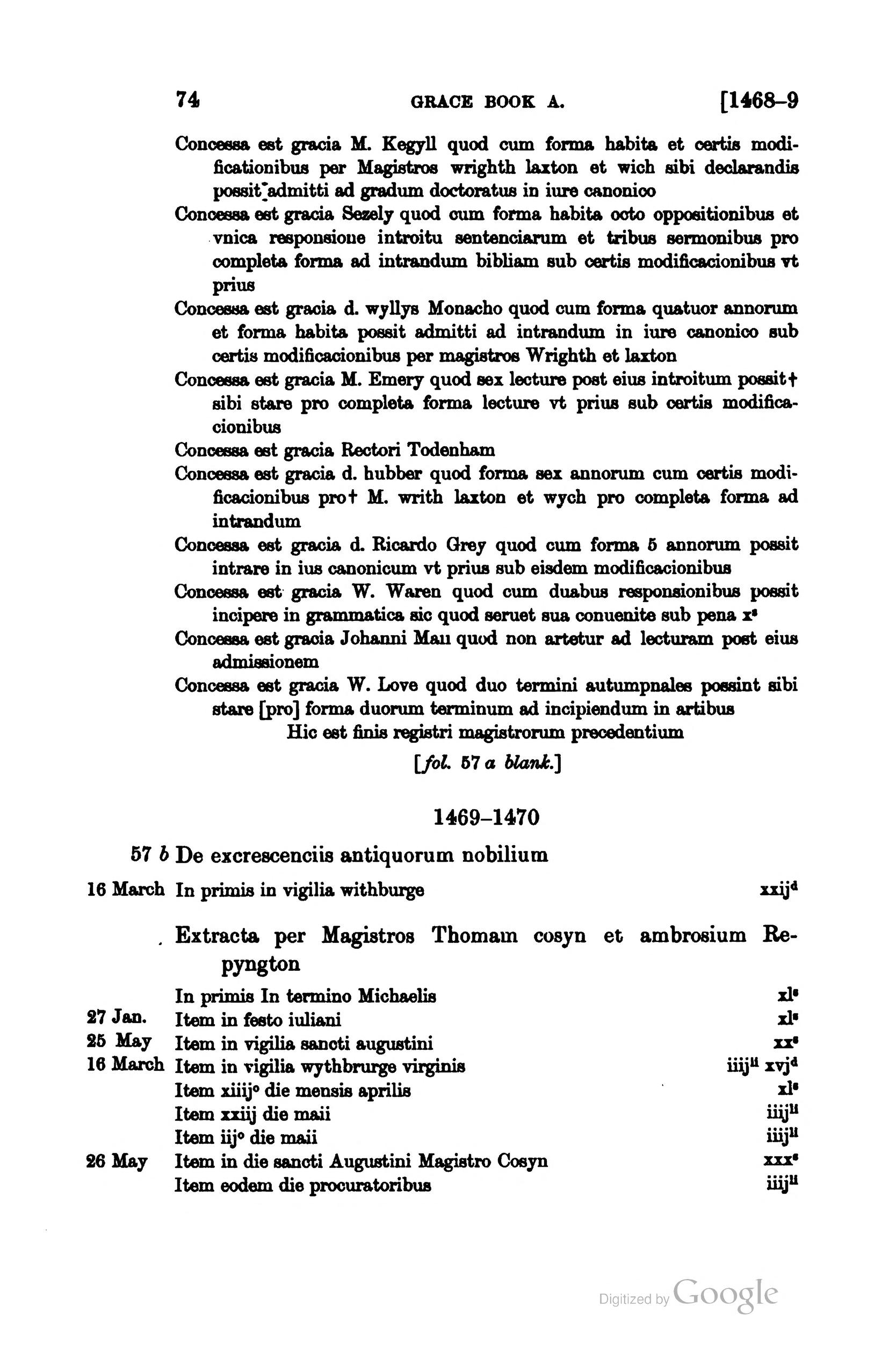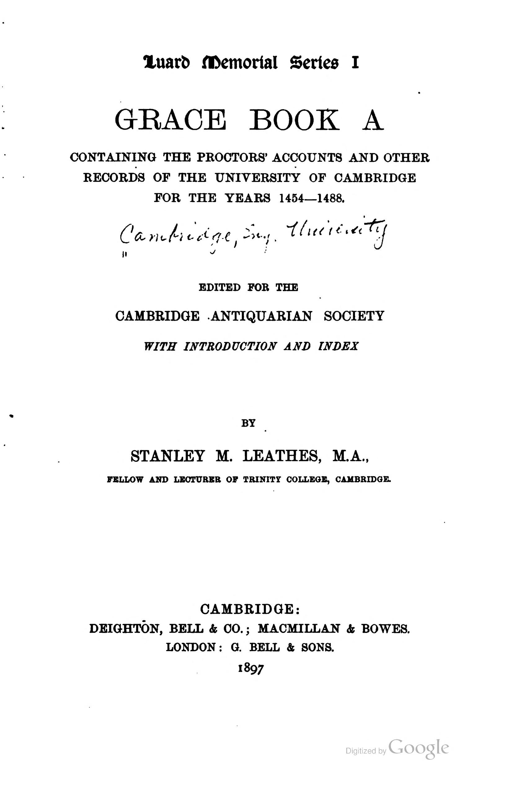 Grace book A, containing the proctors' accounts and other records of the University of Cambridge p.xxxvi
