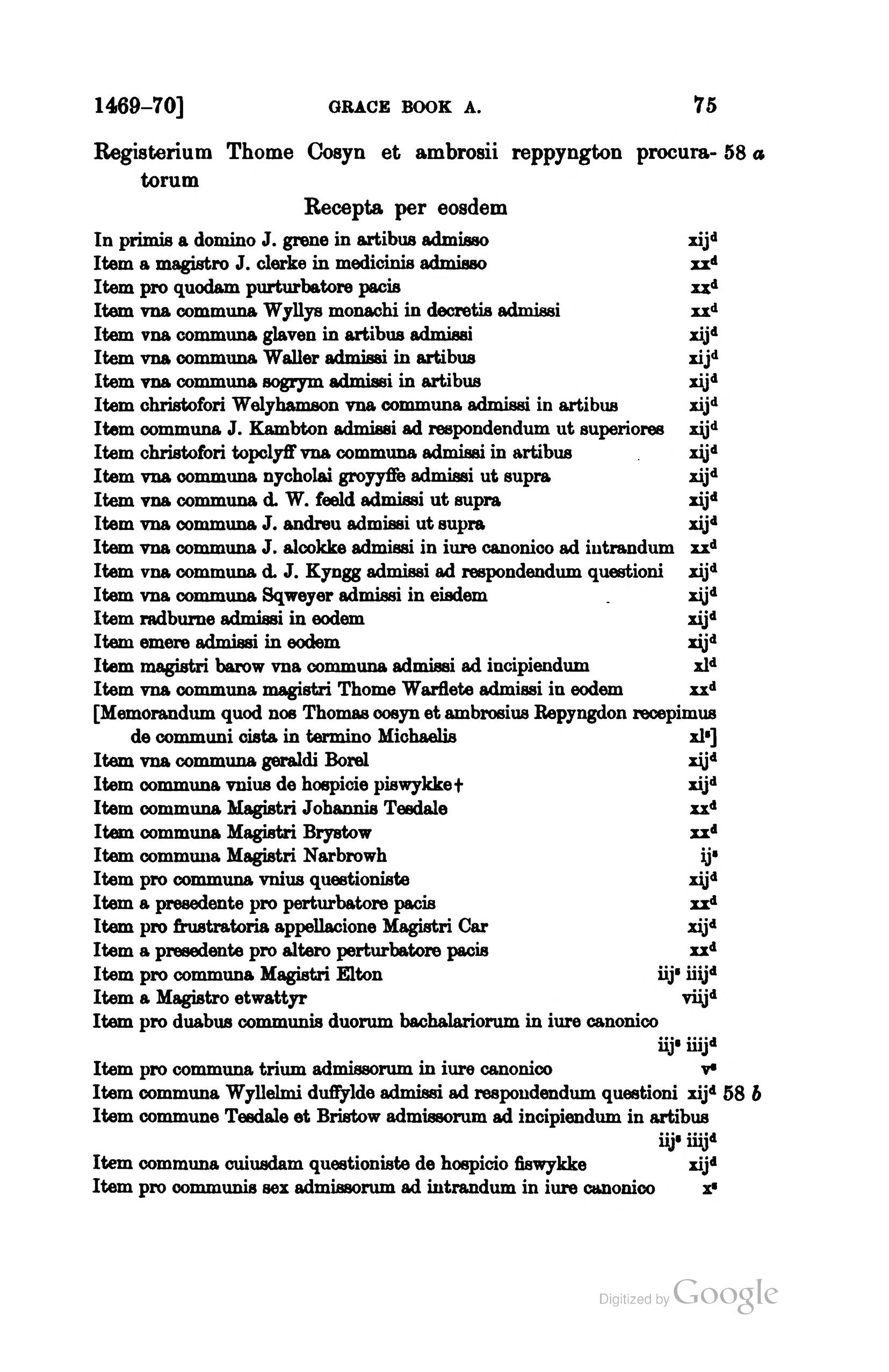 Grace book A, containing the proctors' accounts and other records of the University of Cambridge p.75