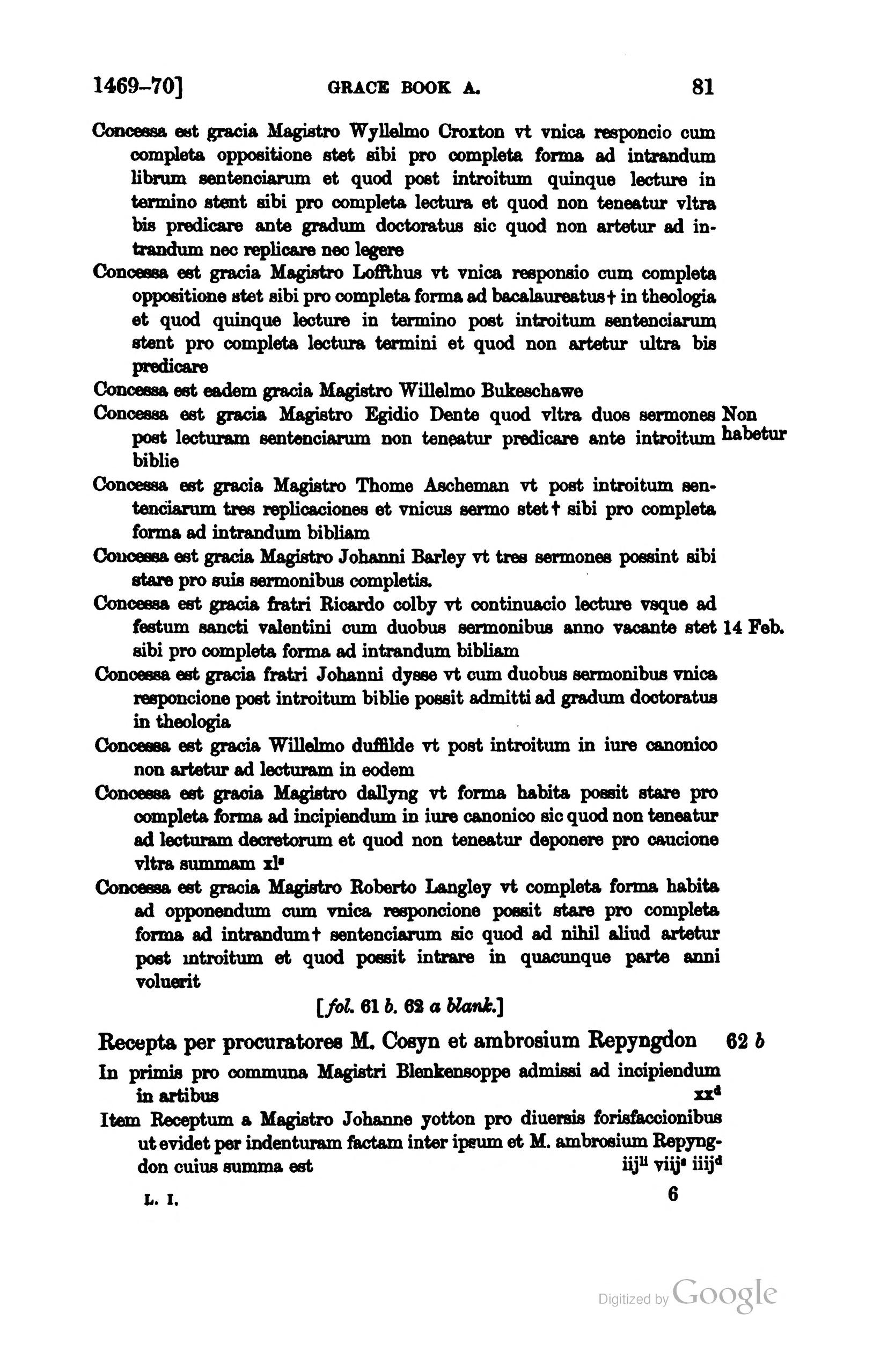 Grace book A, containing the proctors' accounts and other records of the University of Cambridge p.81