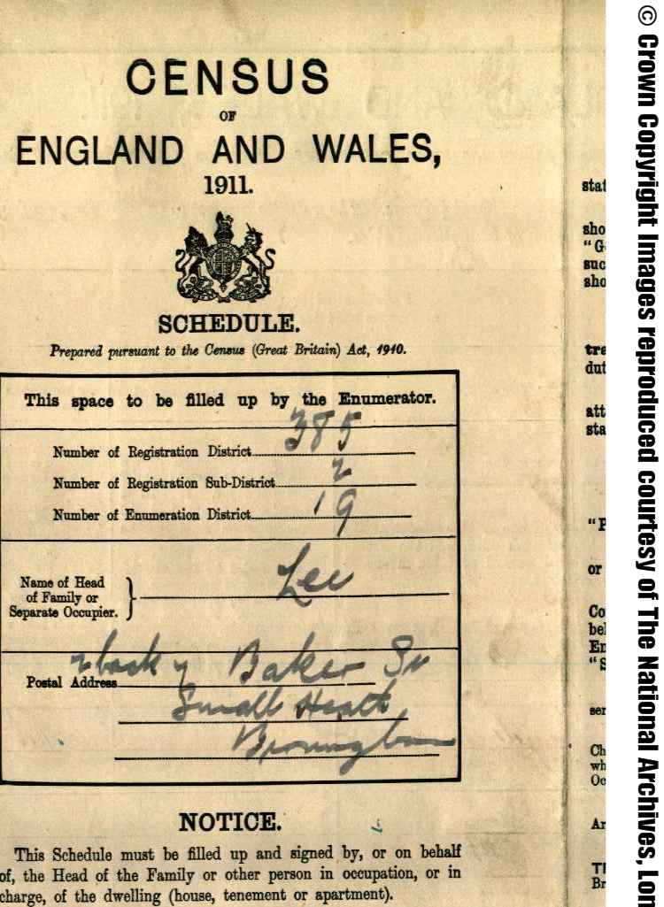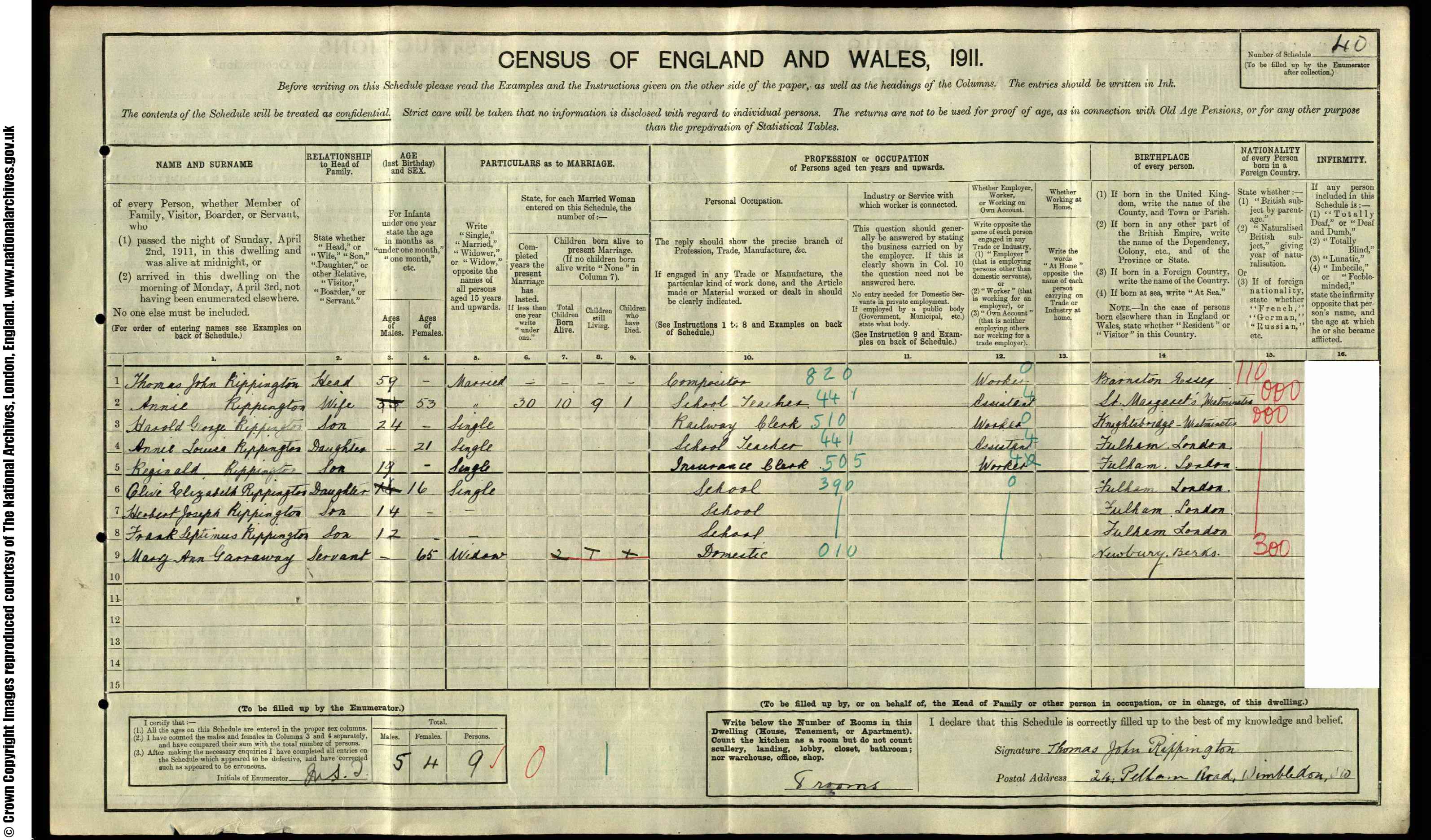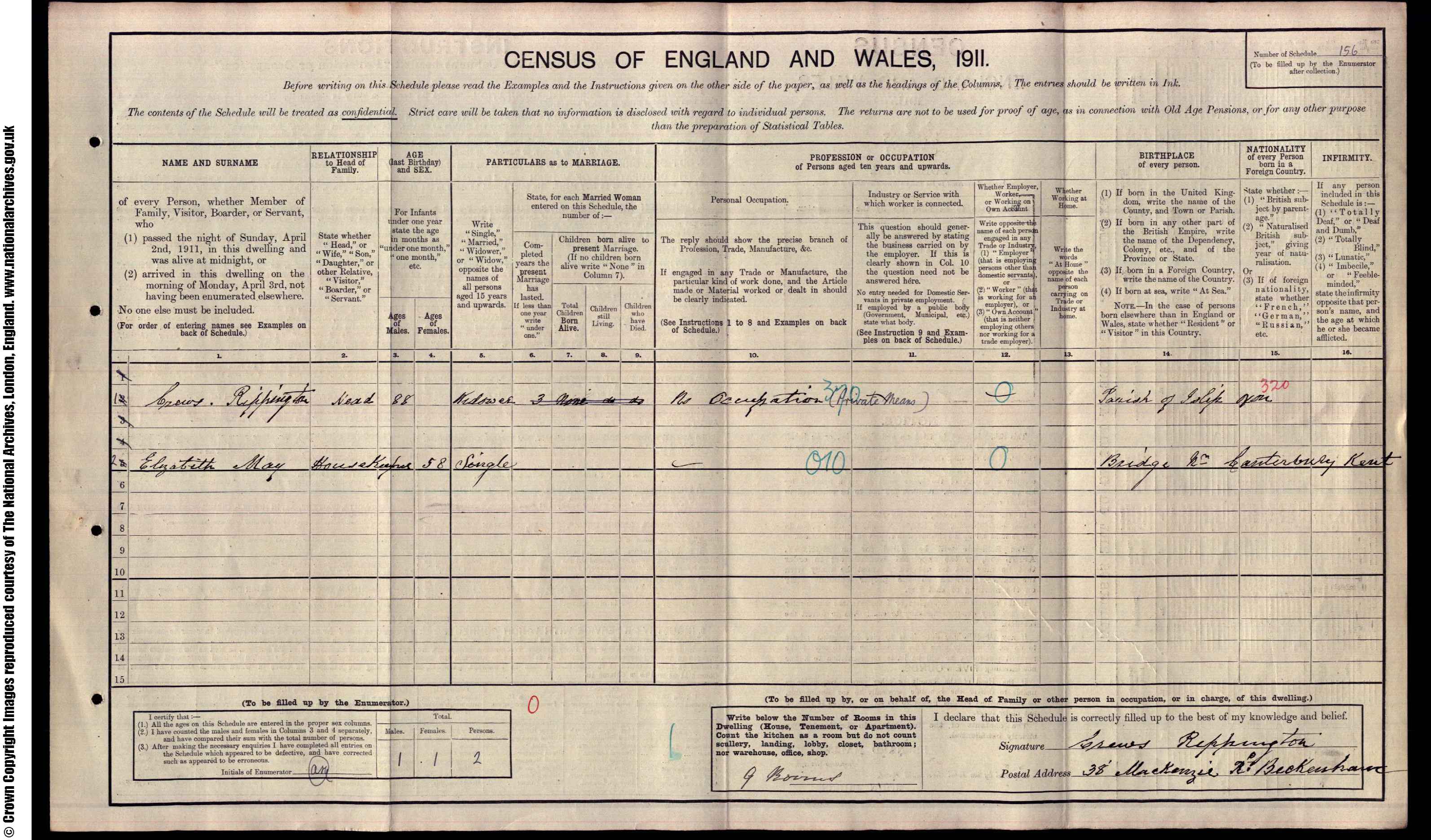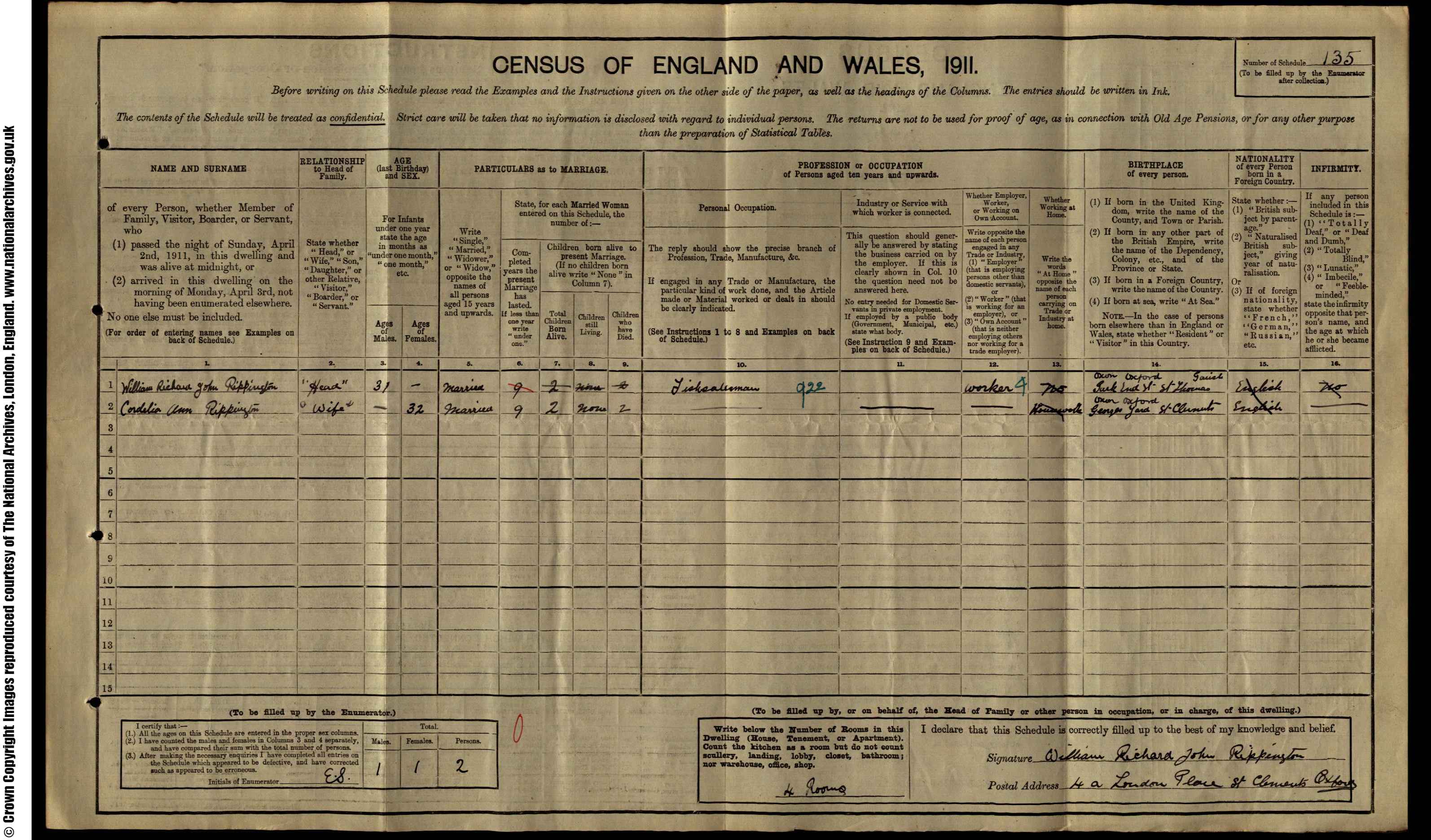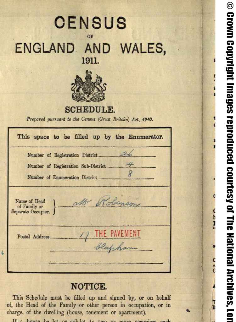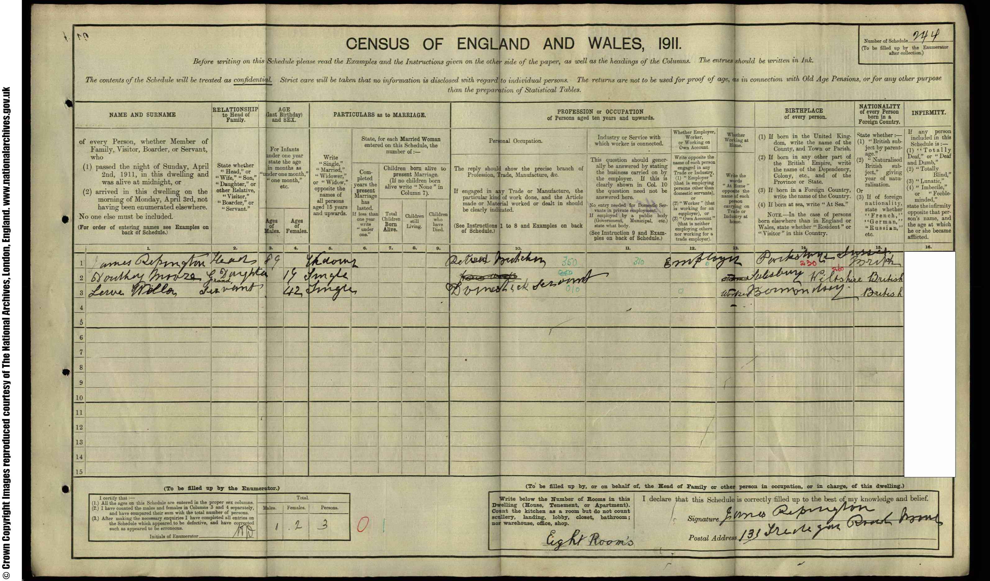 RG14 - 1911 Census Schedules RG78 - 1911 Enumerators Summary Books