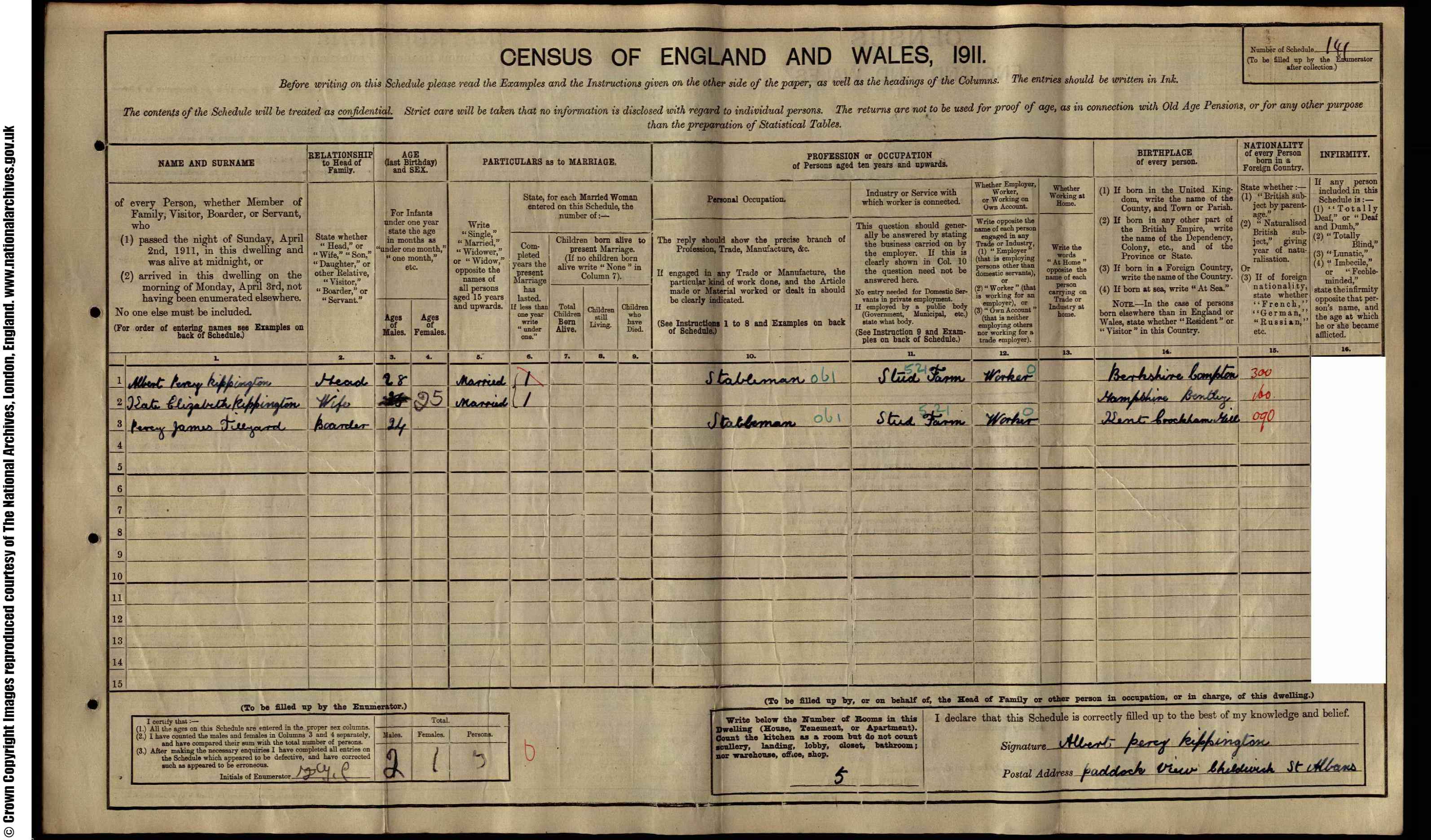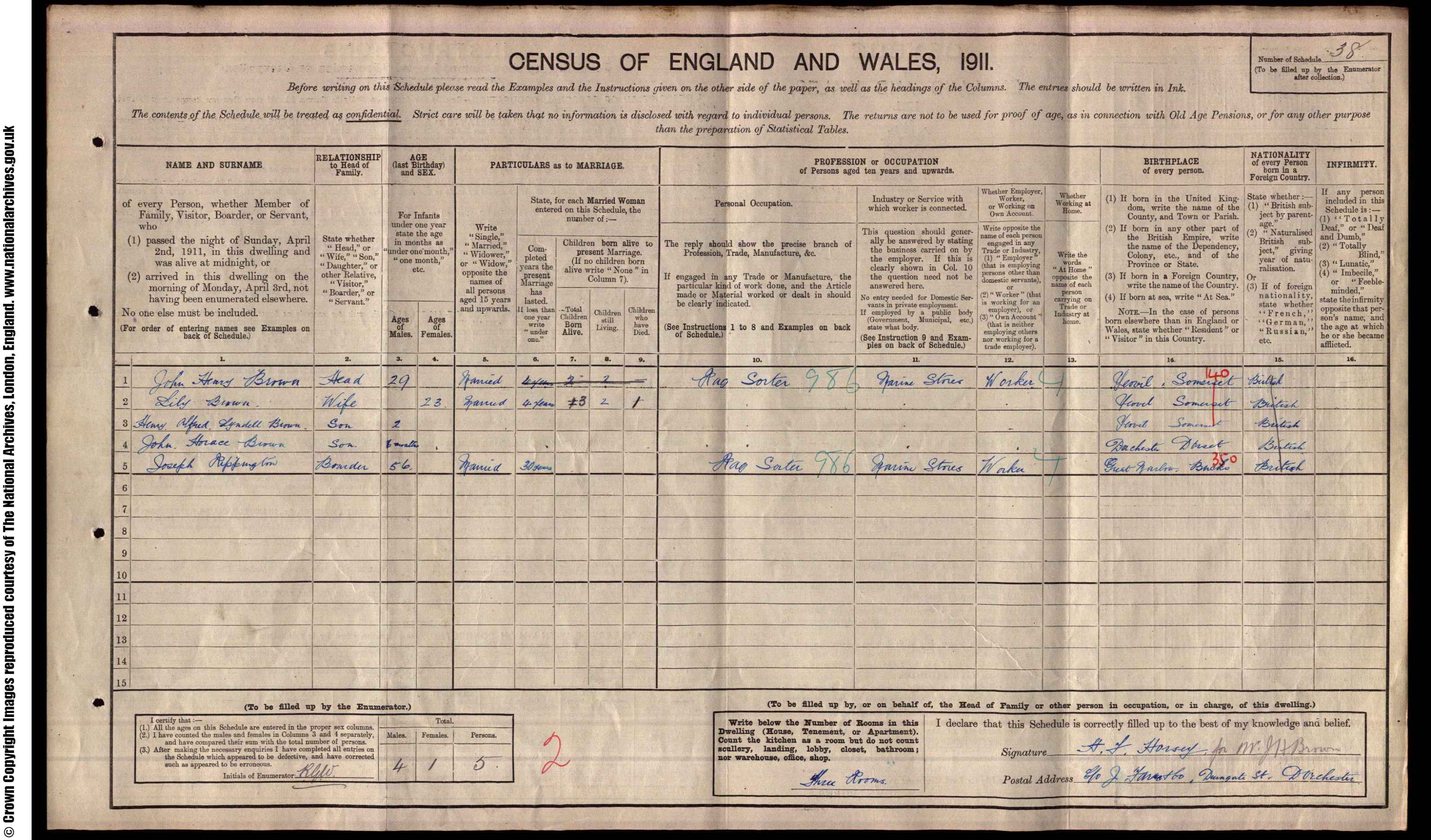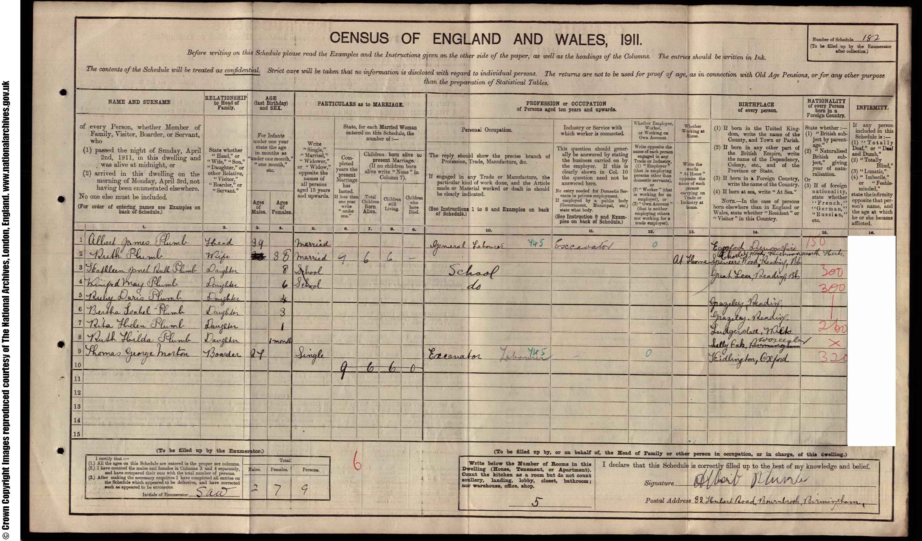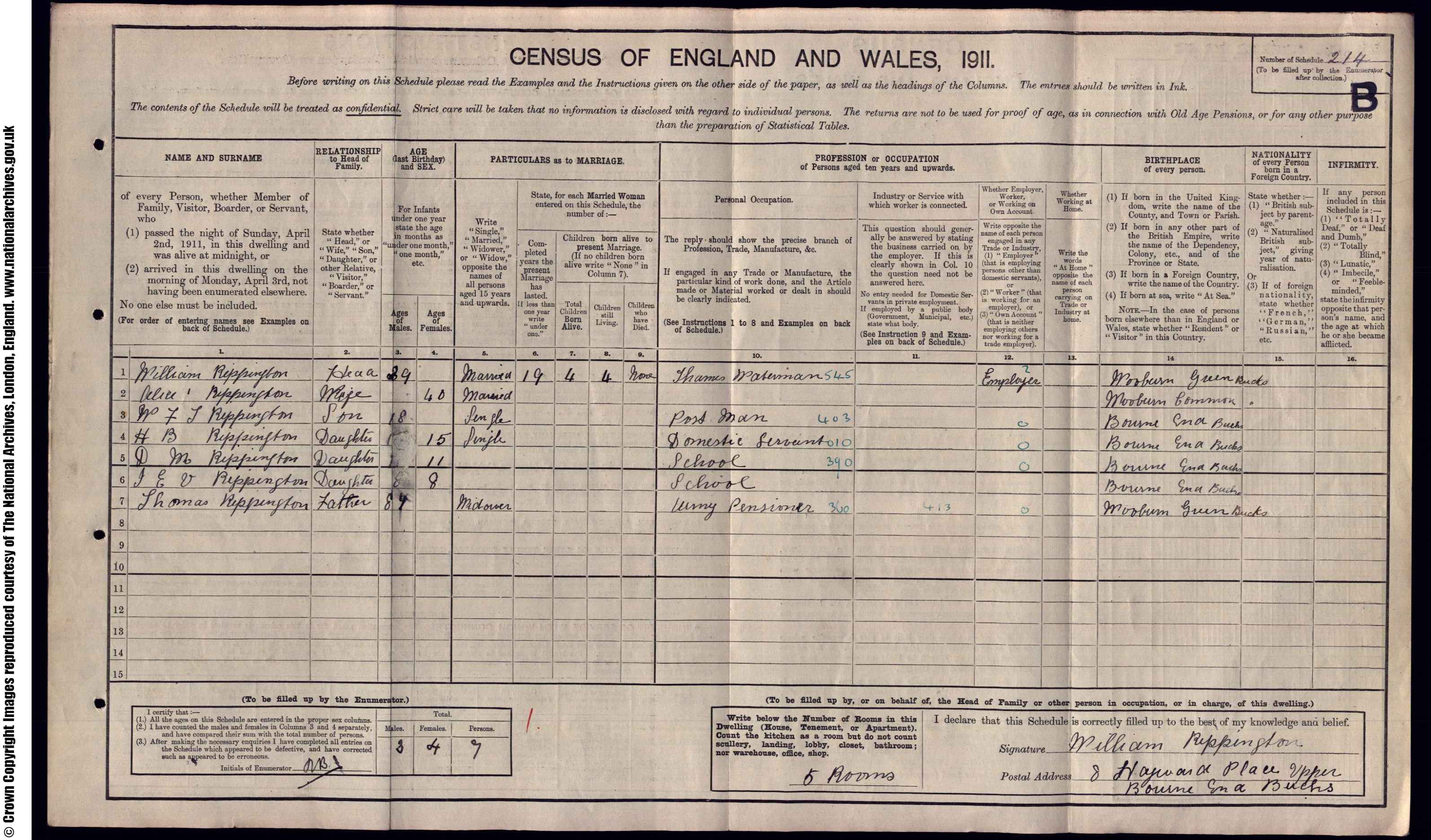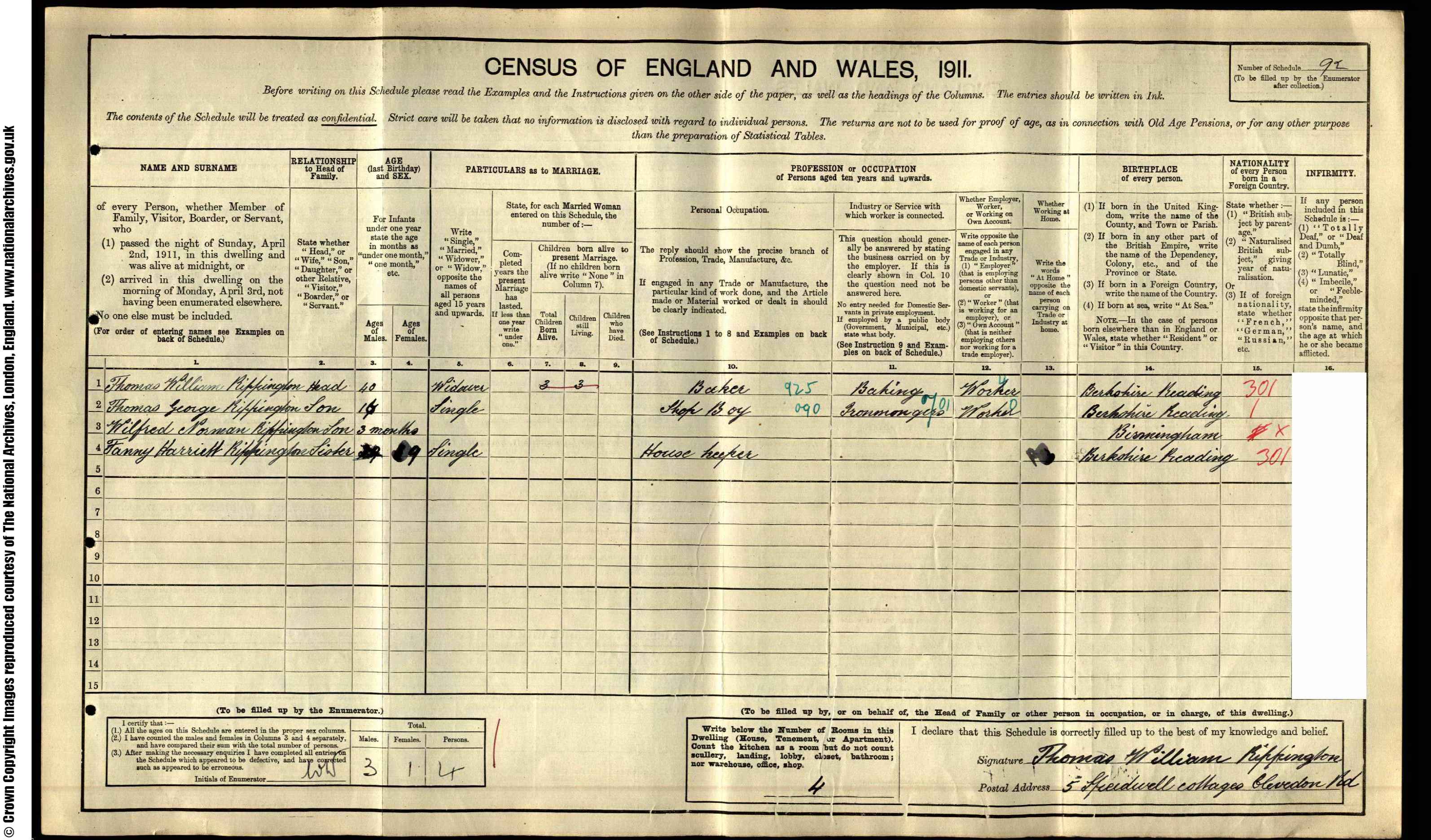 RG14 - 1911 Census Schedules RG78 - 1911 Enumerators Summary Books