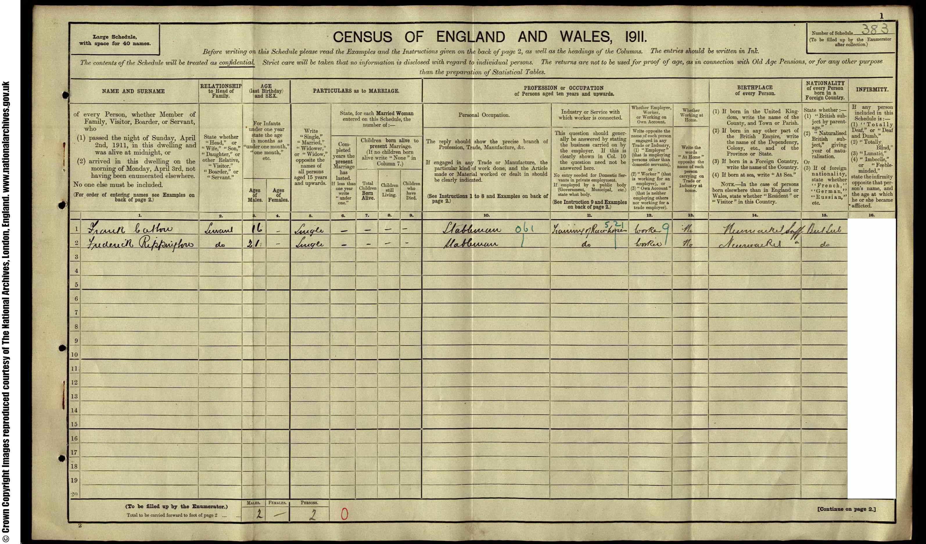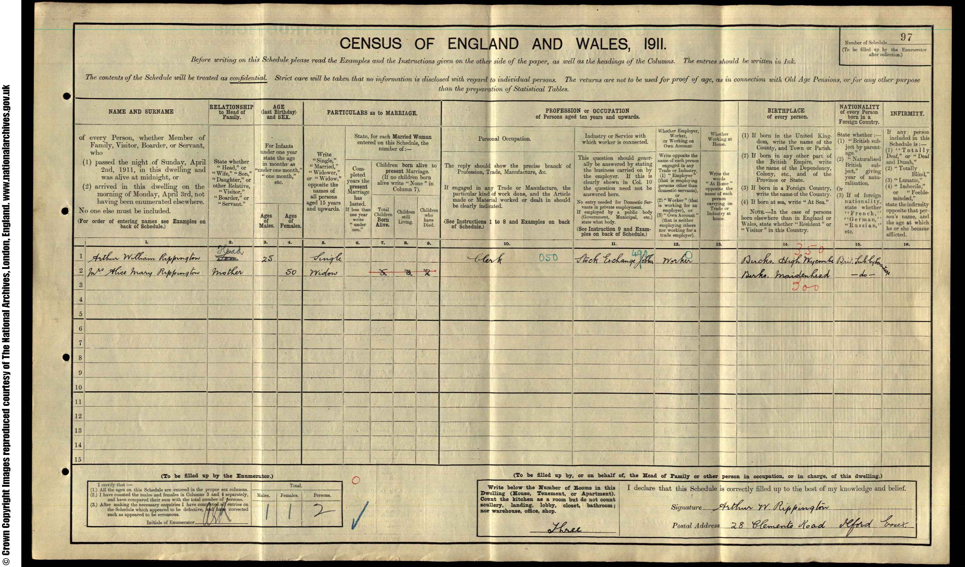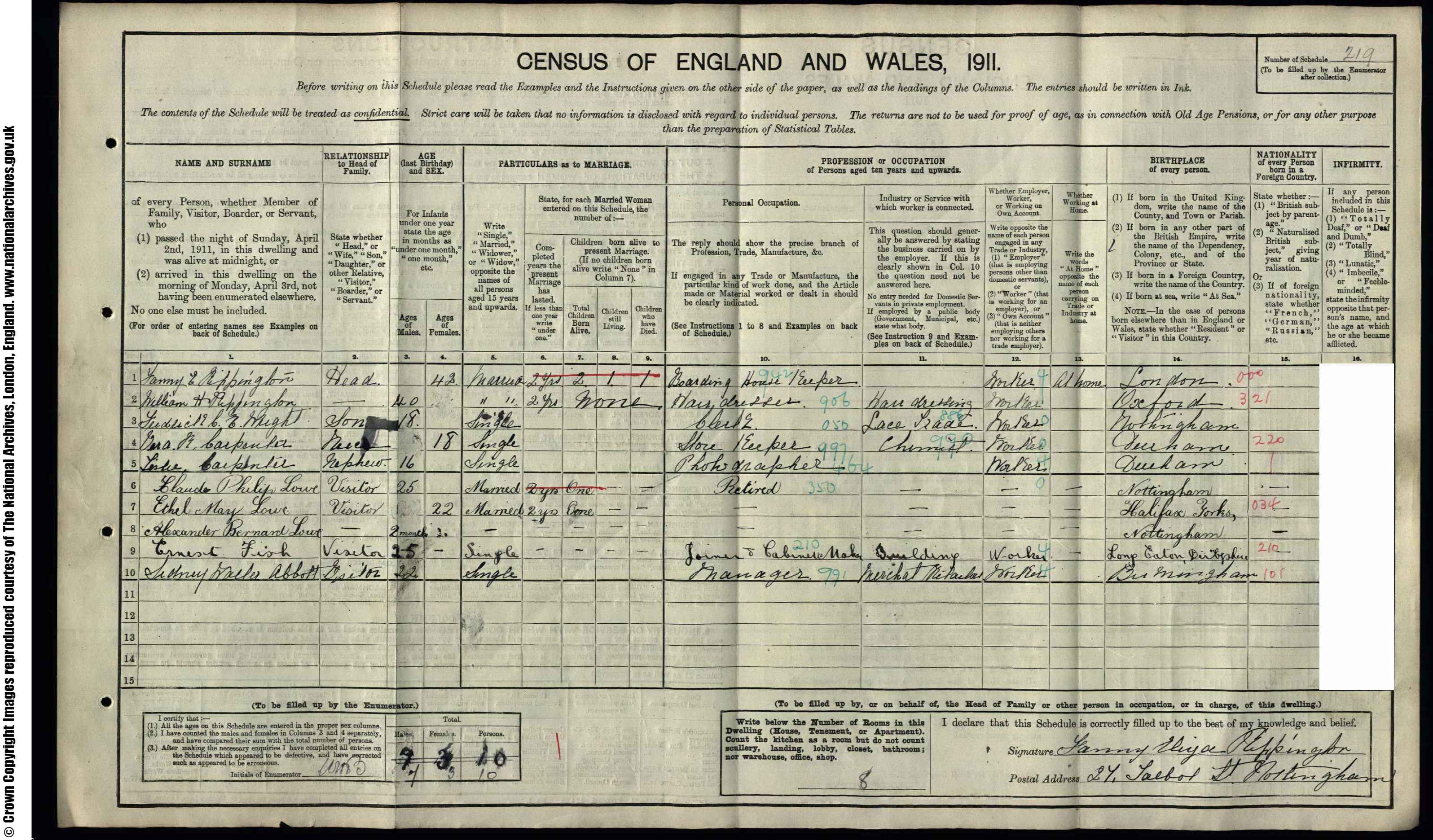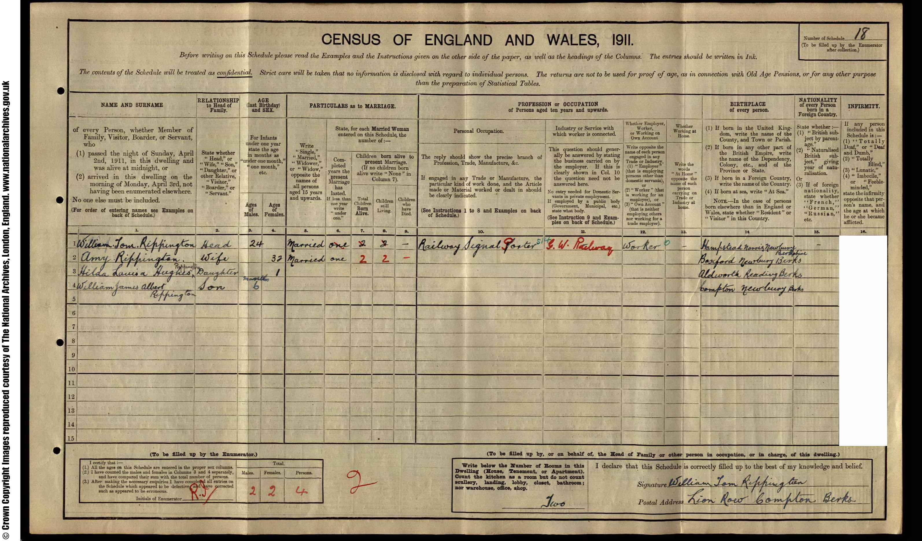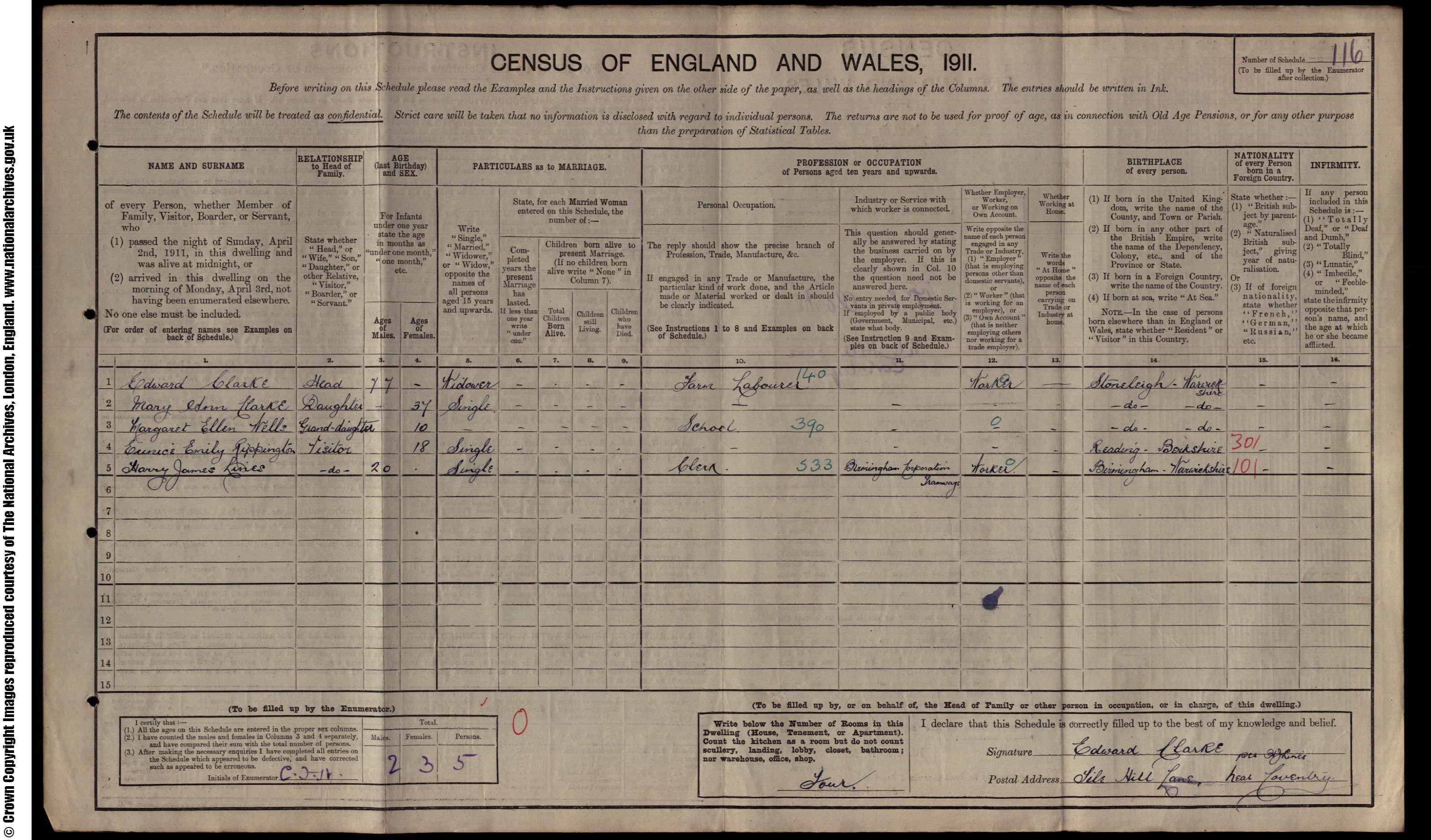 RG14 - 1911 Census Schedules RG78 - 1911 Enumerators Summary Books
