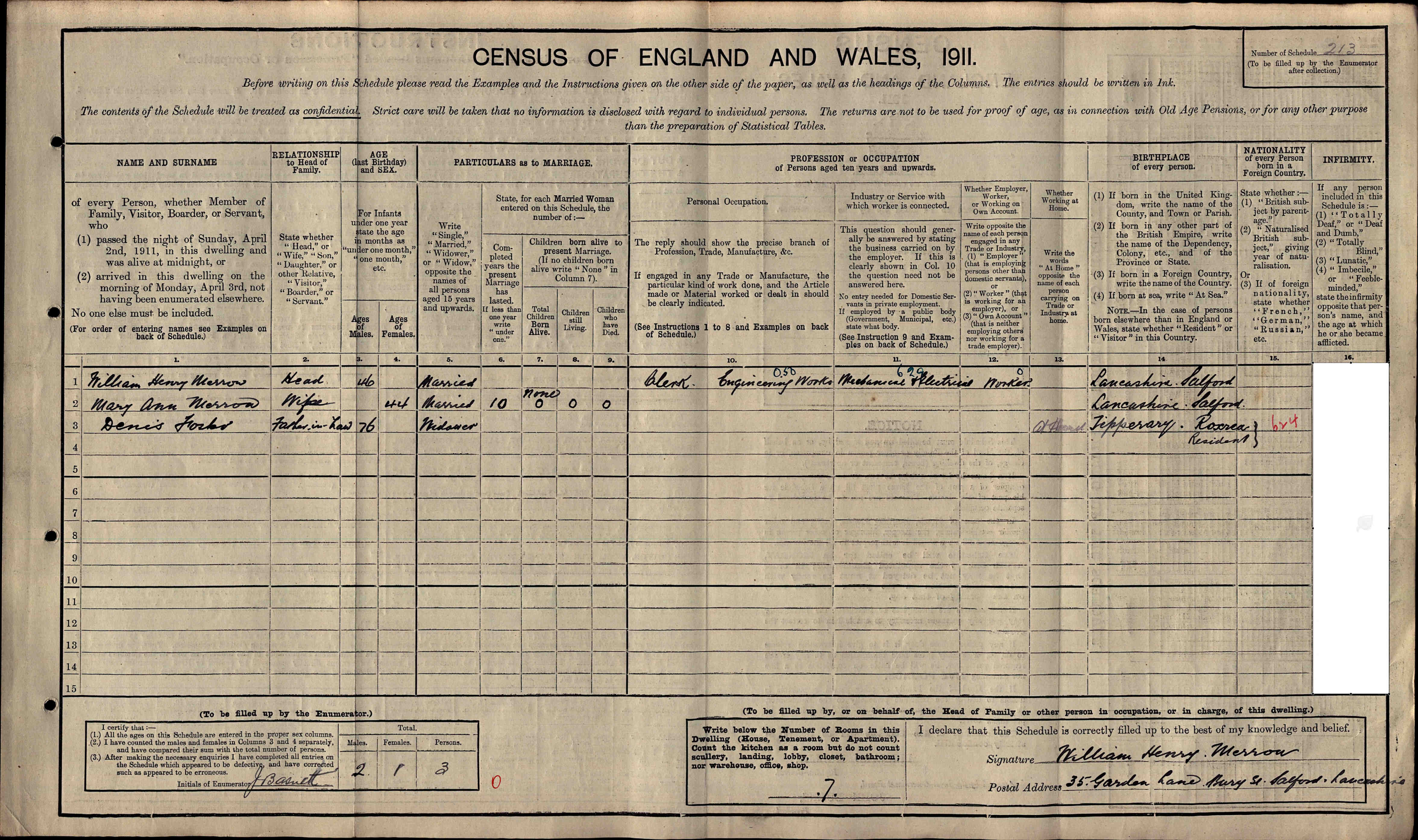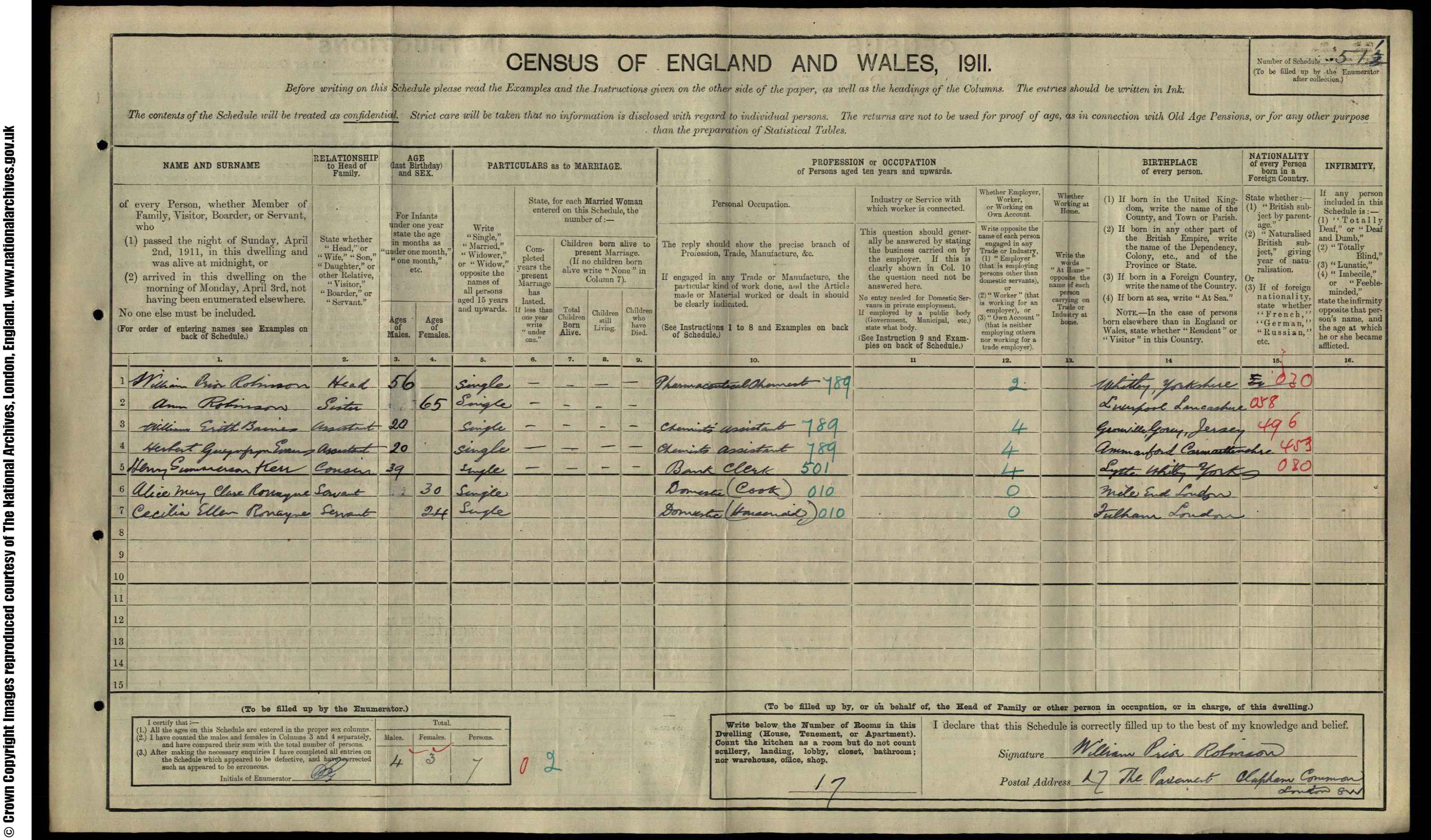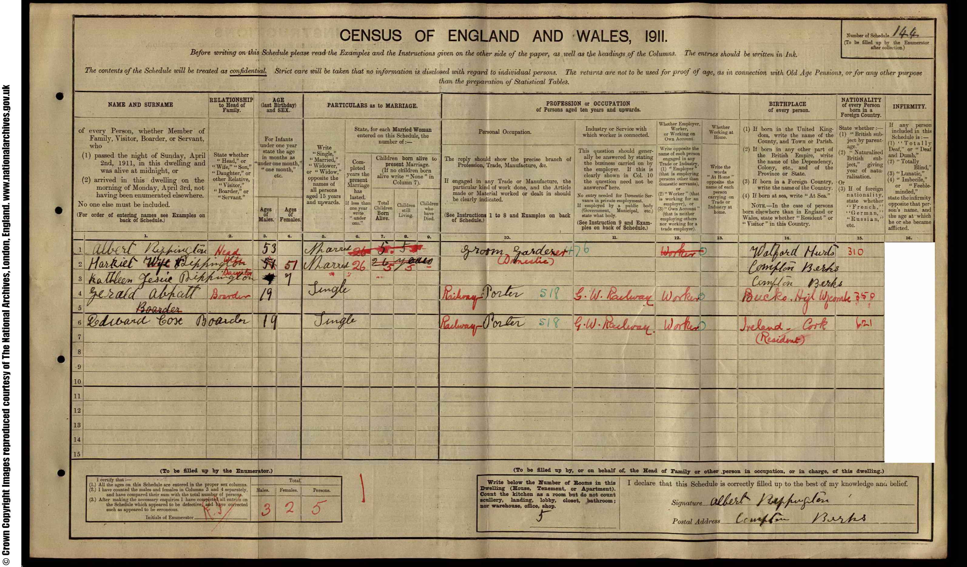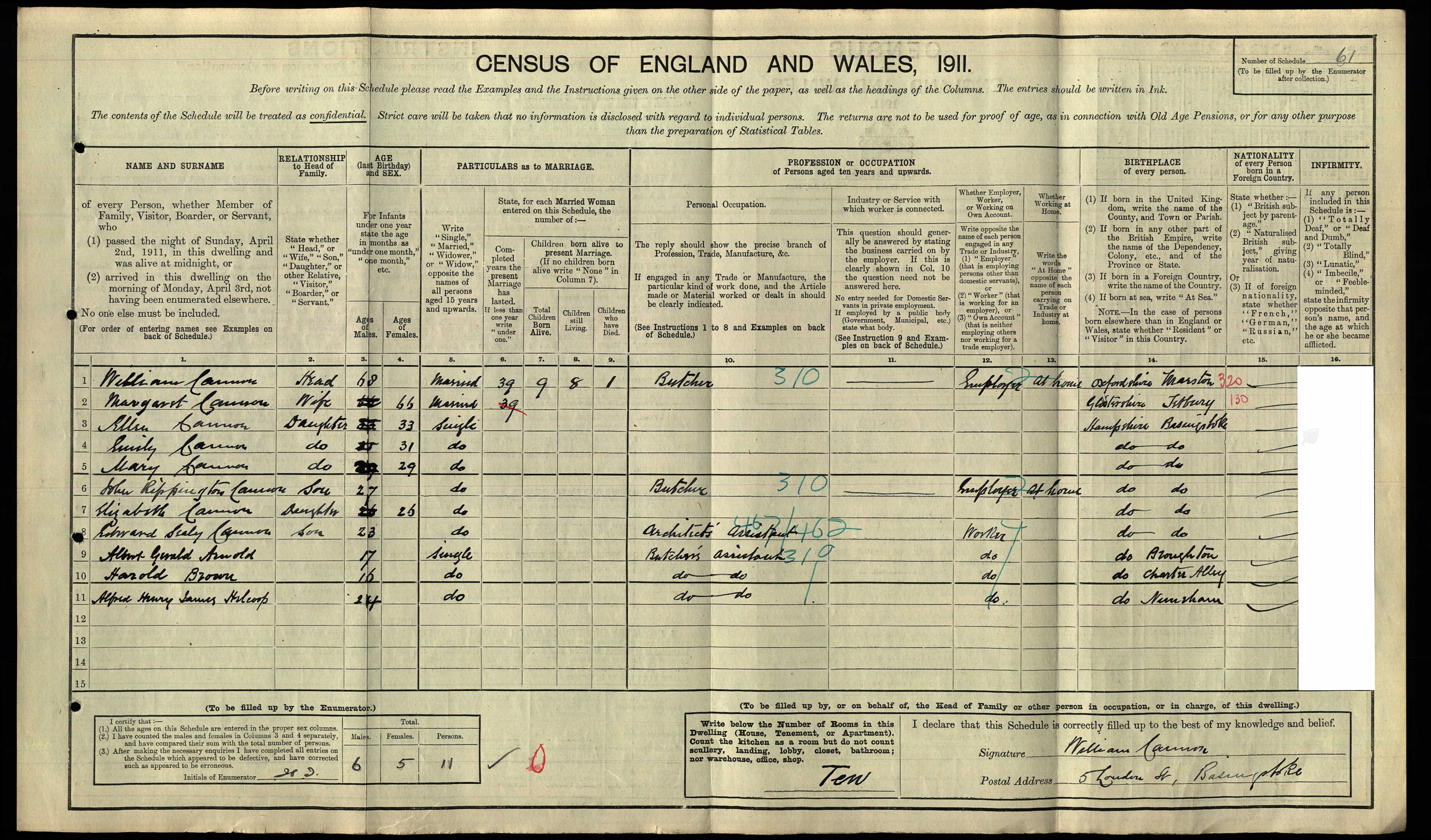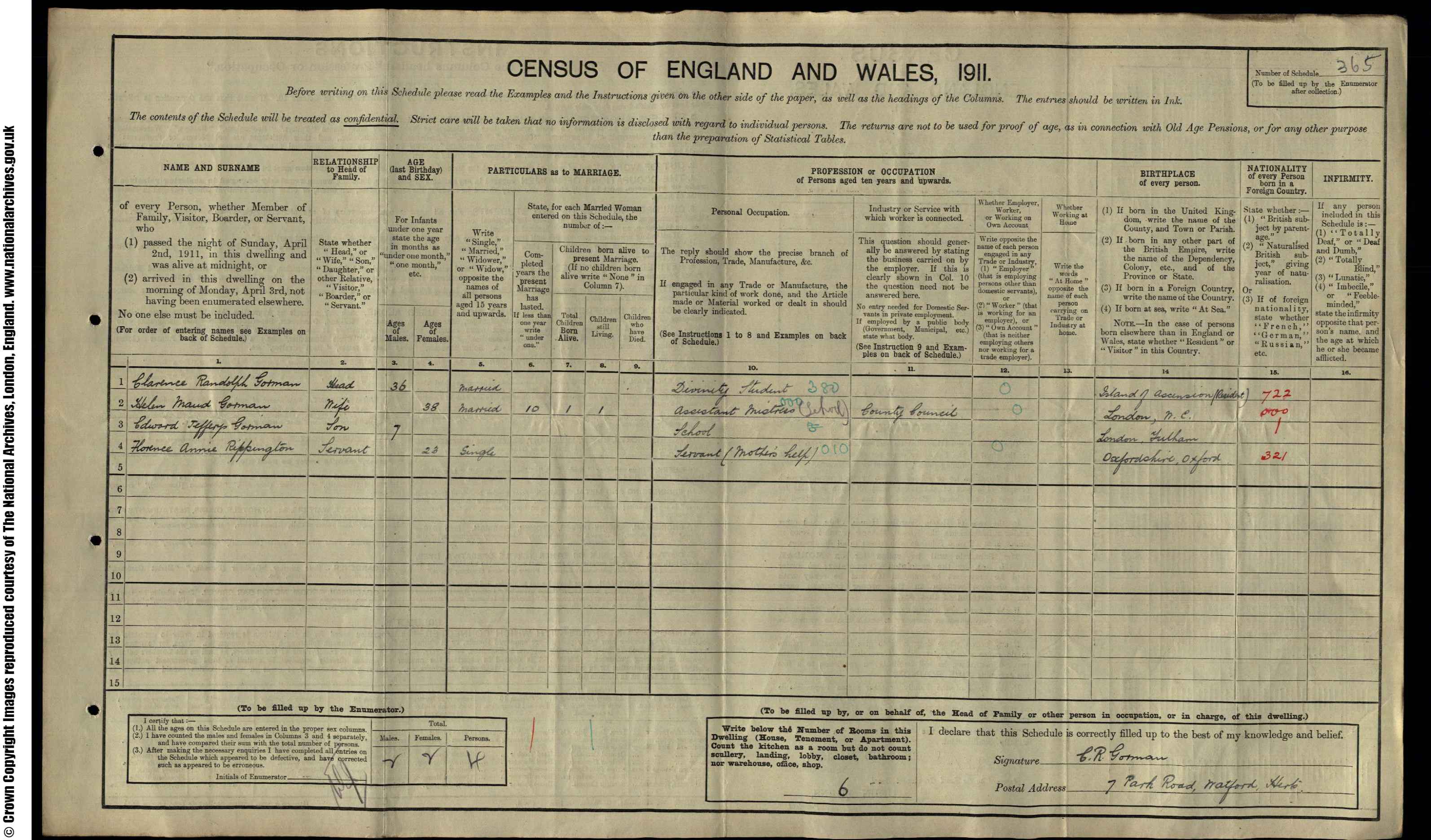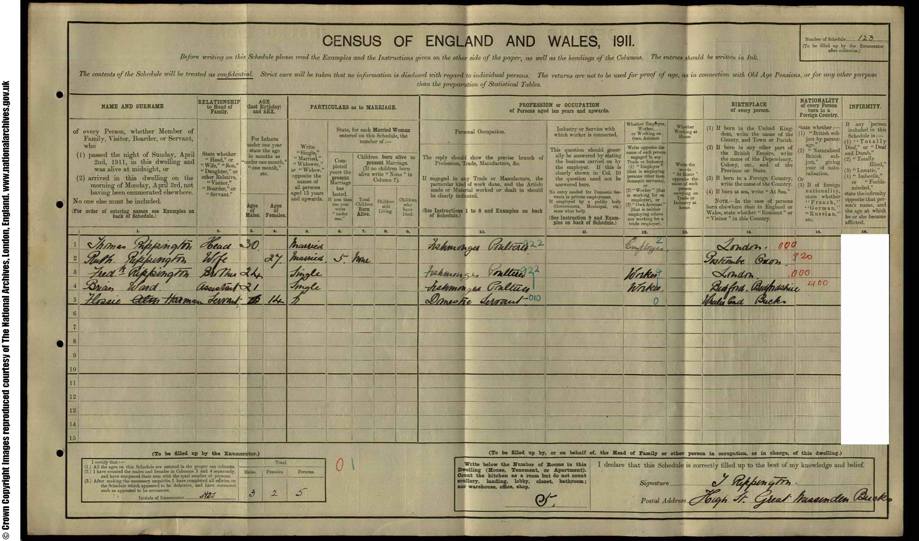 RG14 - 1911 Census Schedules RG78 - 1911 Enumerators Summary Books