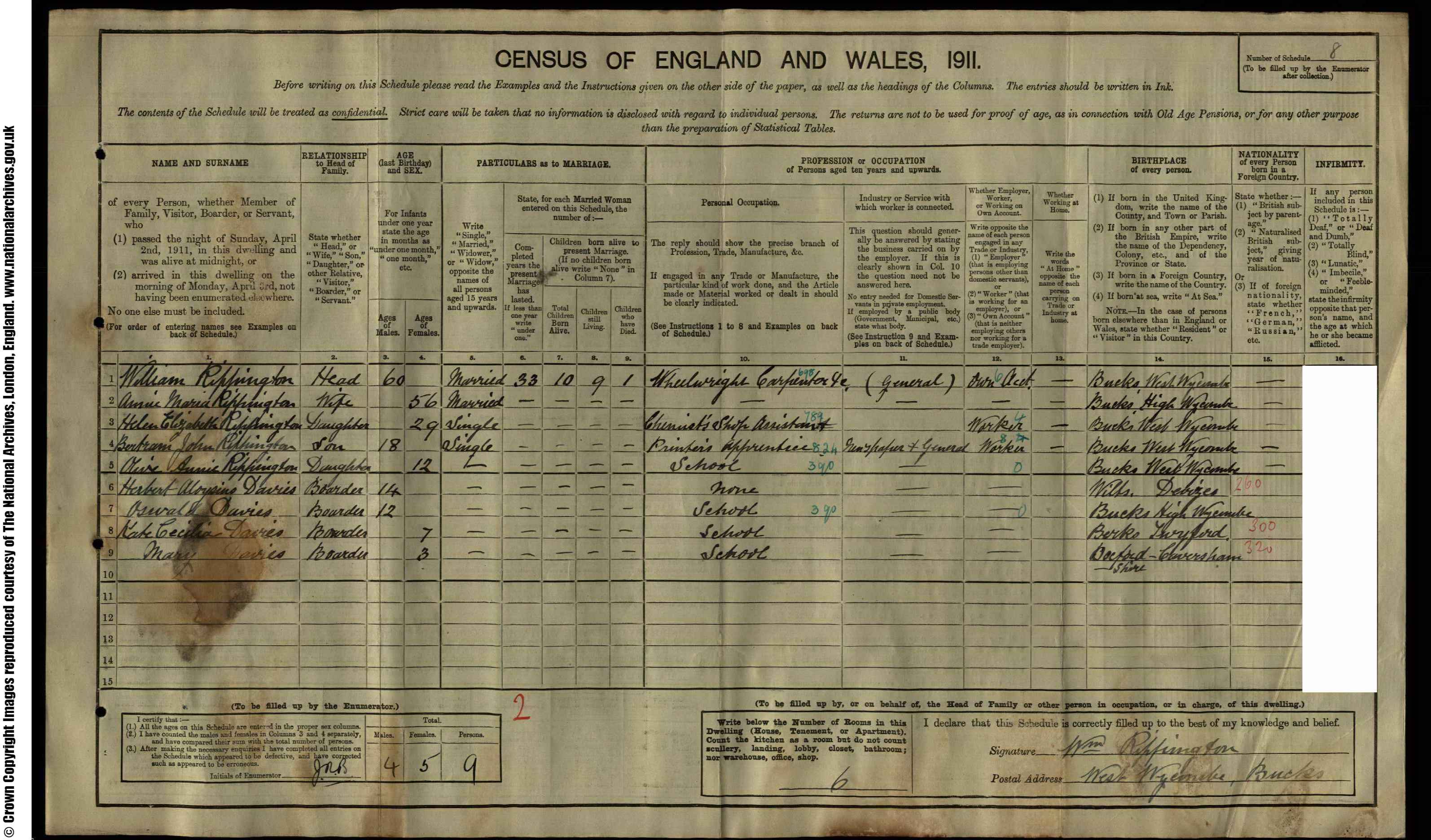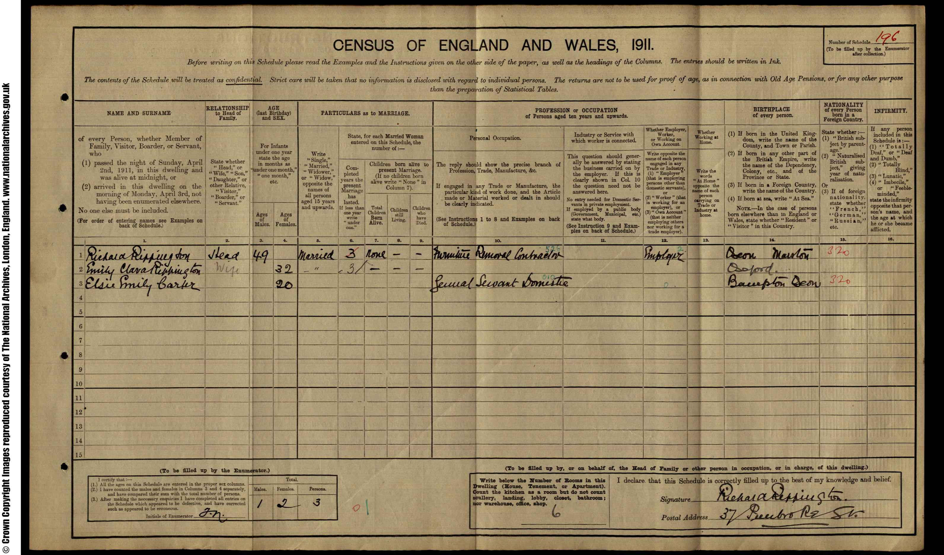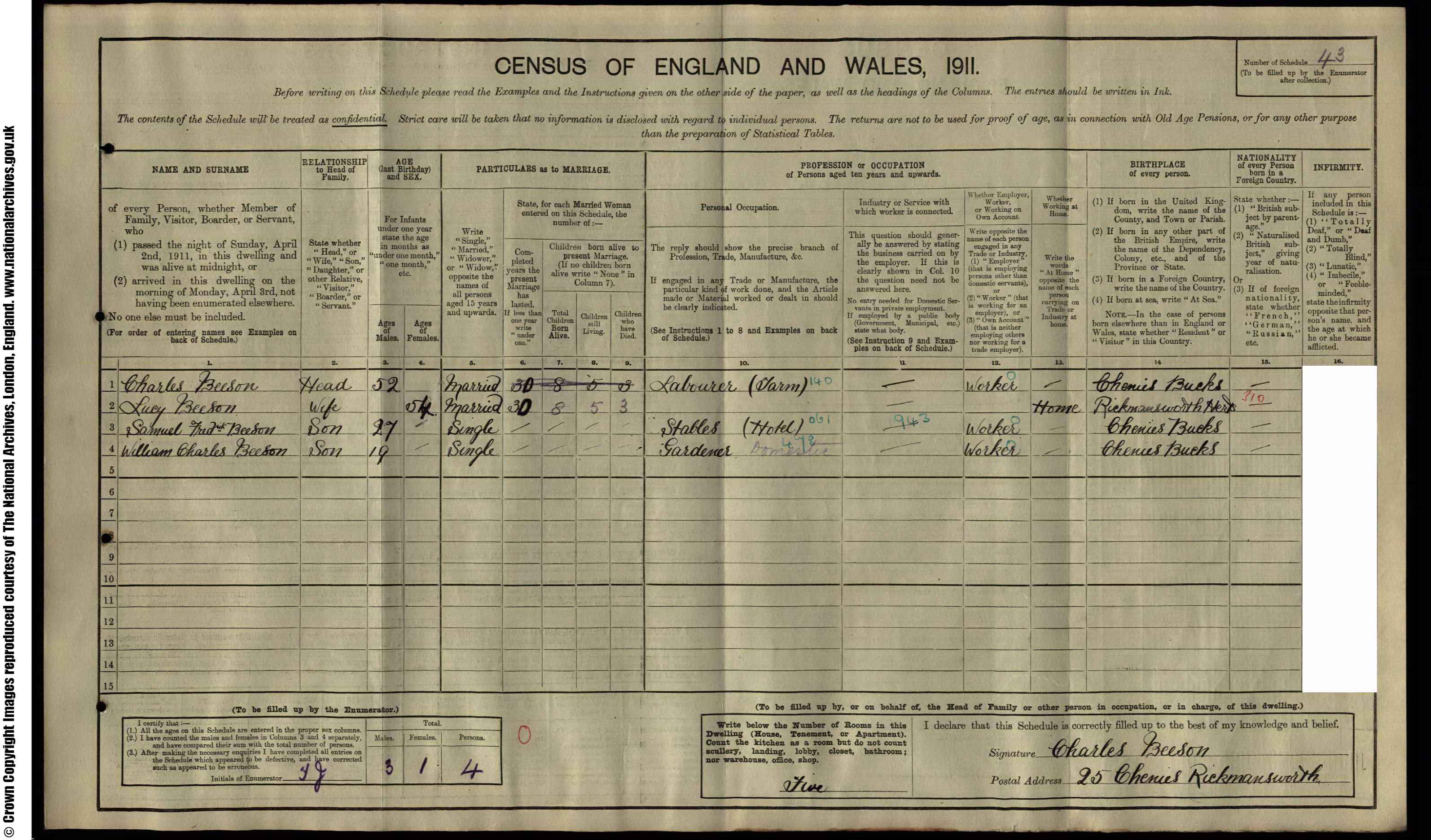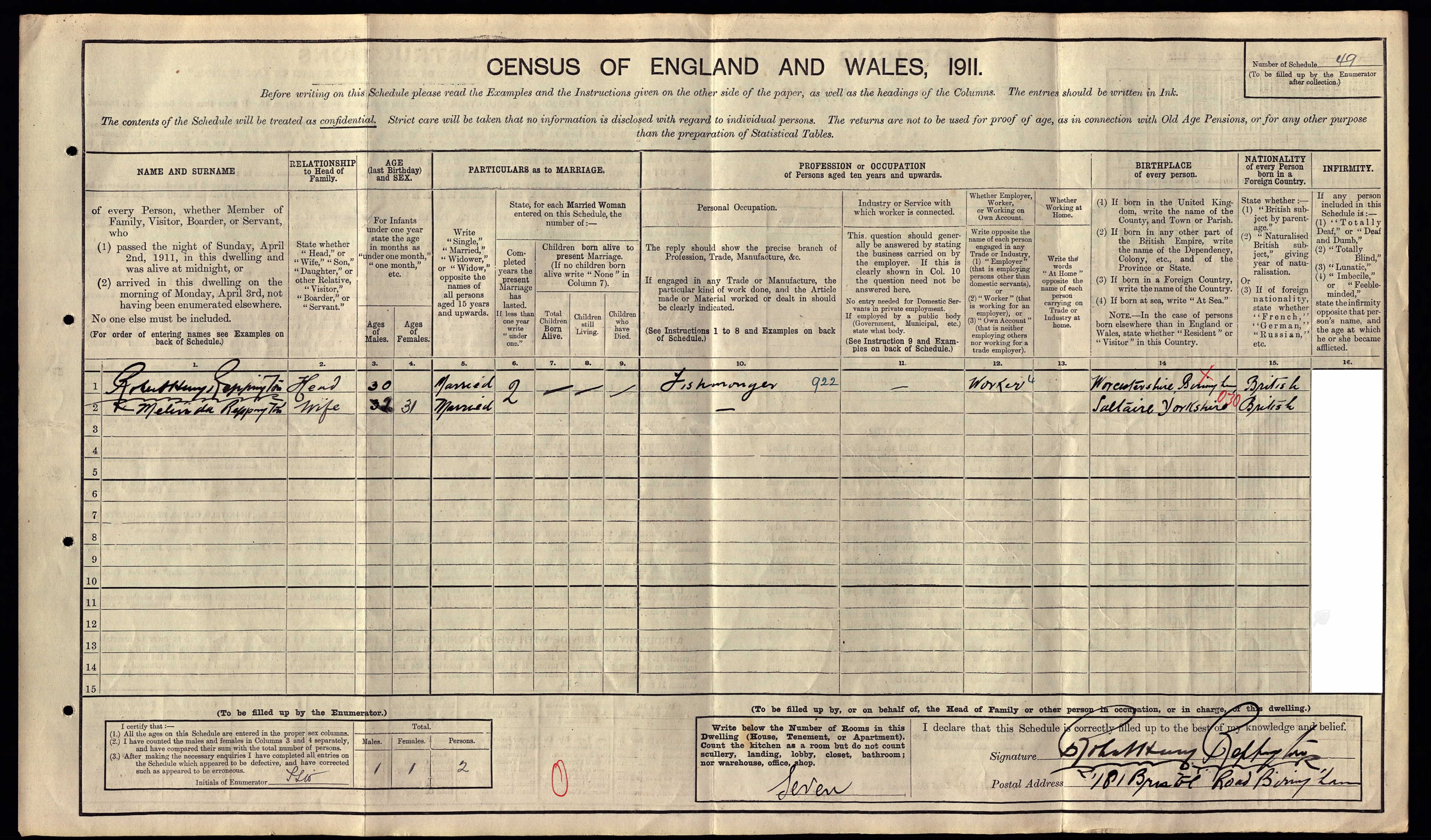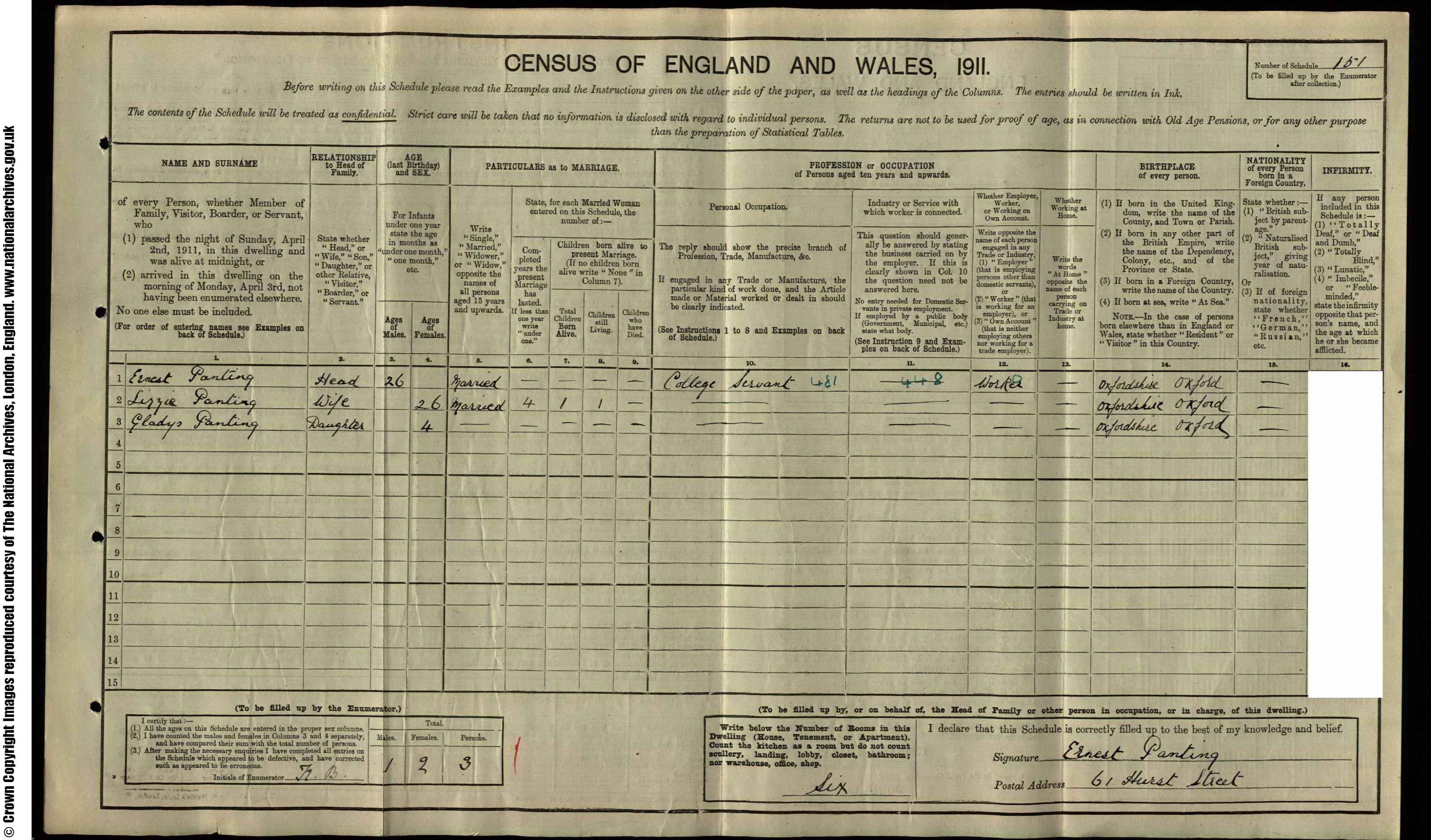 RG14 - 1911 Census Schedules RG78 - 1911 Enumerators Summary Books