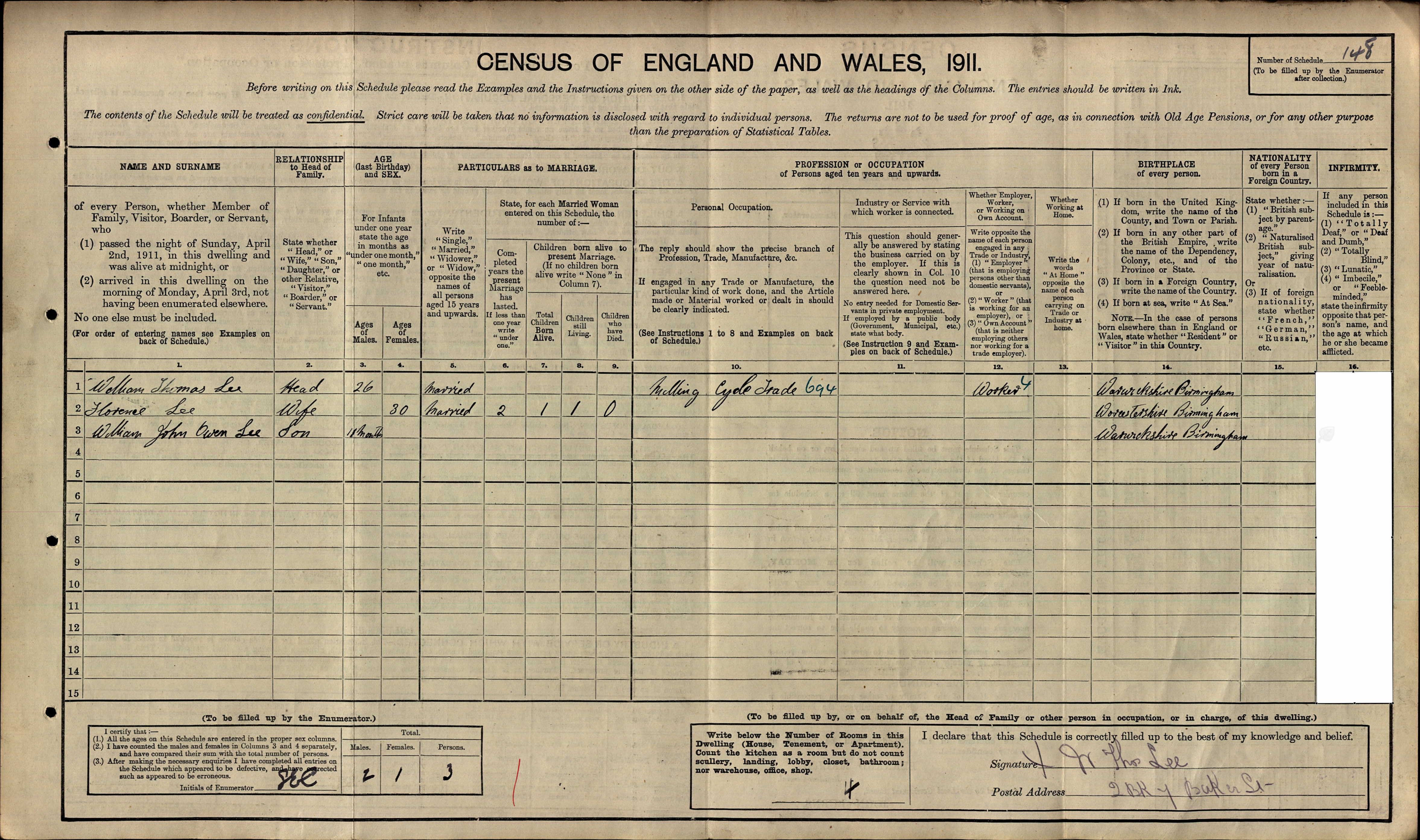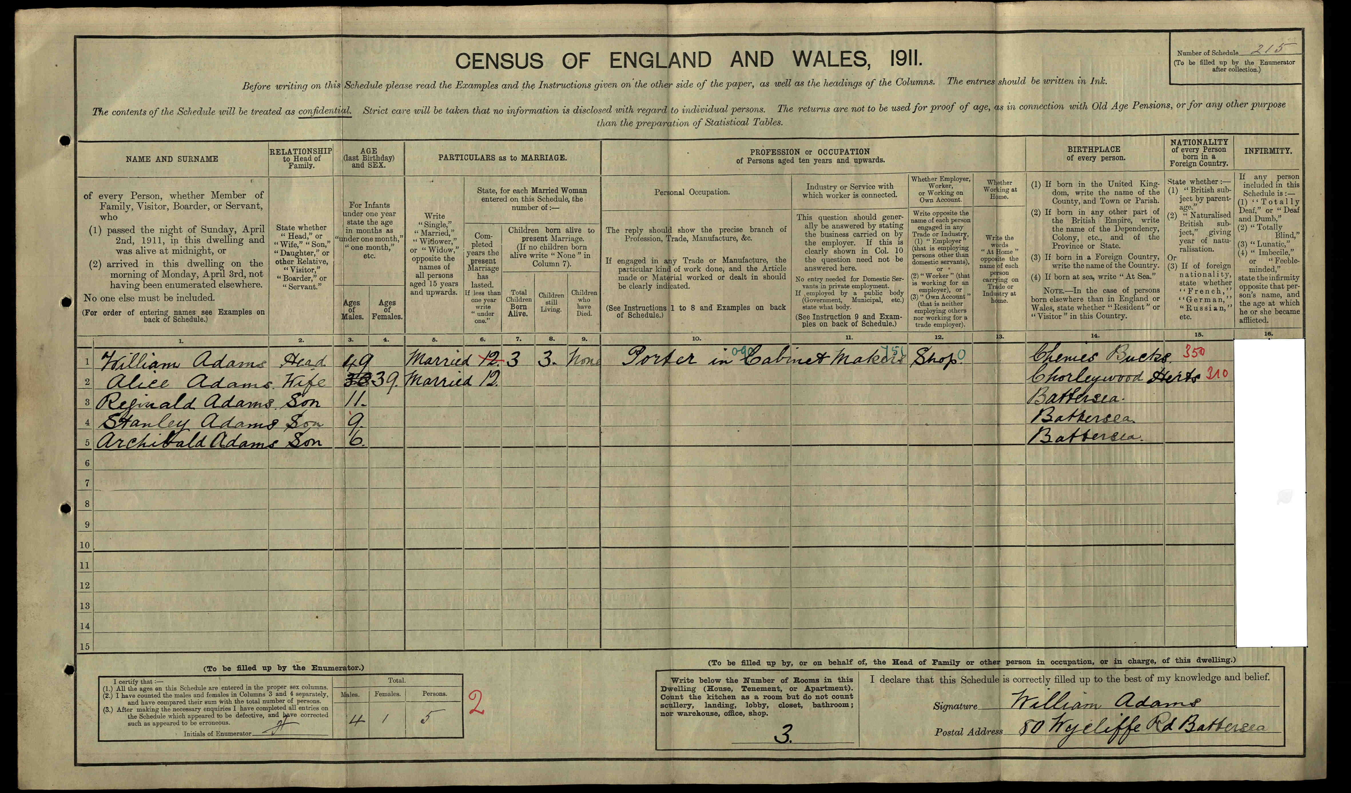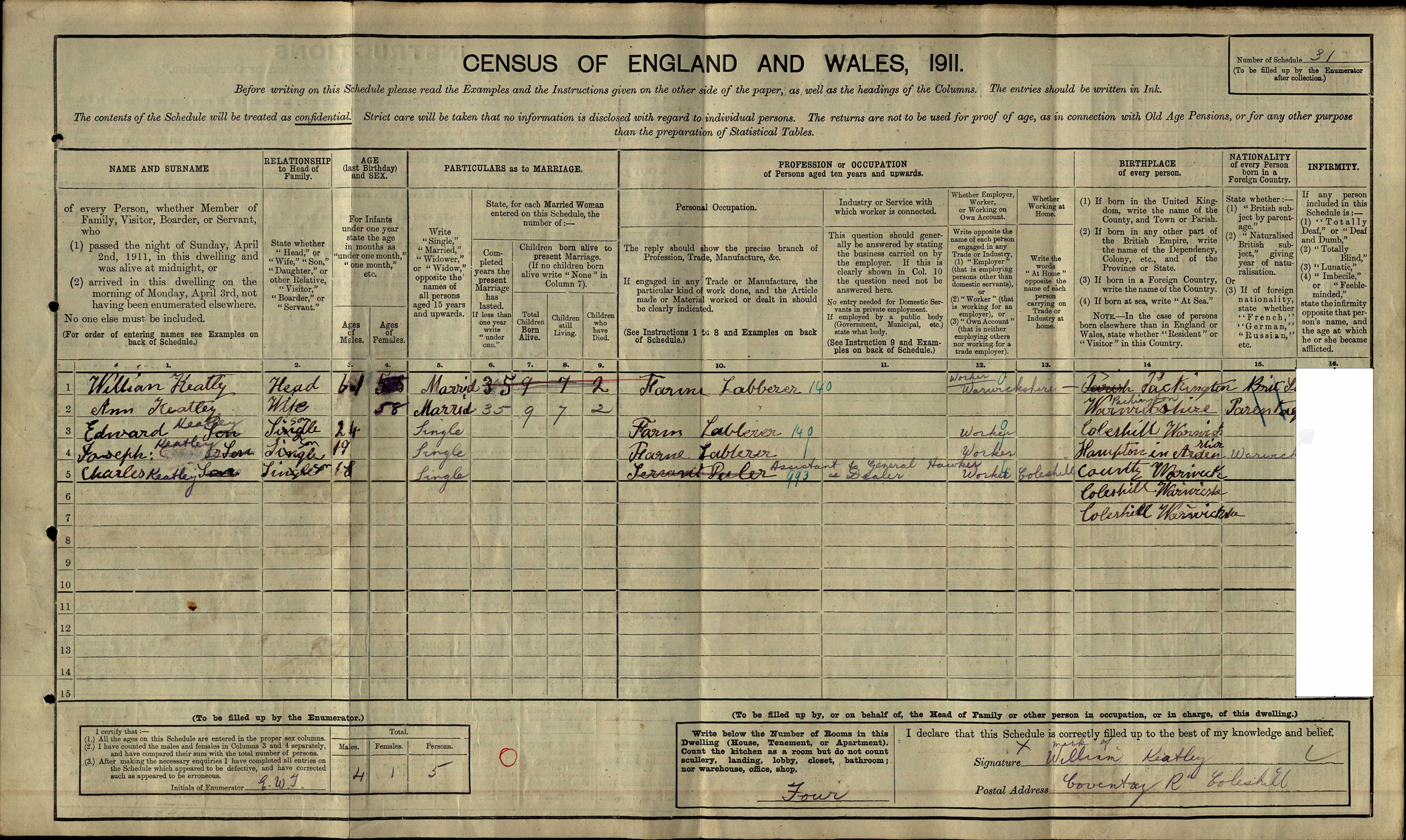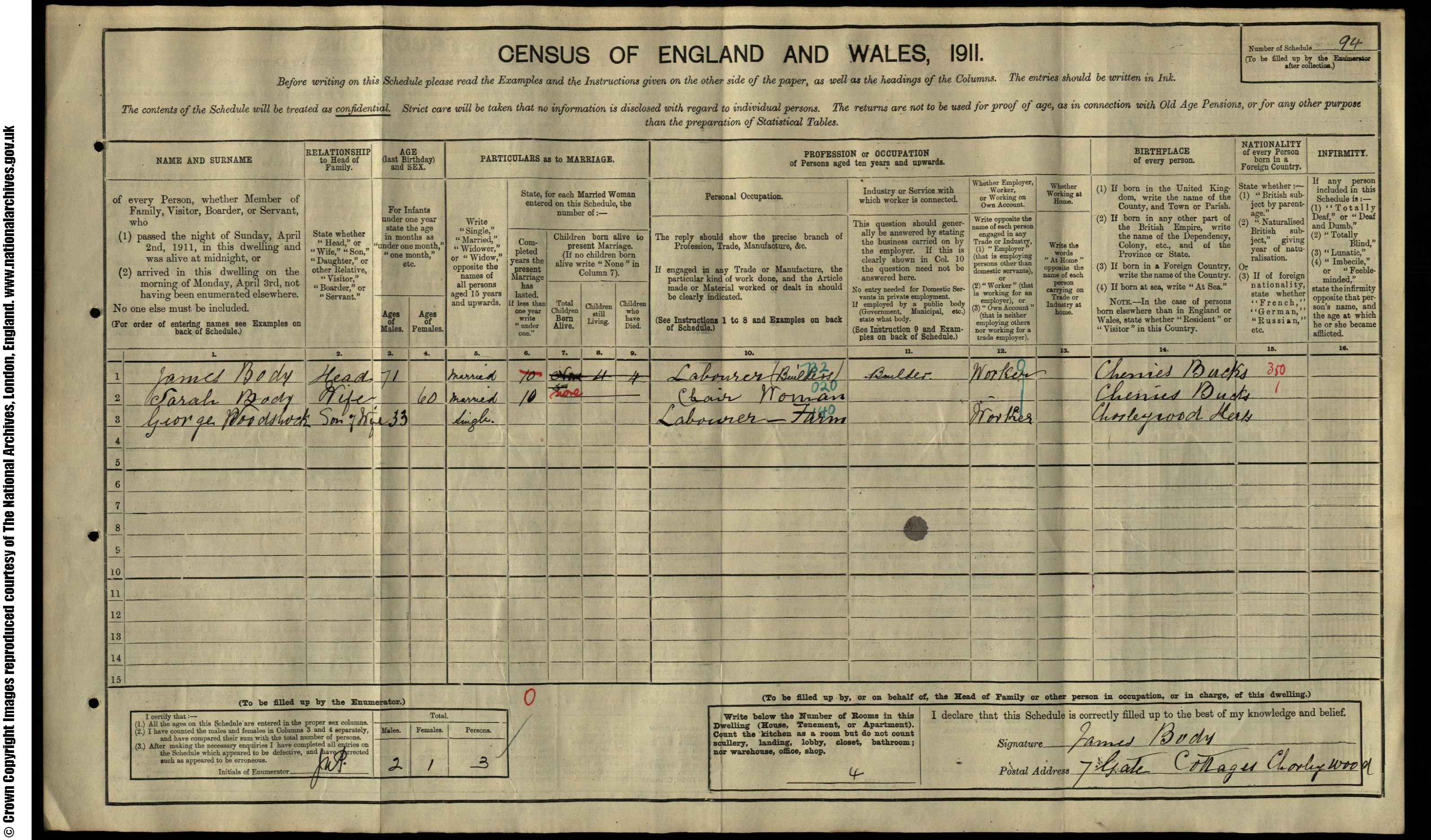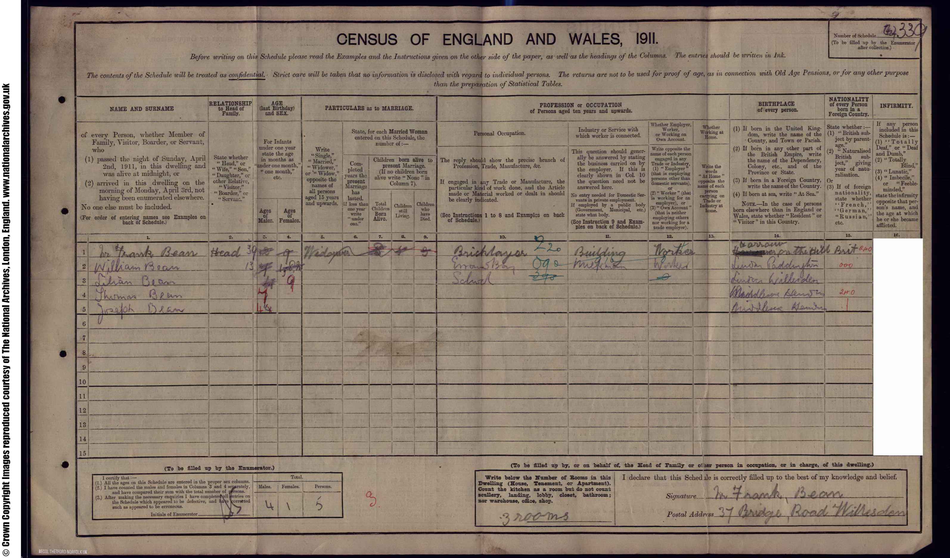RG14 - 1911 Census Schedules RG78 - 1911 Enumerators Summary Books