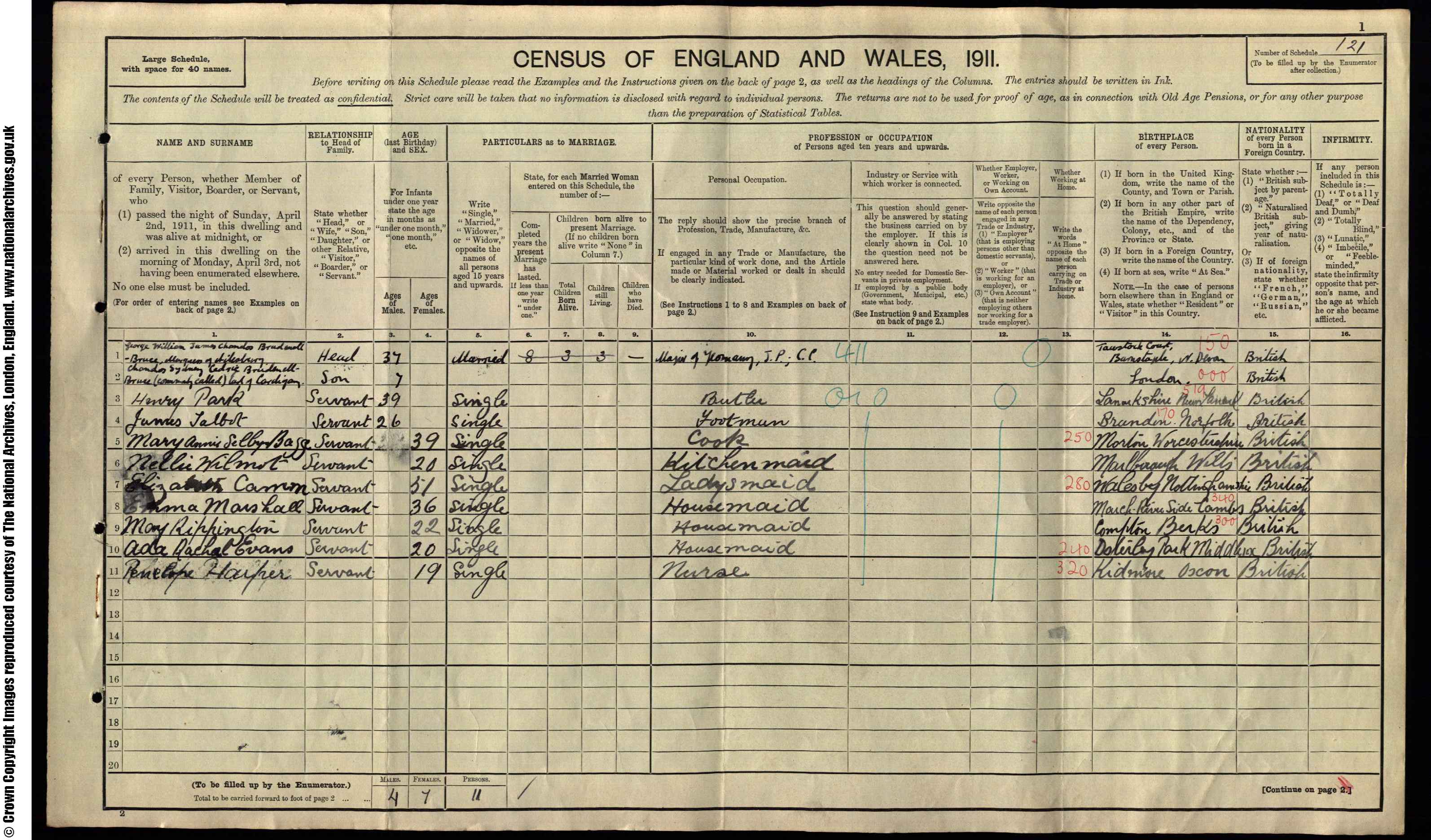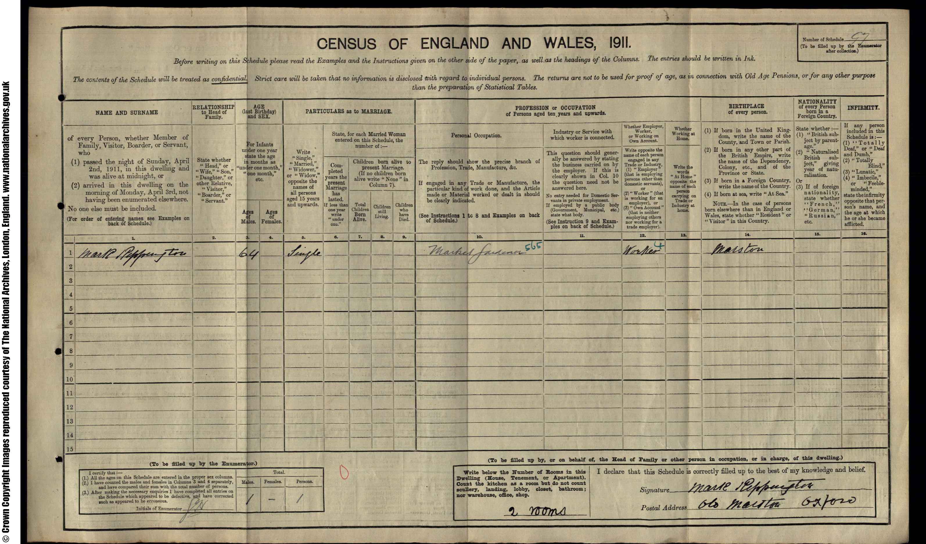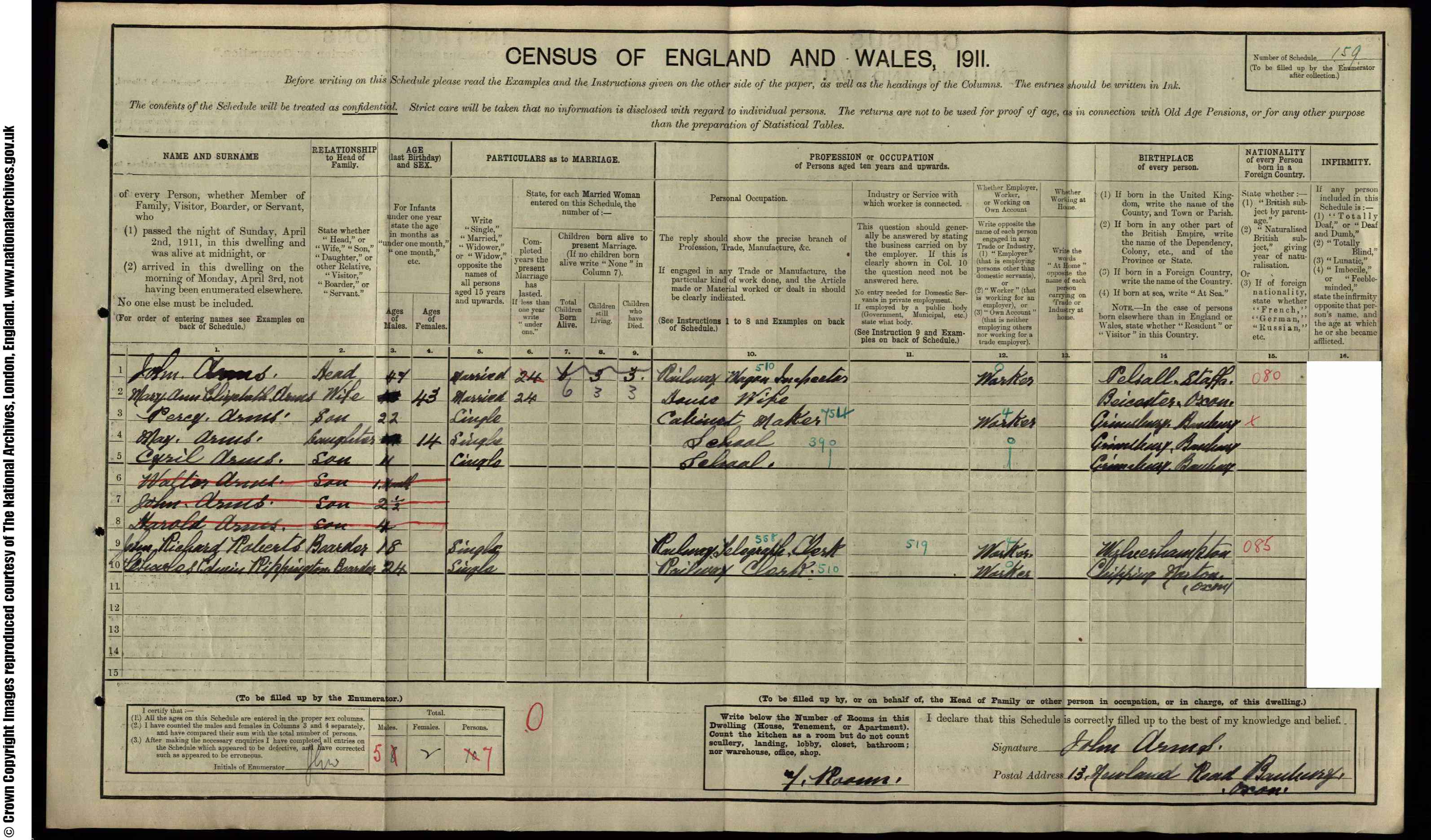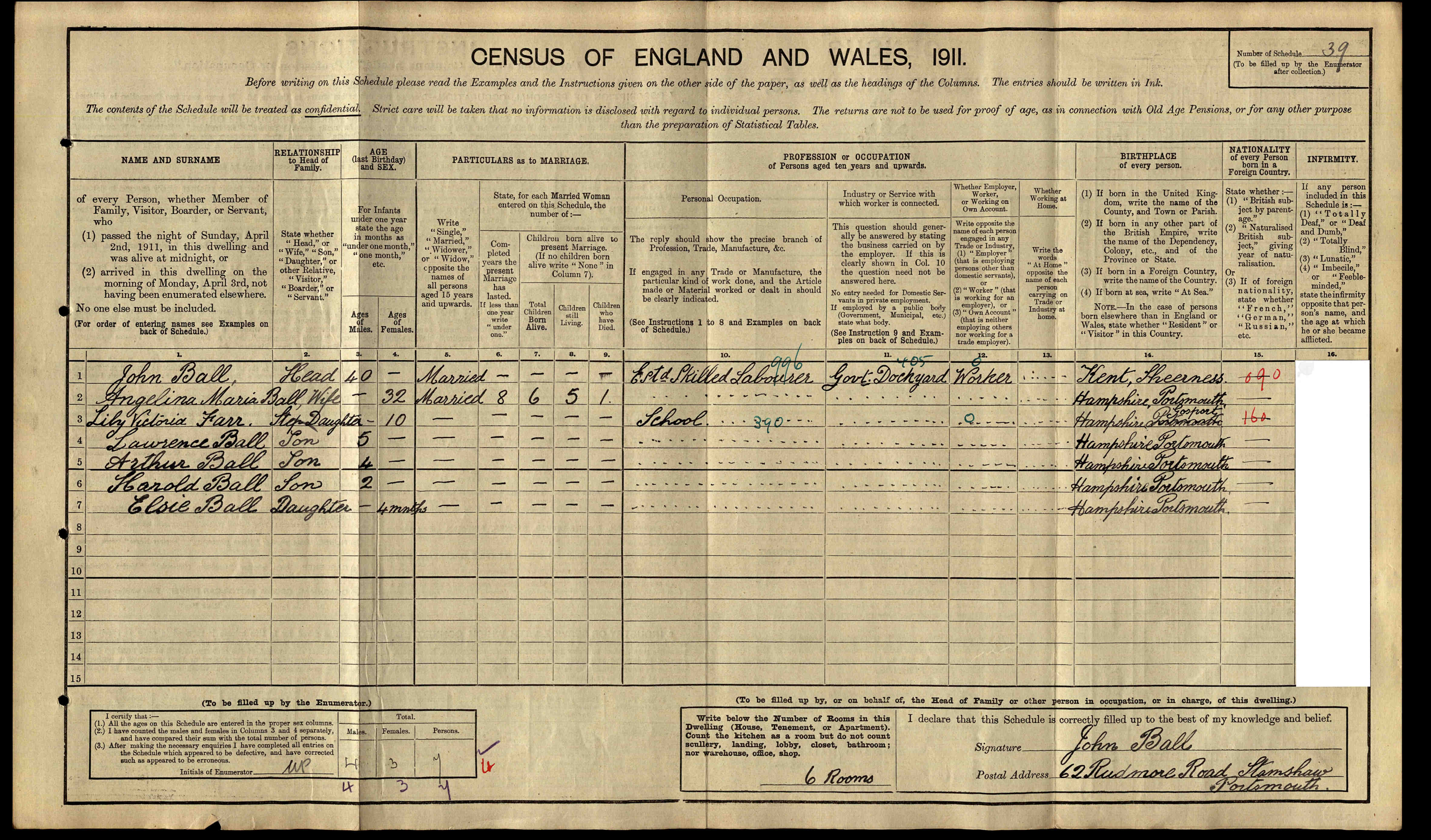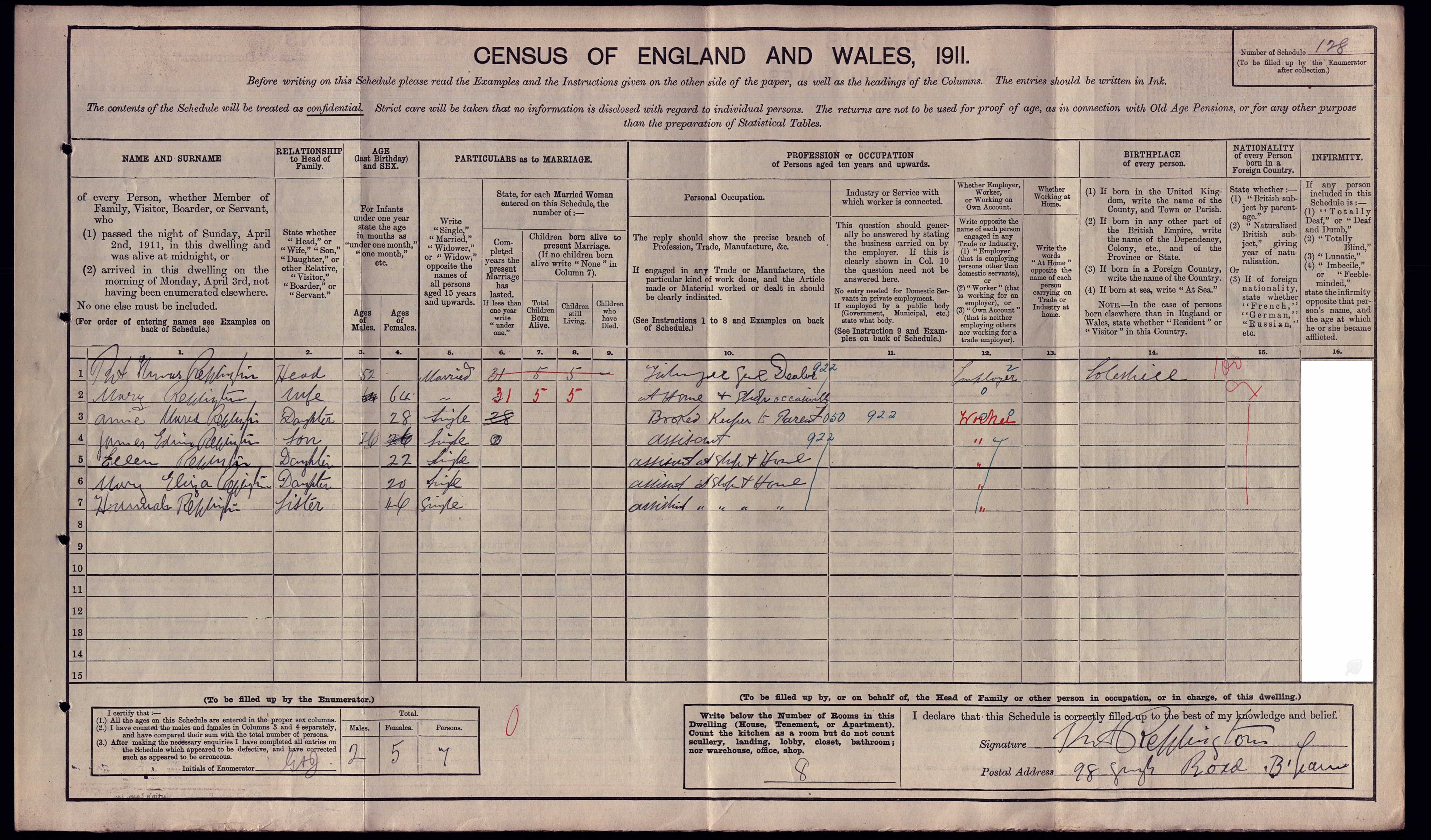 Ball (Angelina Maria nee Matthews) 1911 Census