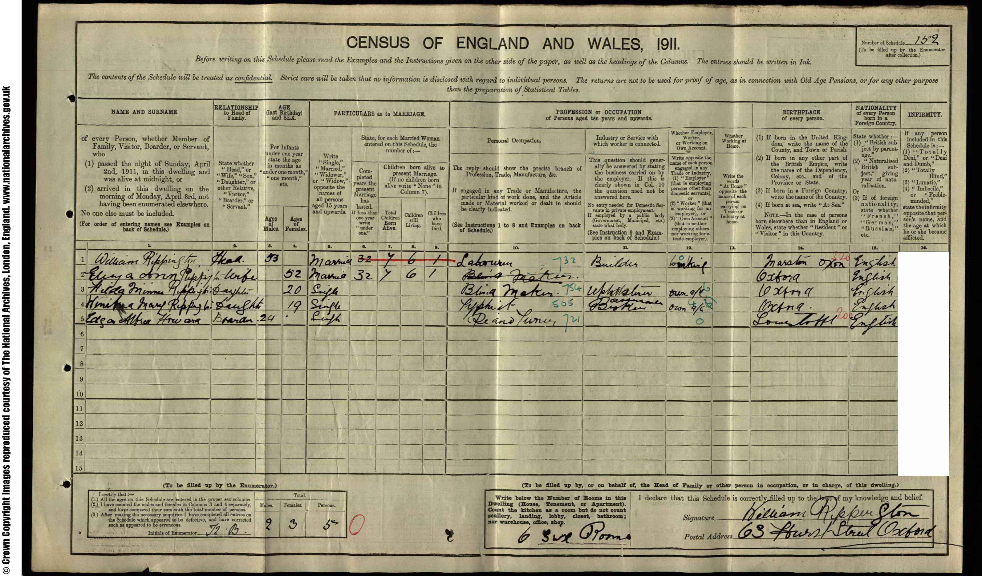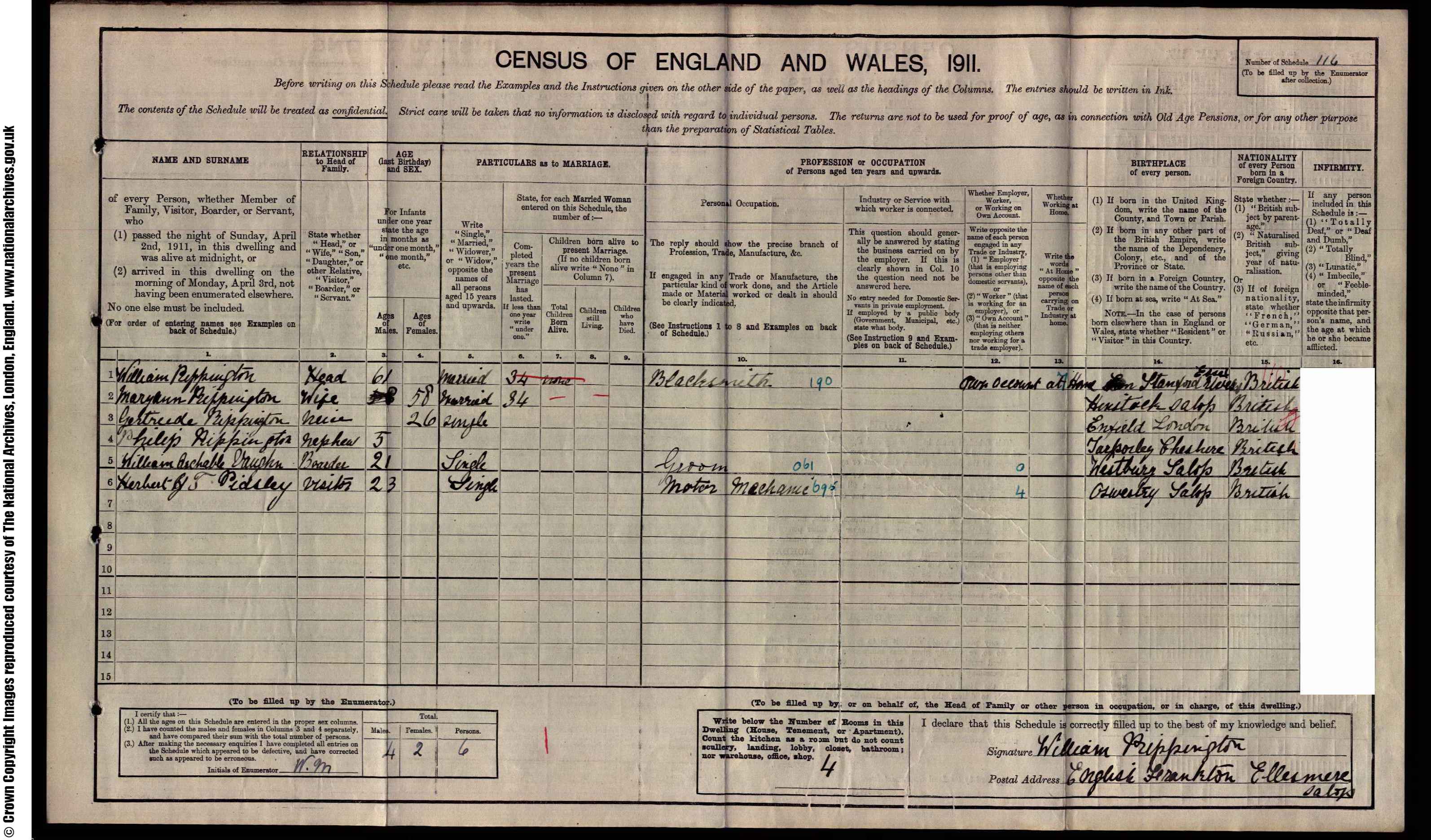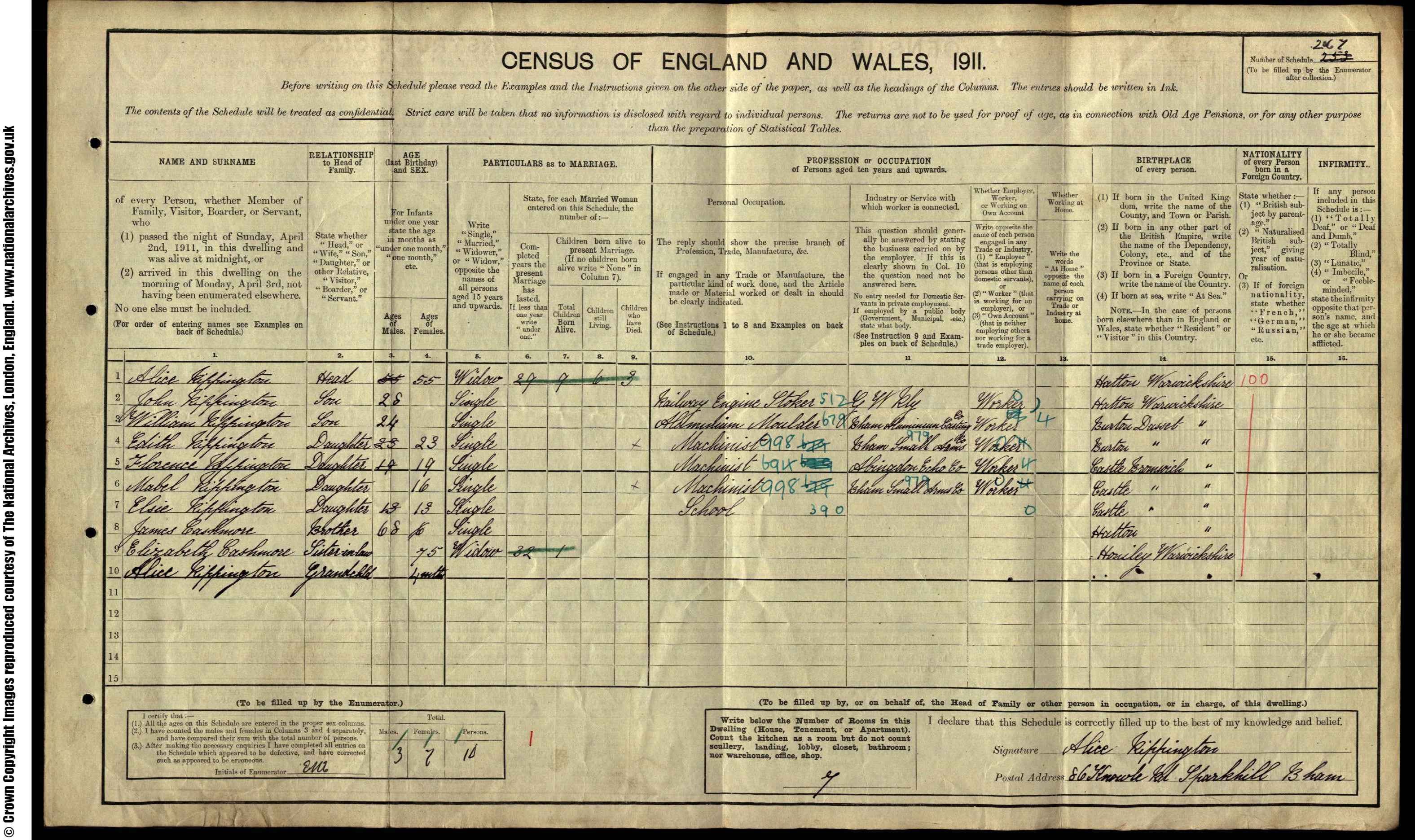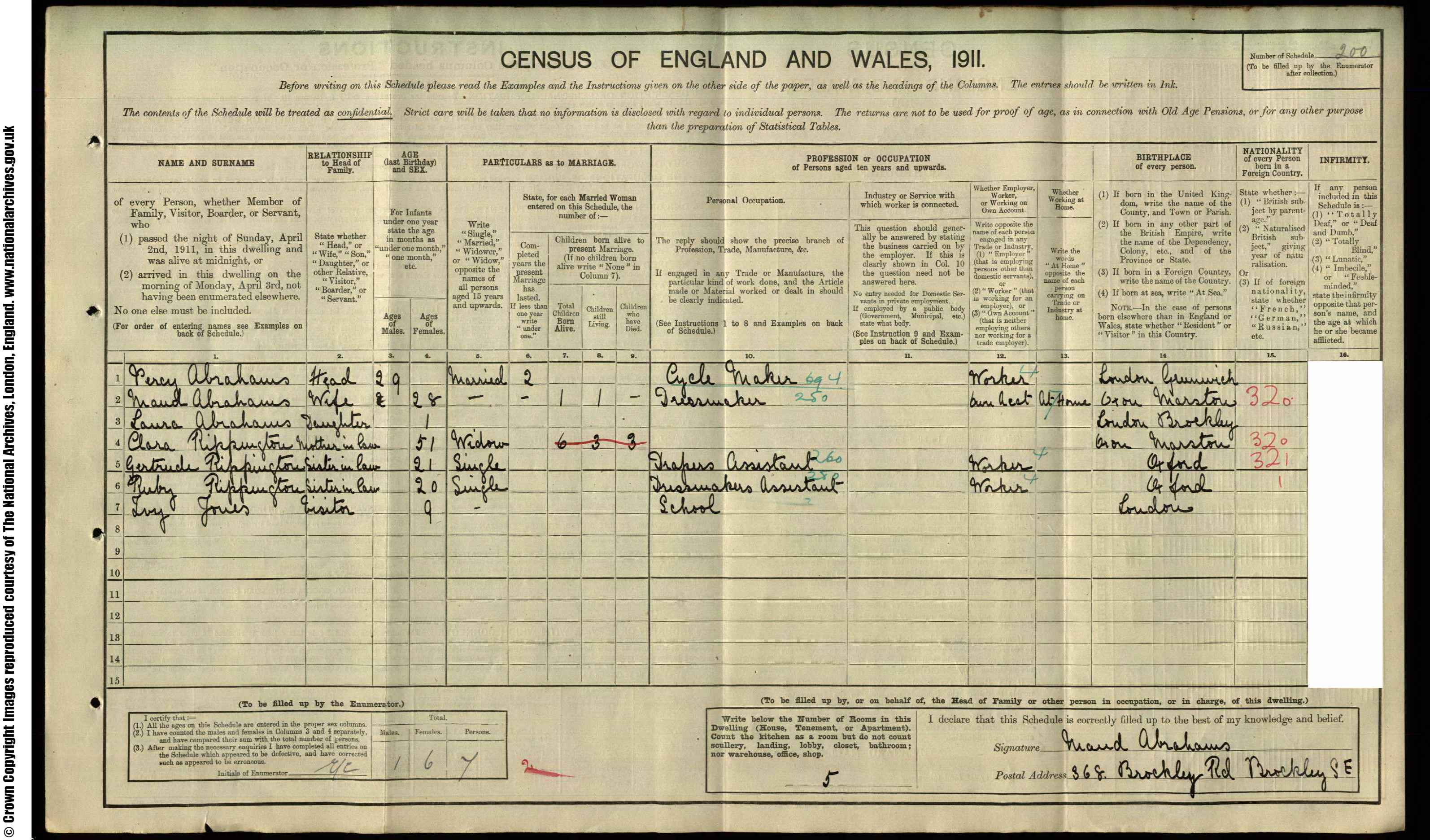 Ball (Angelina Maria nee Matthews) 1911 Census