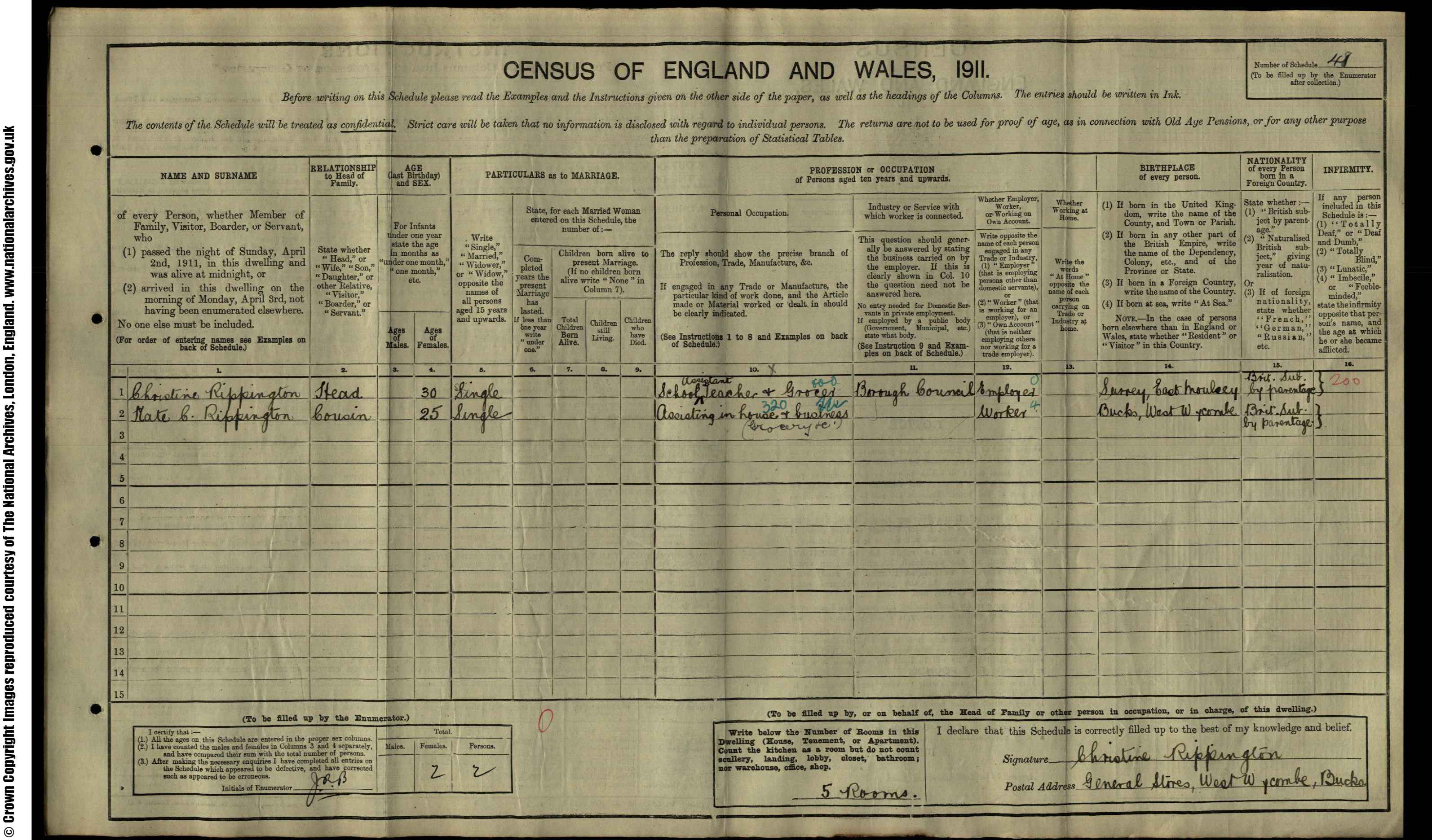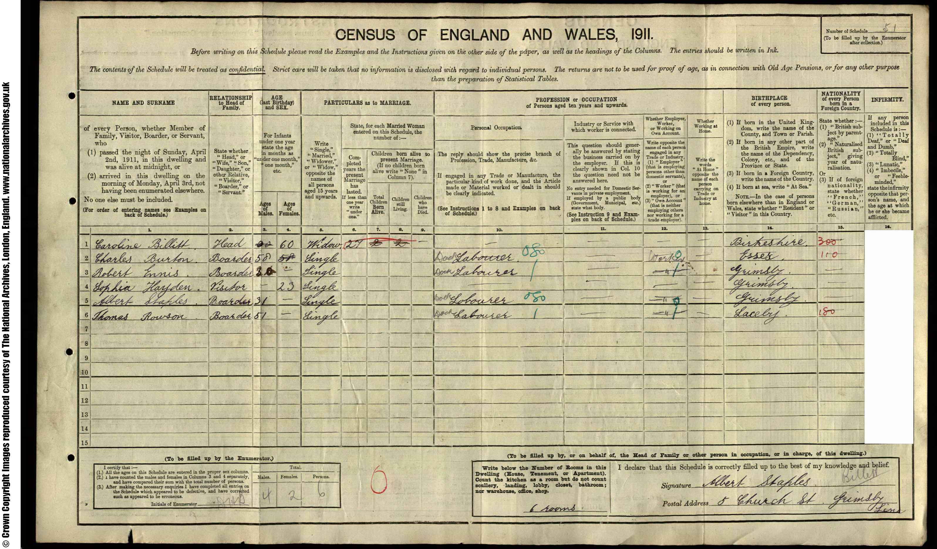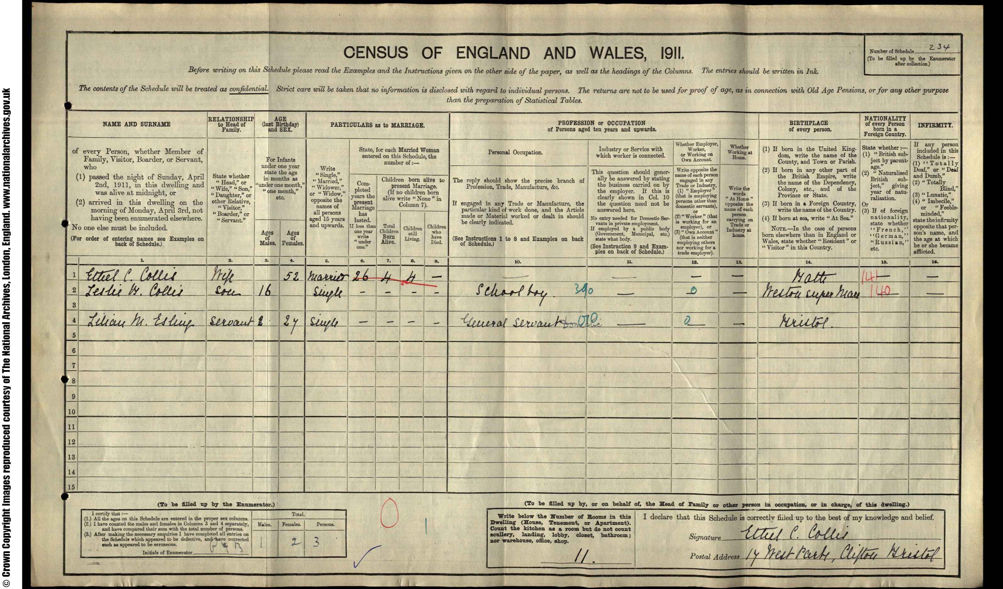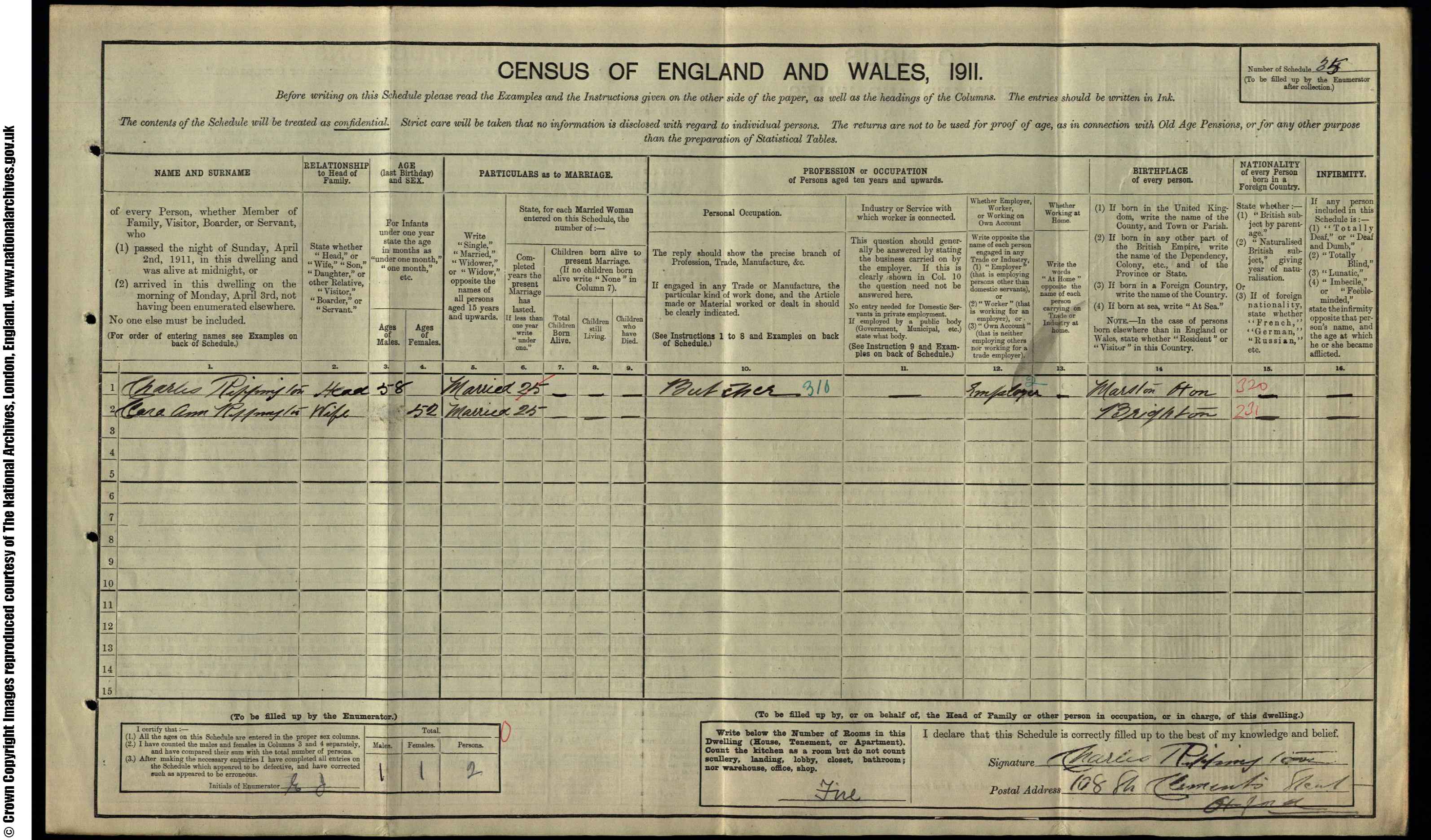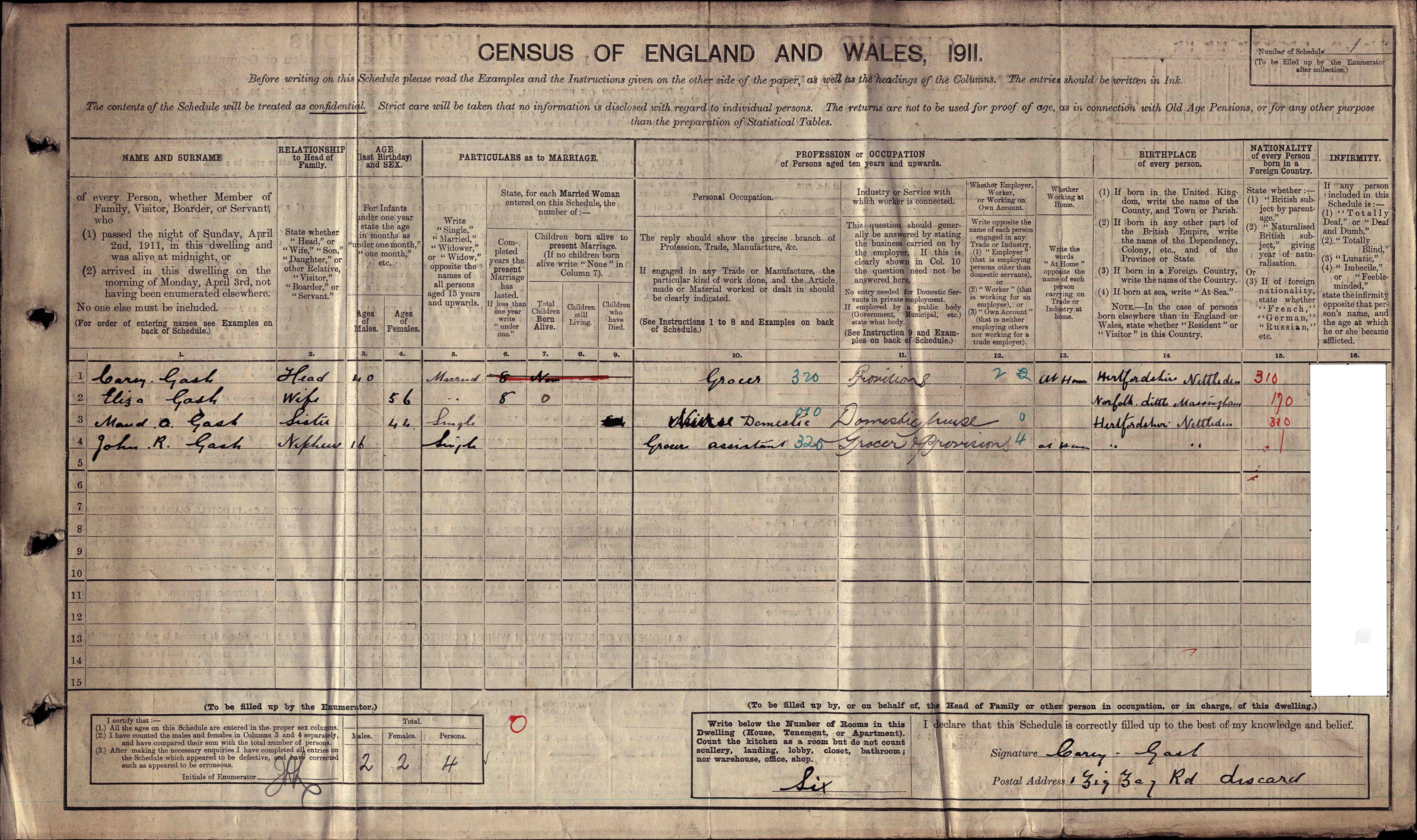 Ball (Angelina Maria nee Matthews) 1911 Census