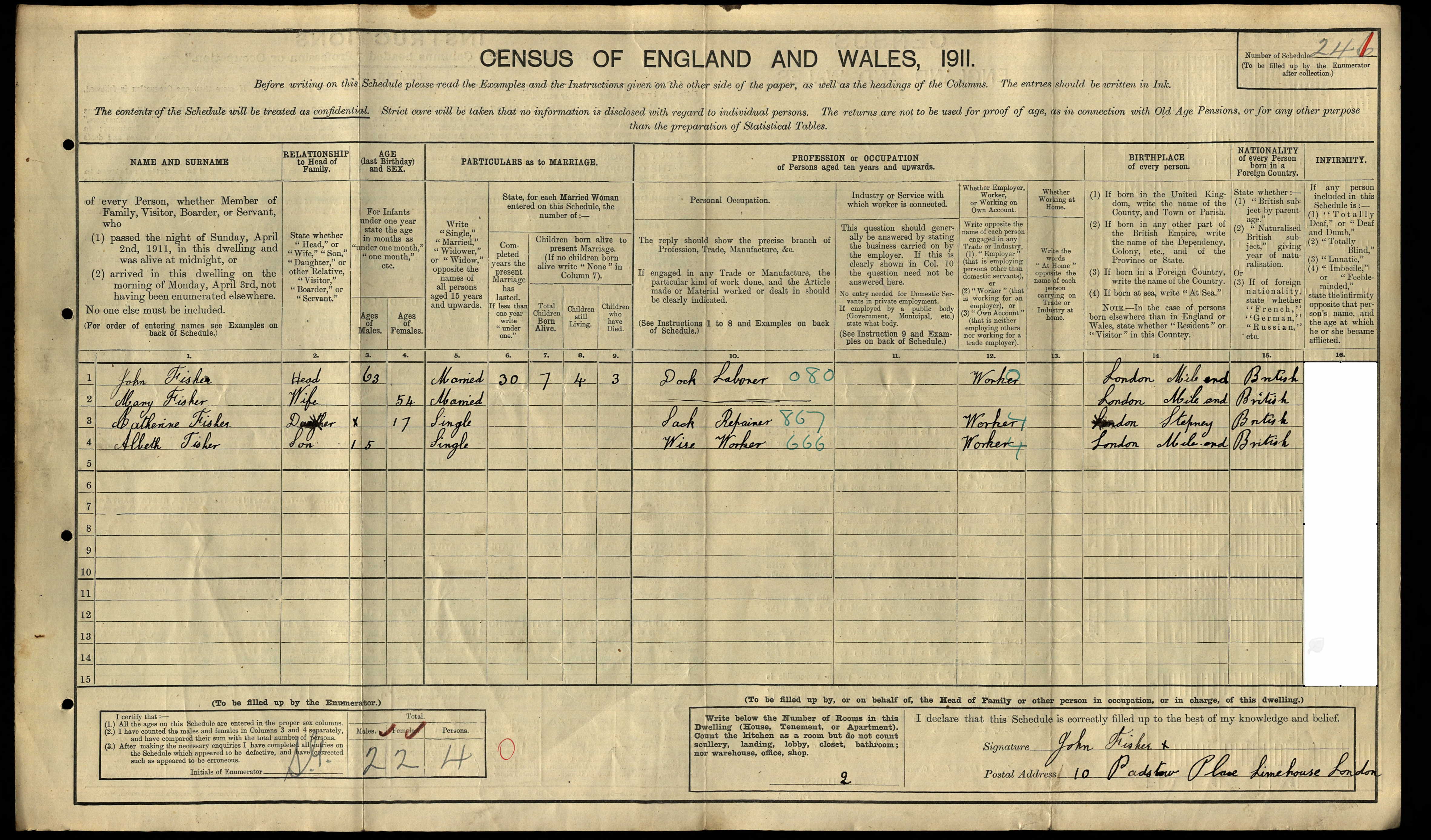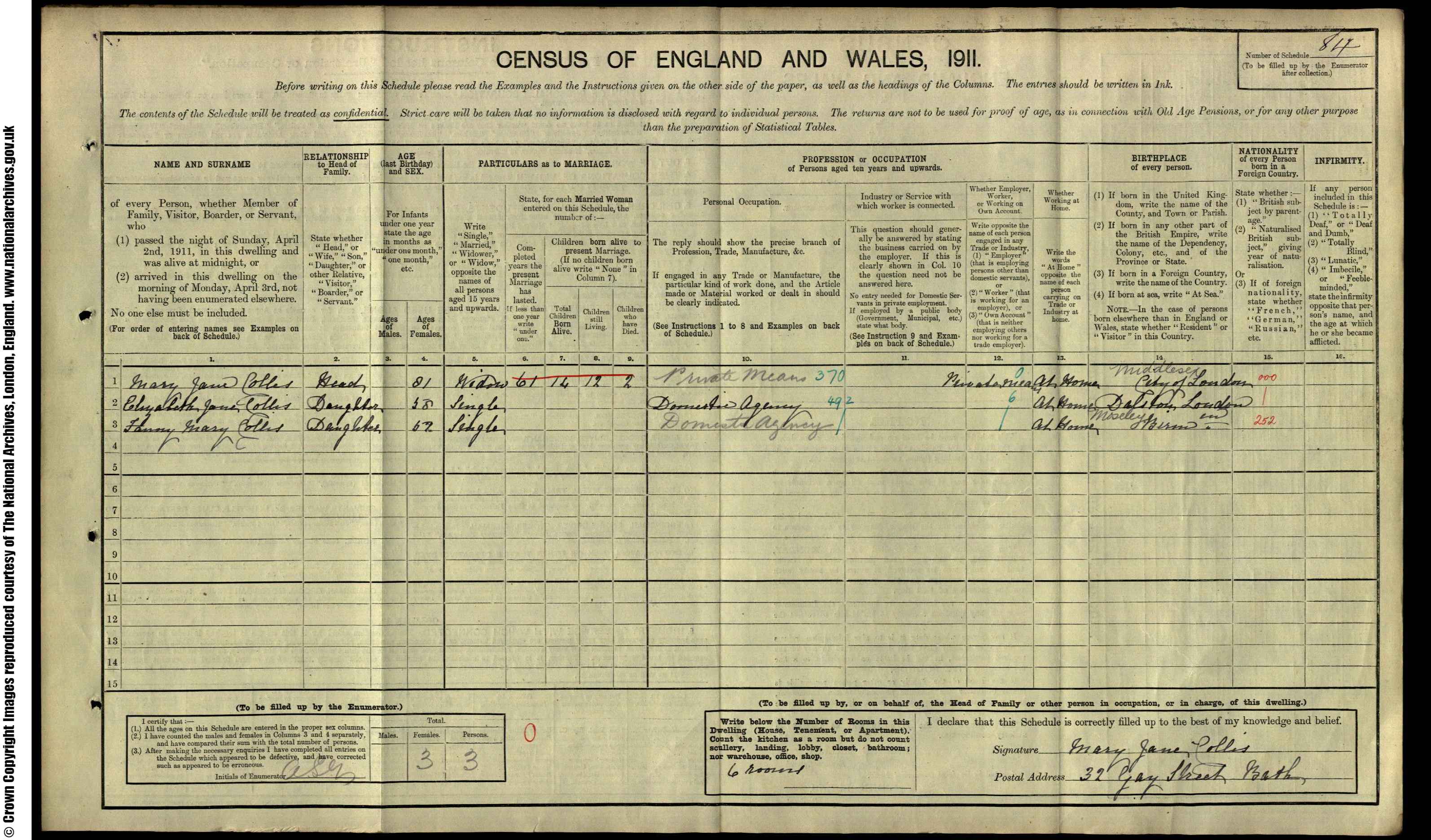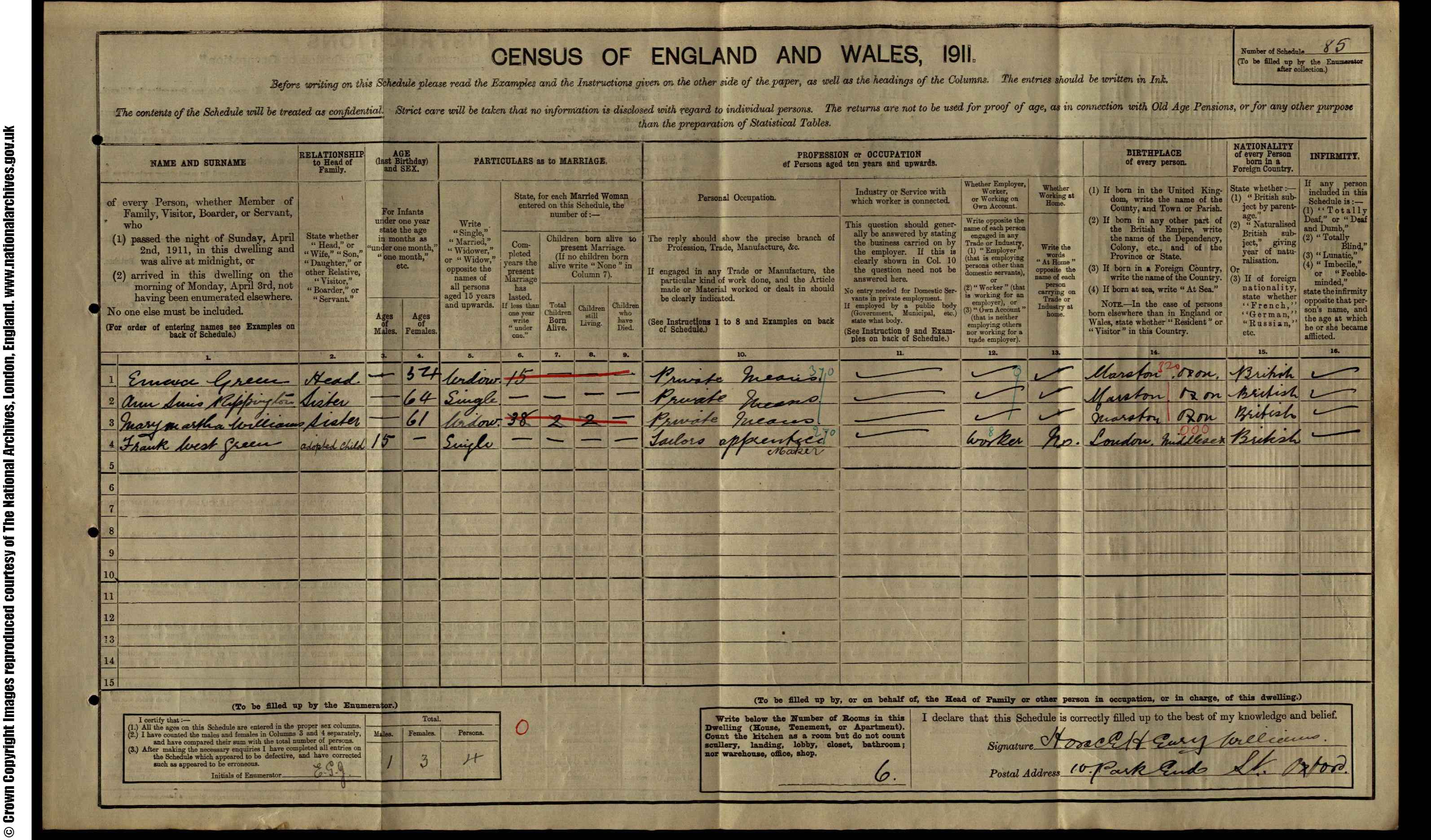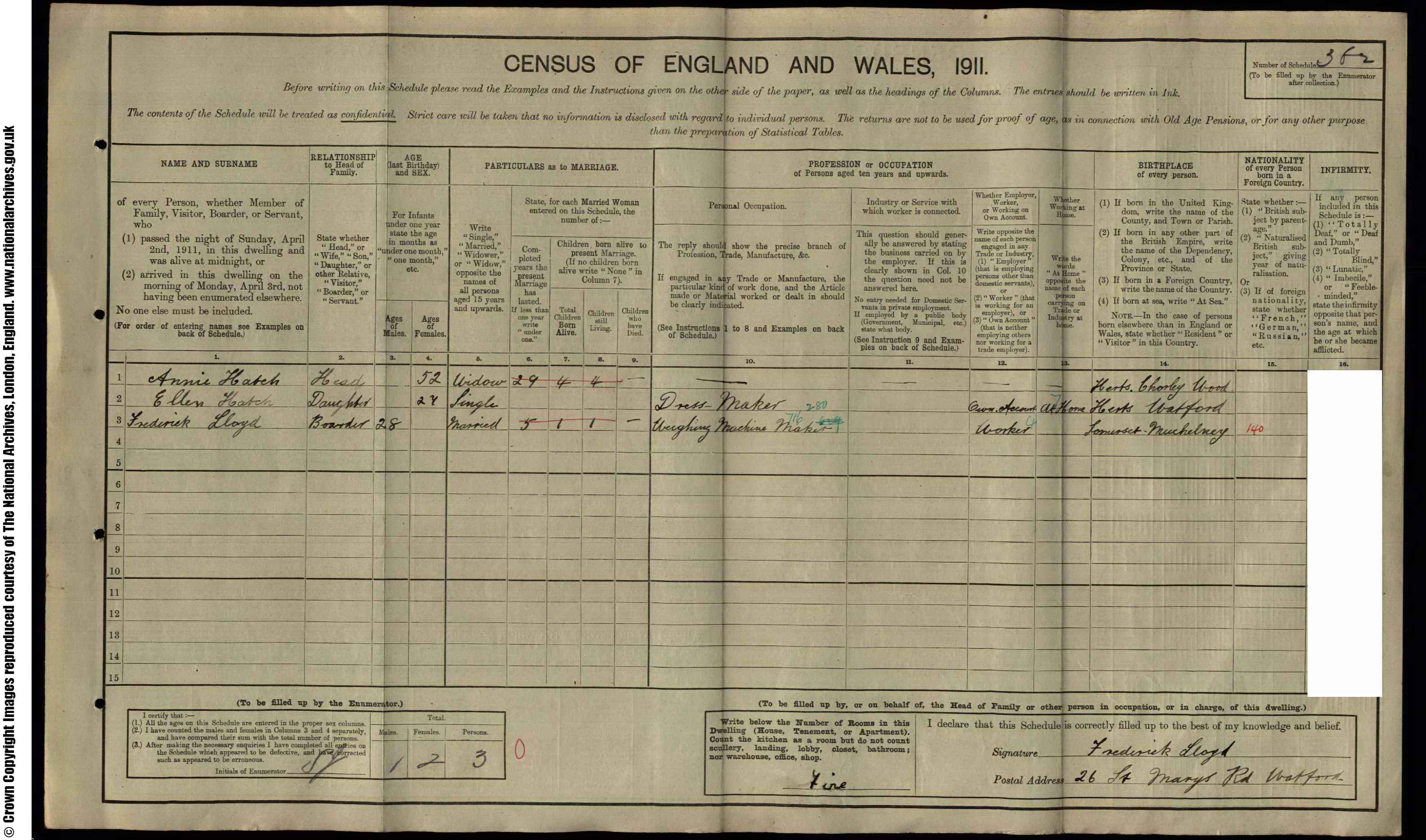 Ball (Angelina Maria nee Matthews) 1911 Census