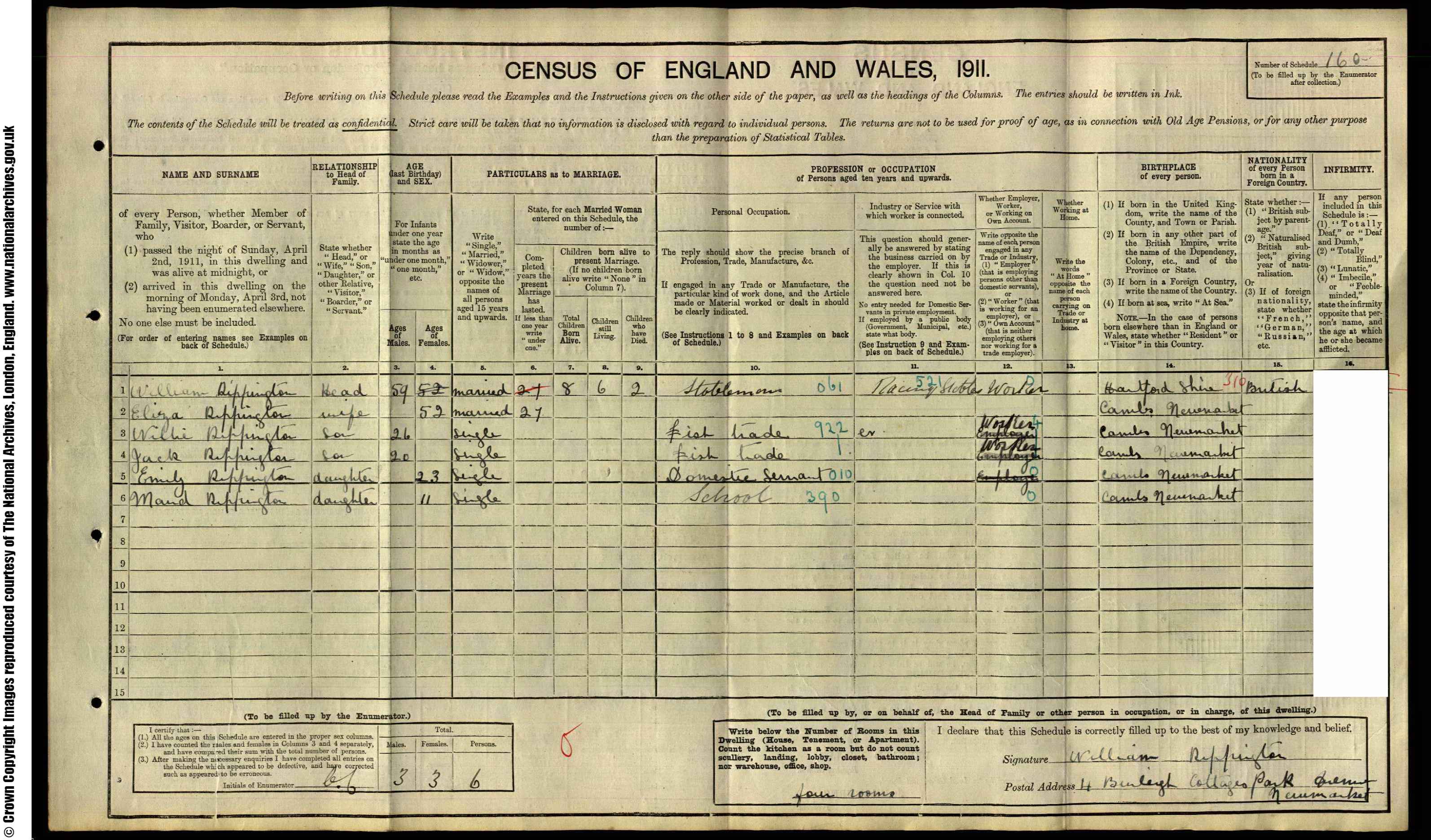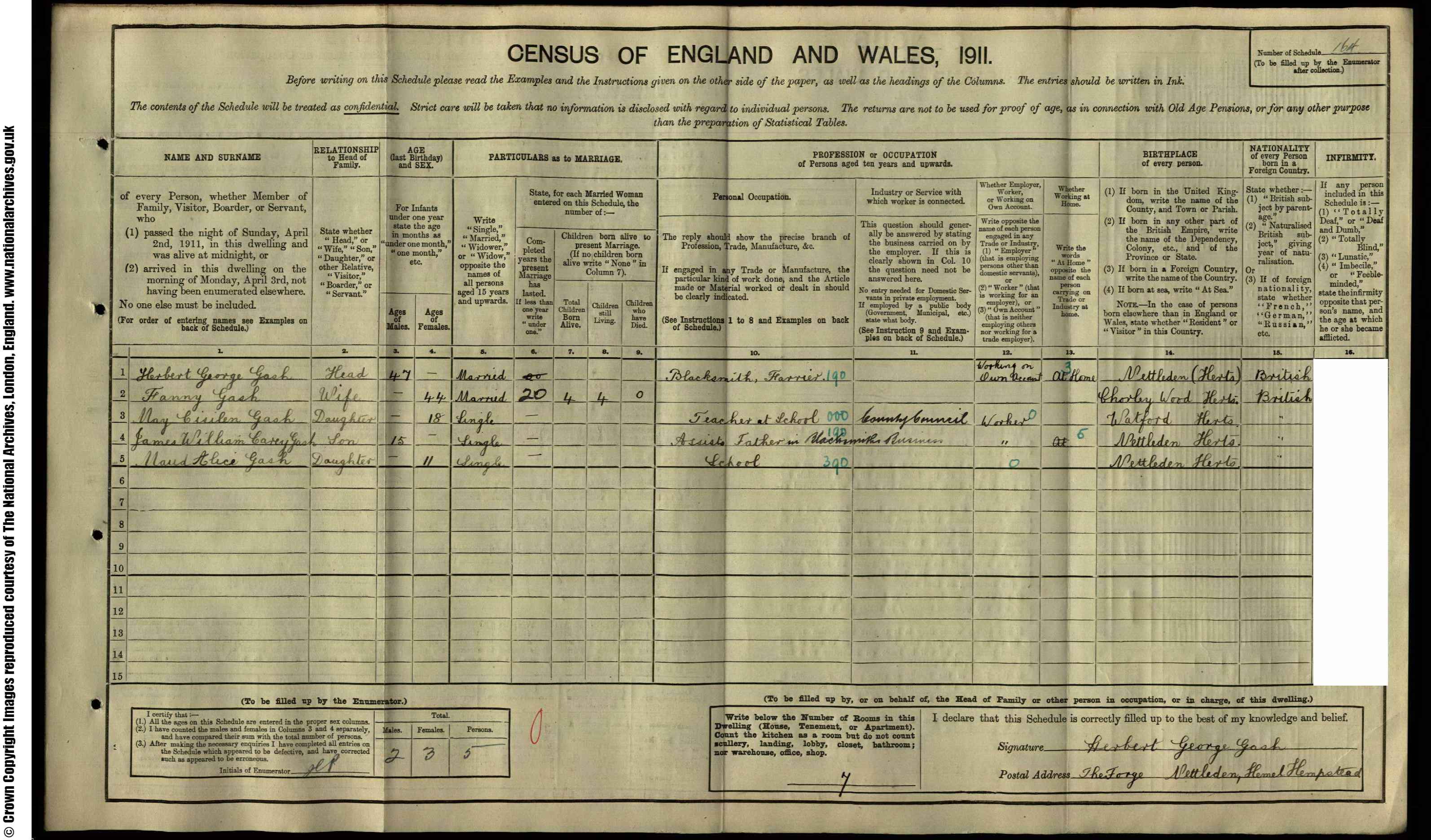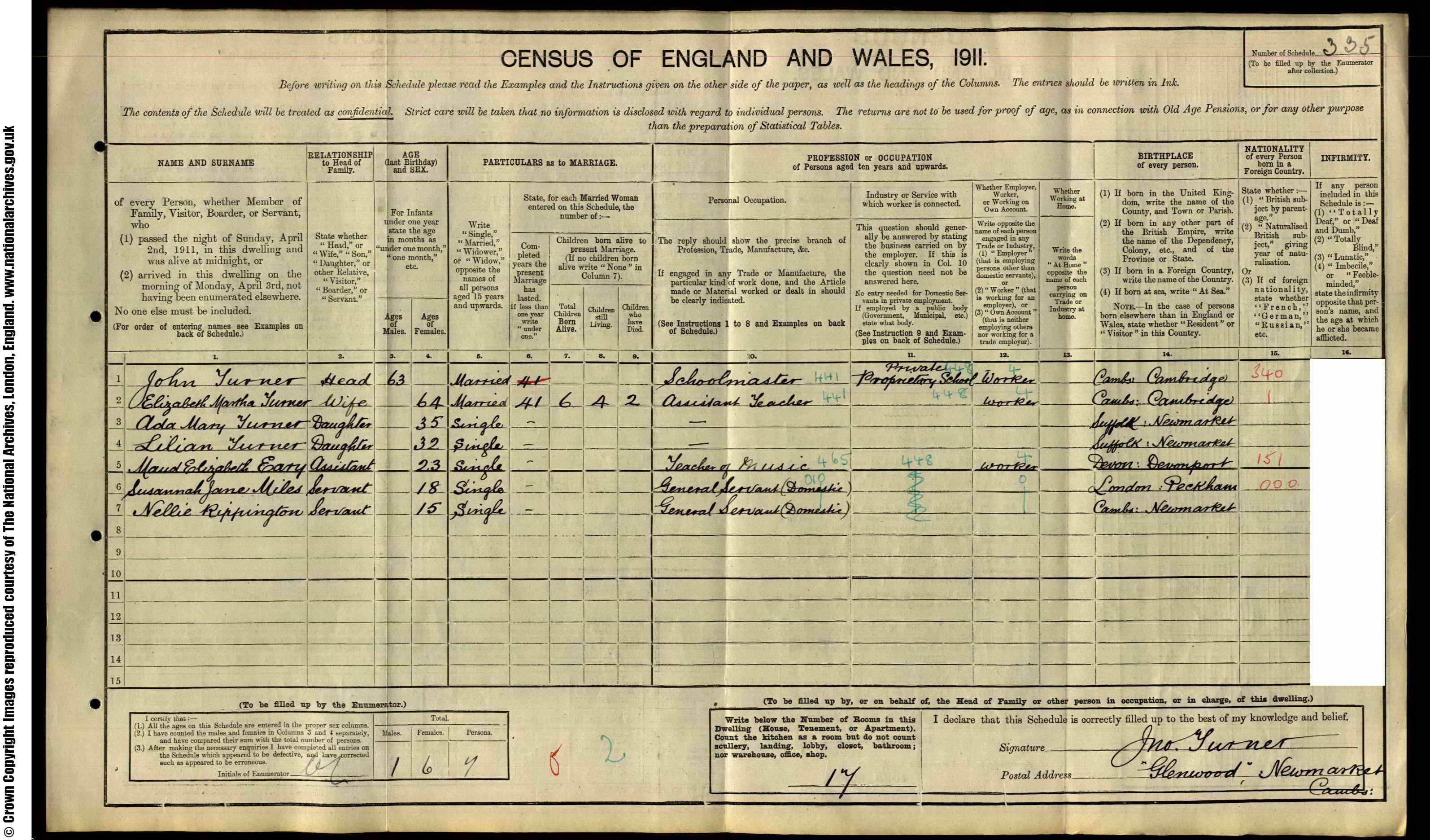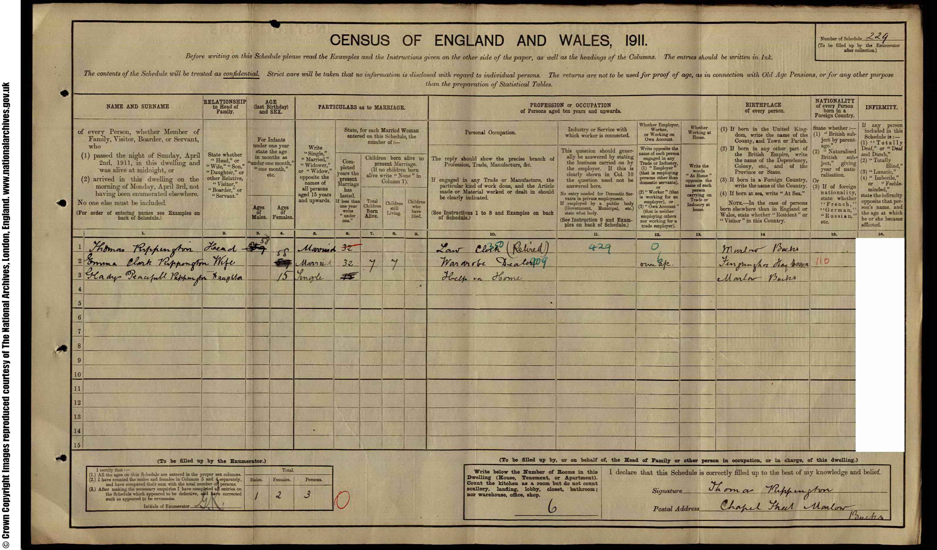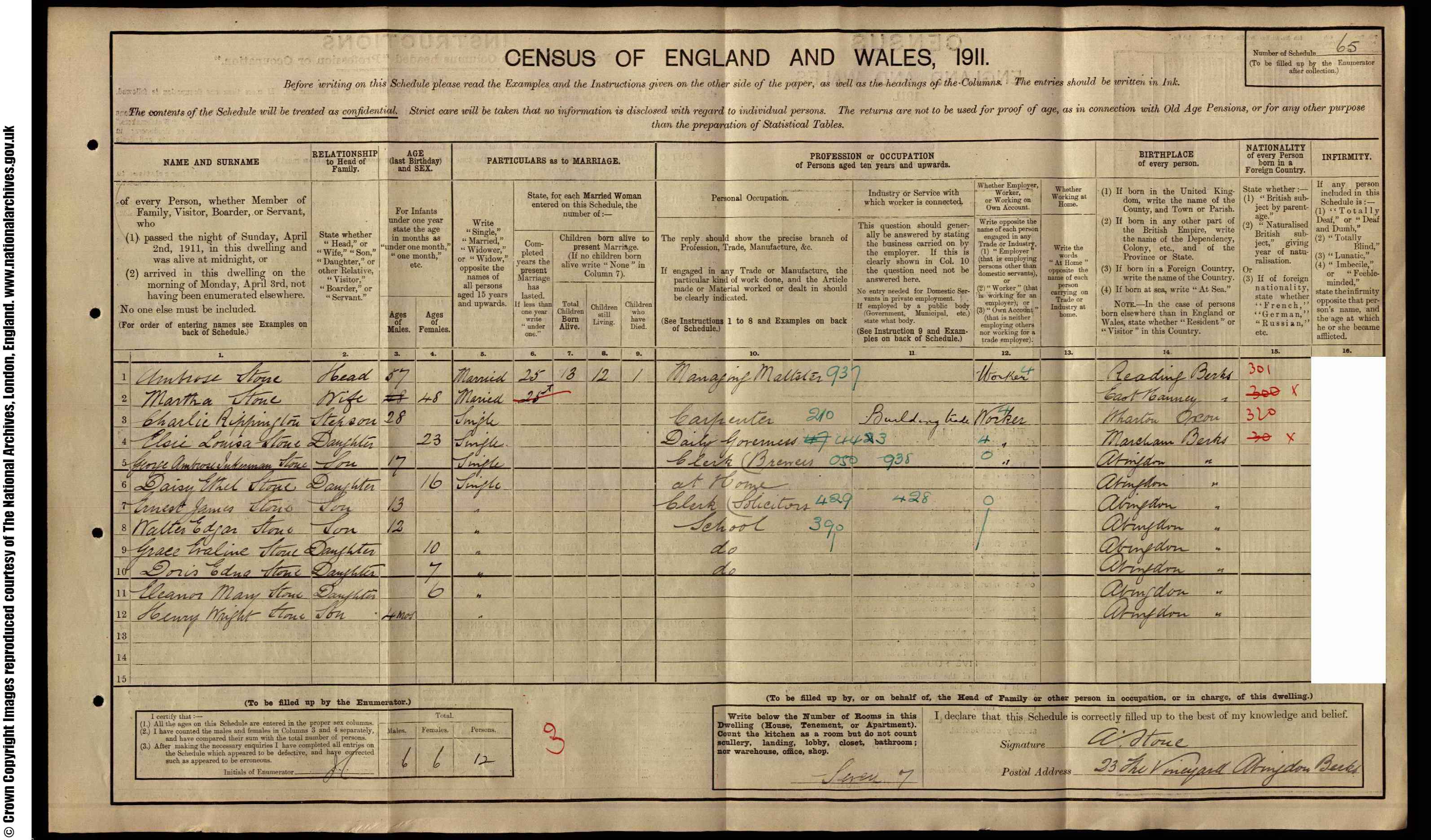 Ball (Angelina Maria nee Matthews) 1911 Census