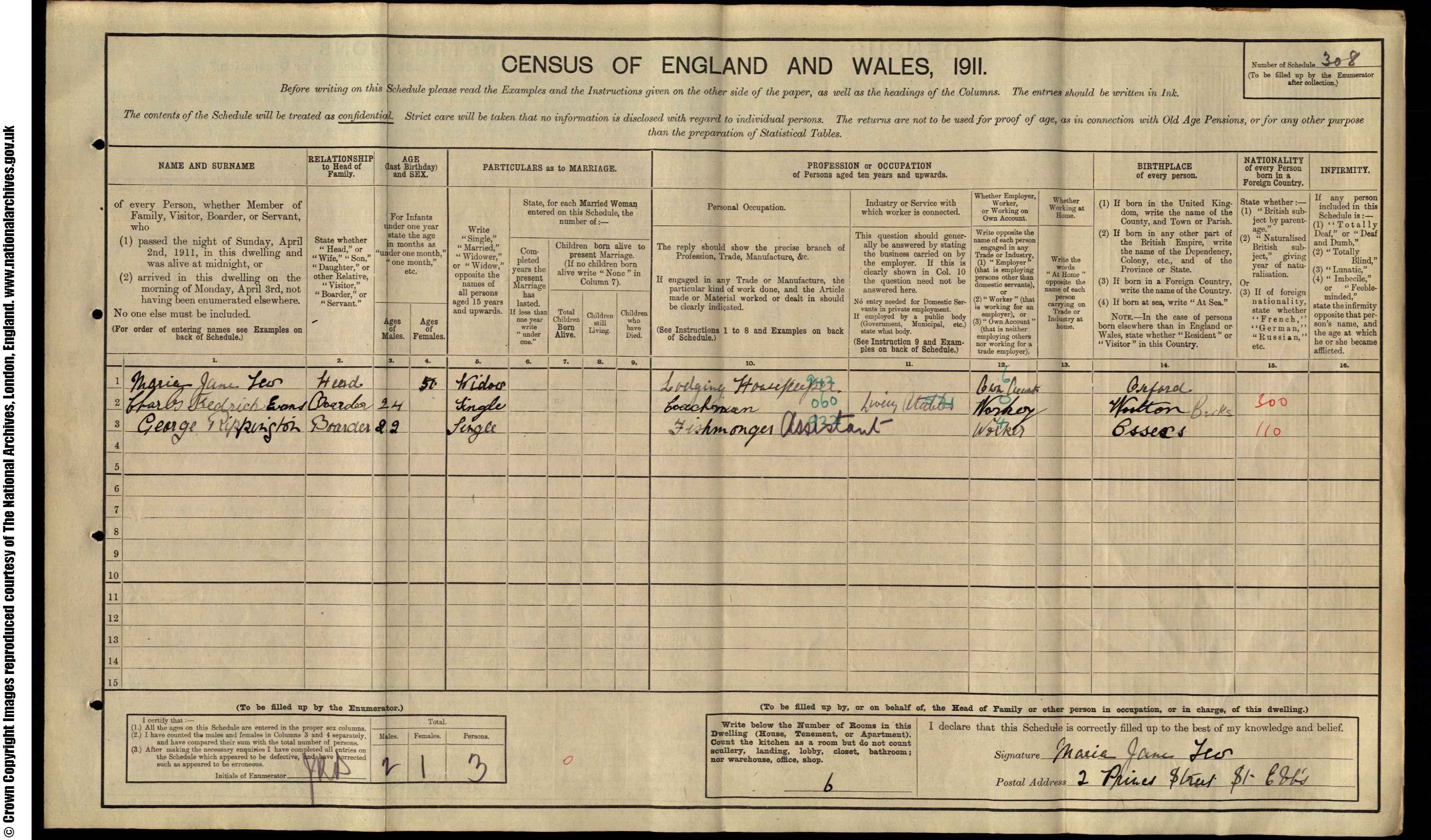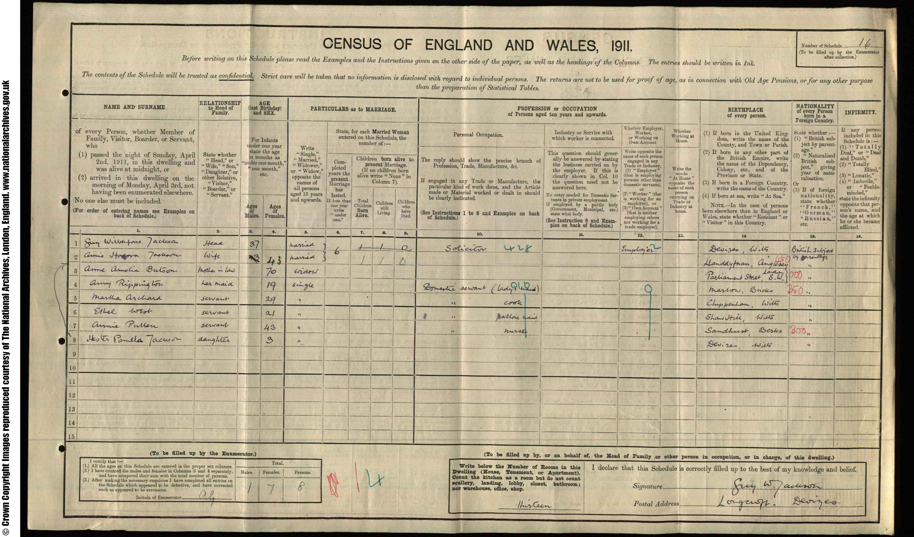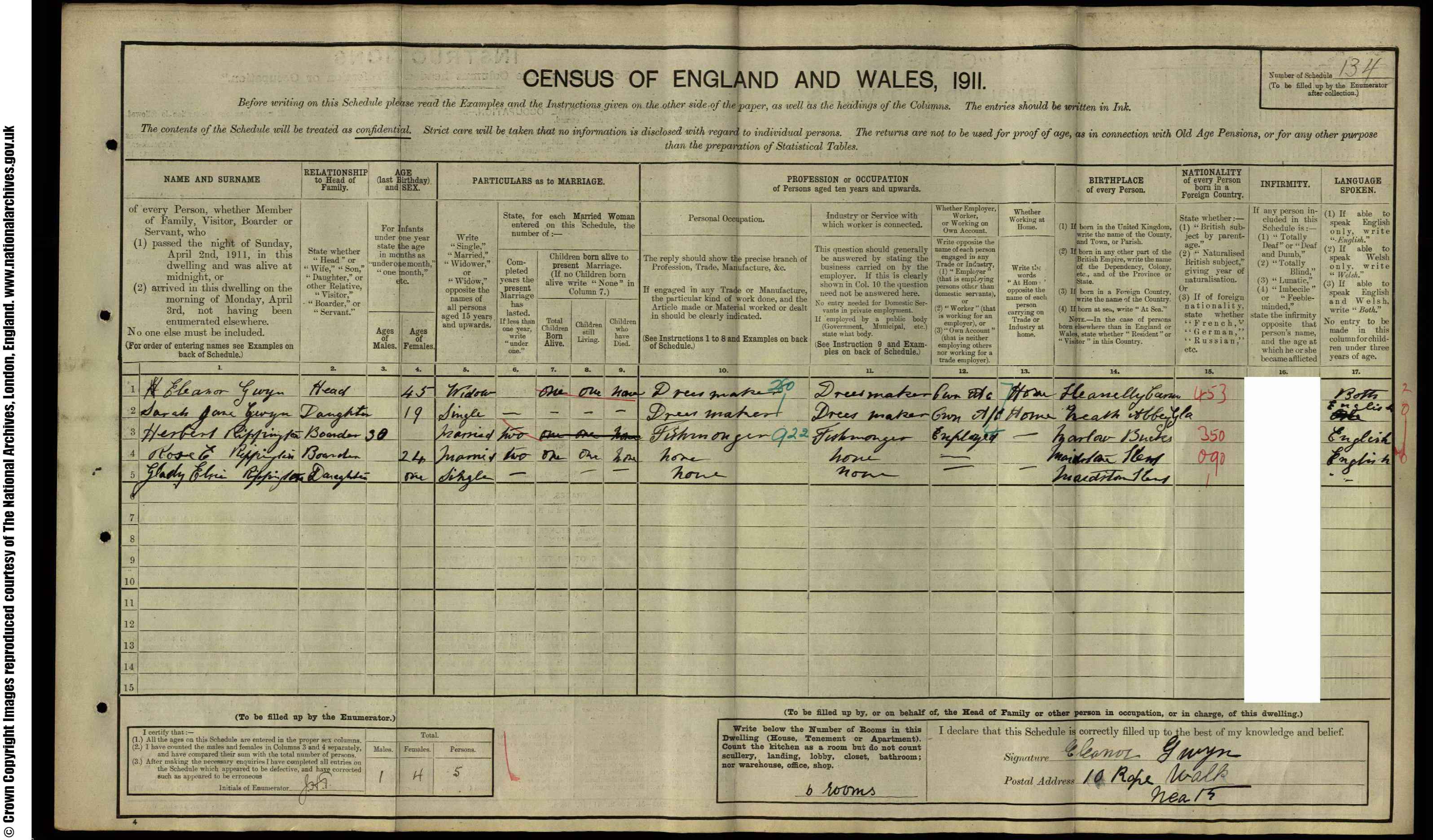 Evans (Herbert Gwynfryn) 1911 Census Address