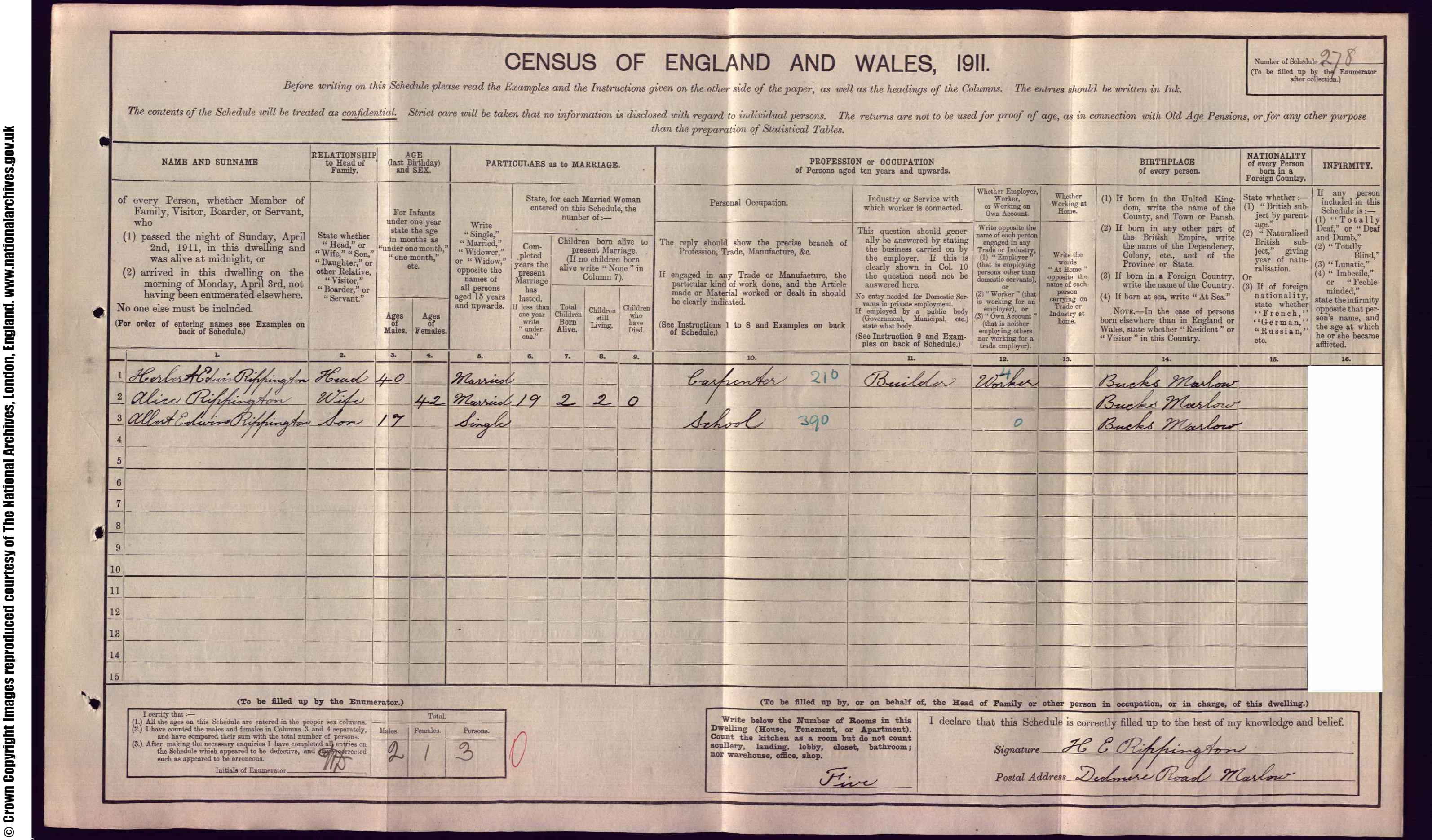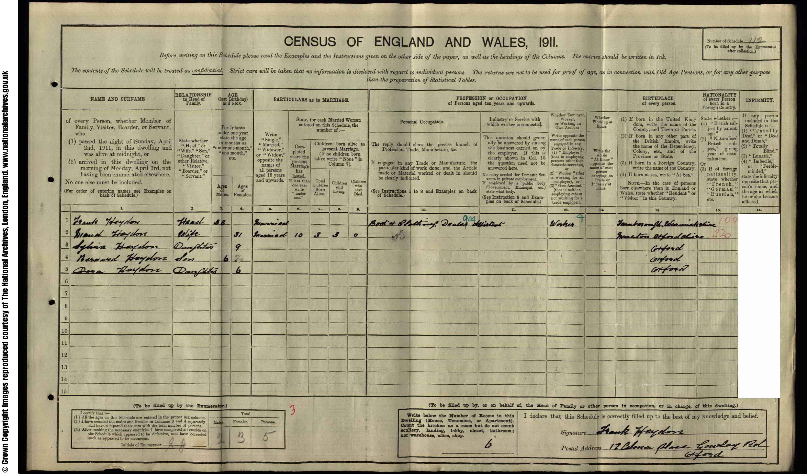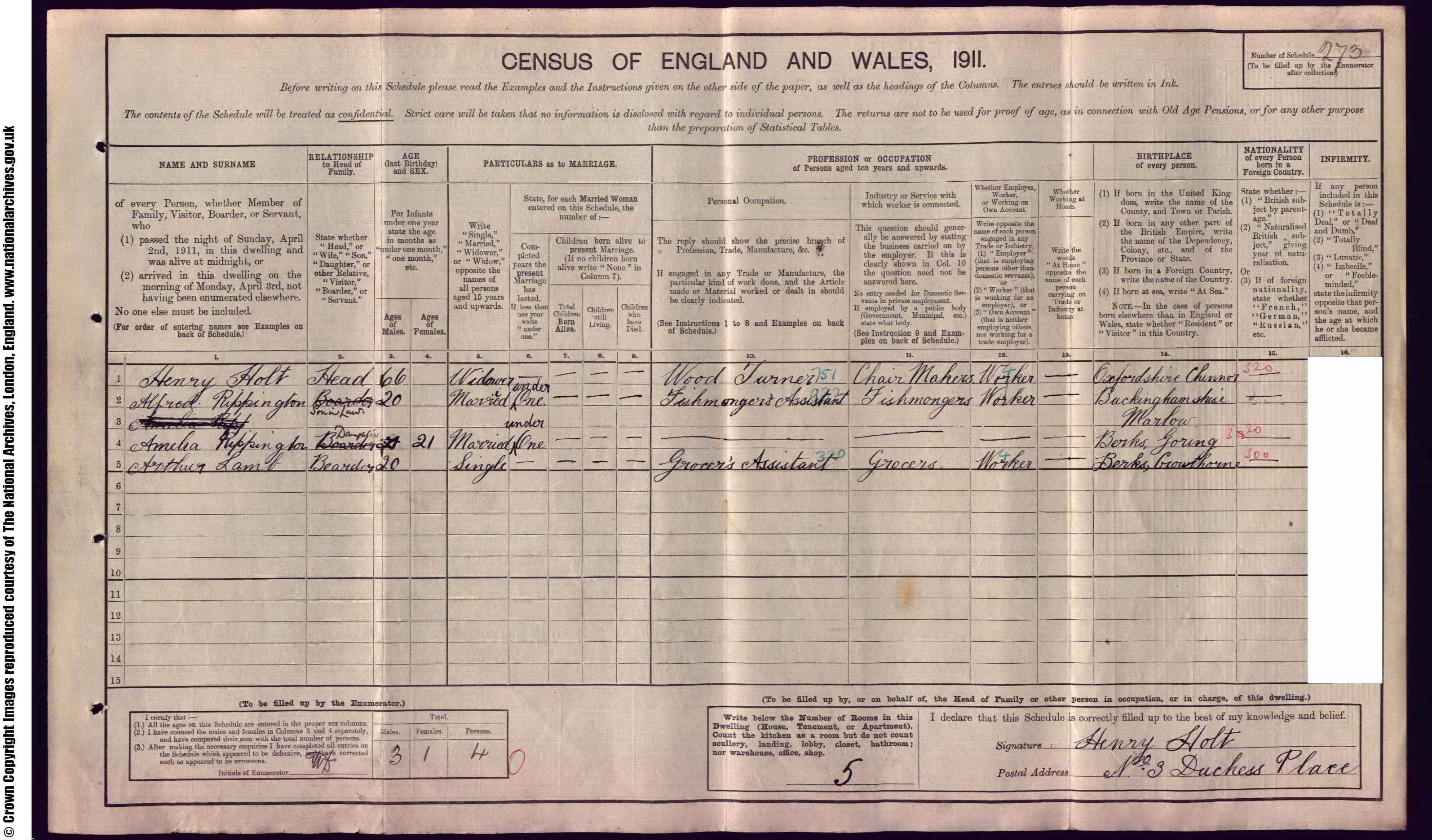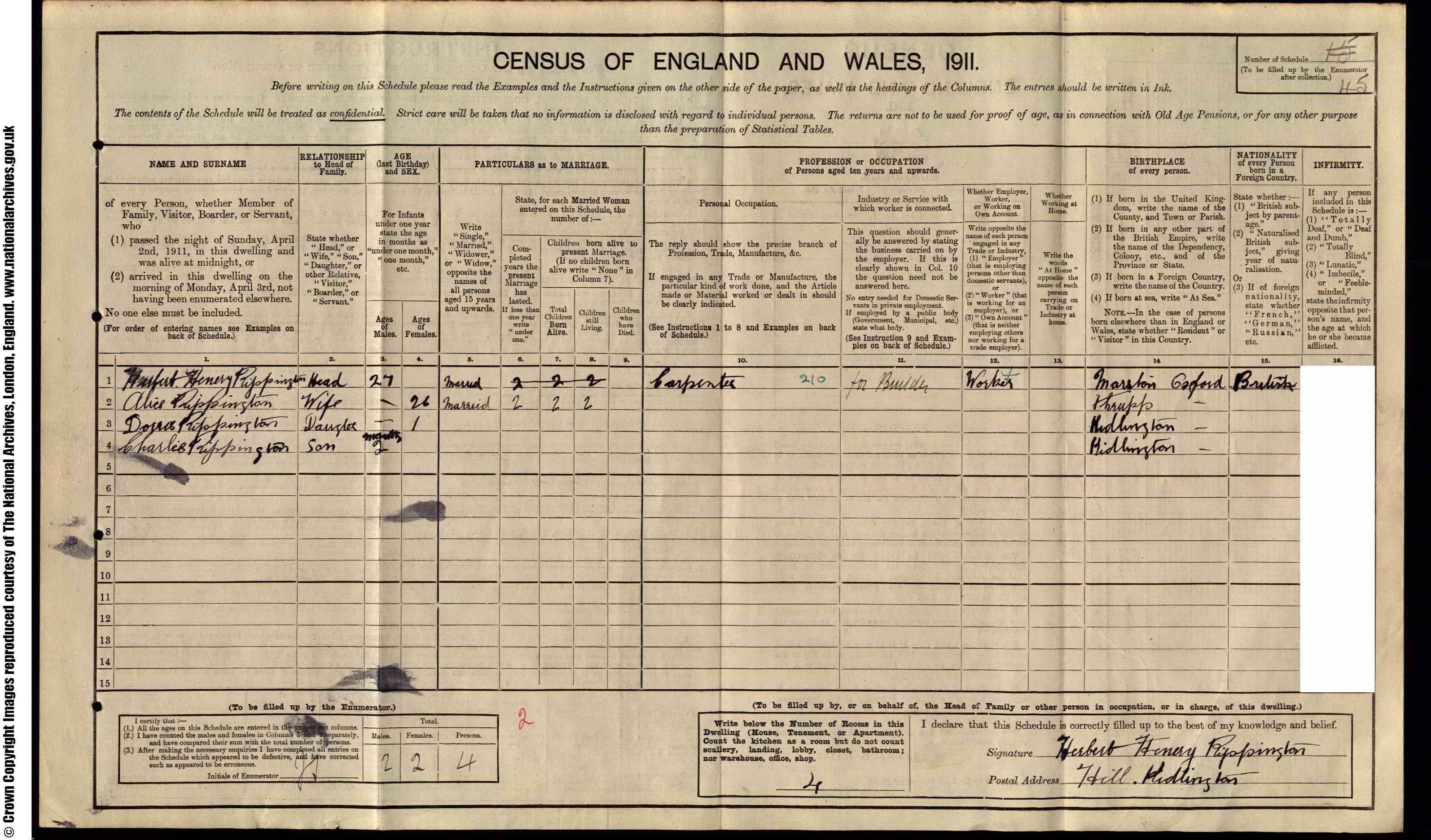 Evans (Herbert Gwynfryn) 1911 Census Address